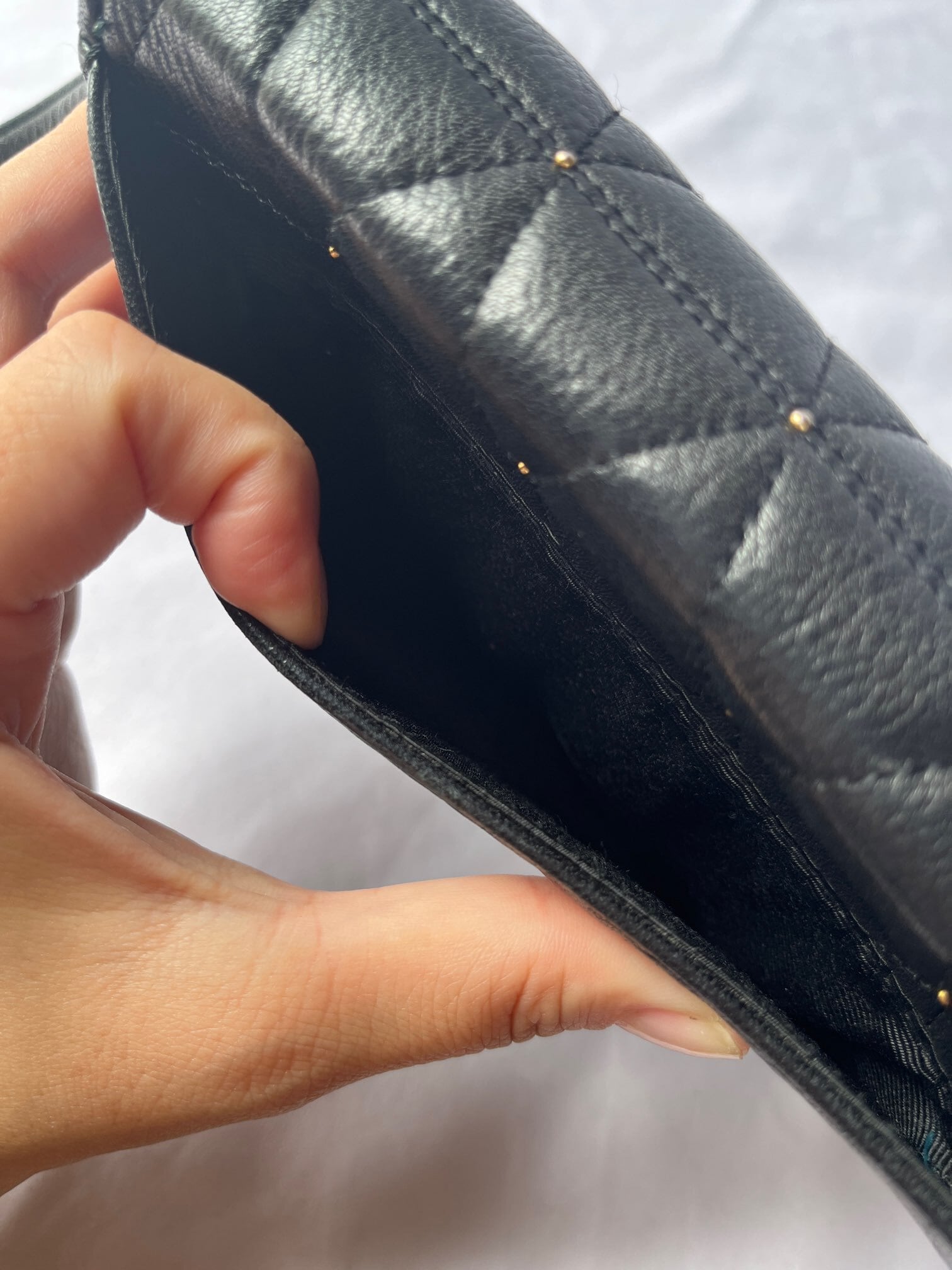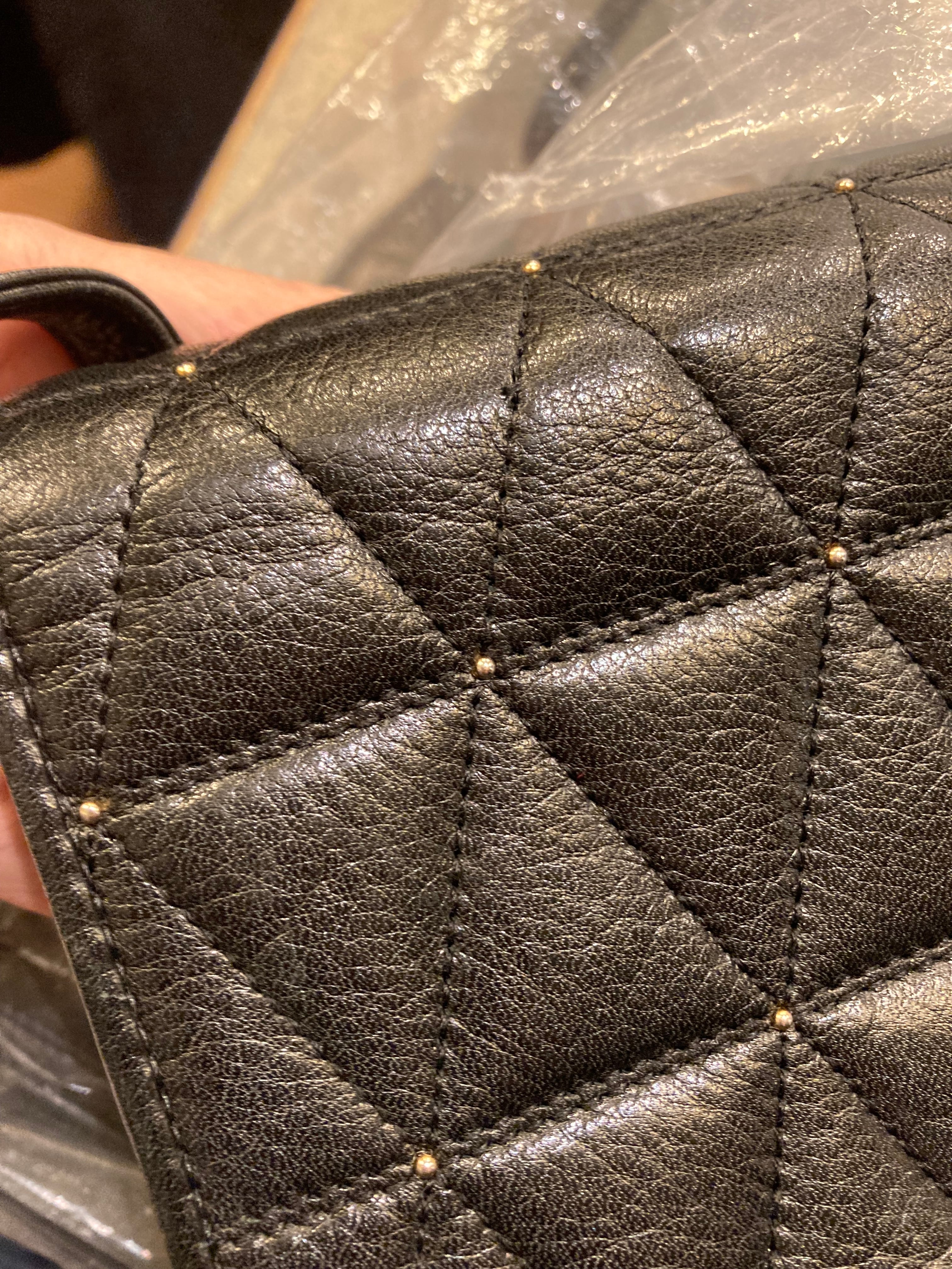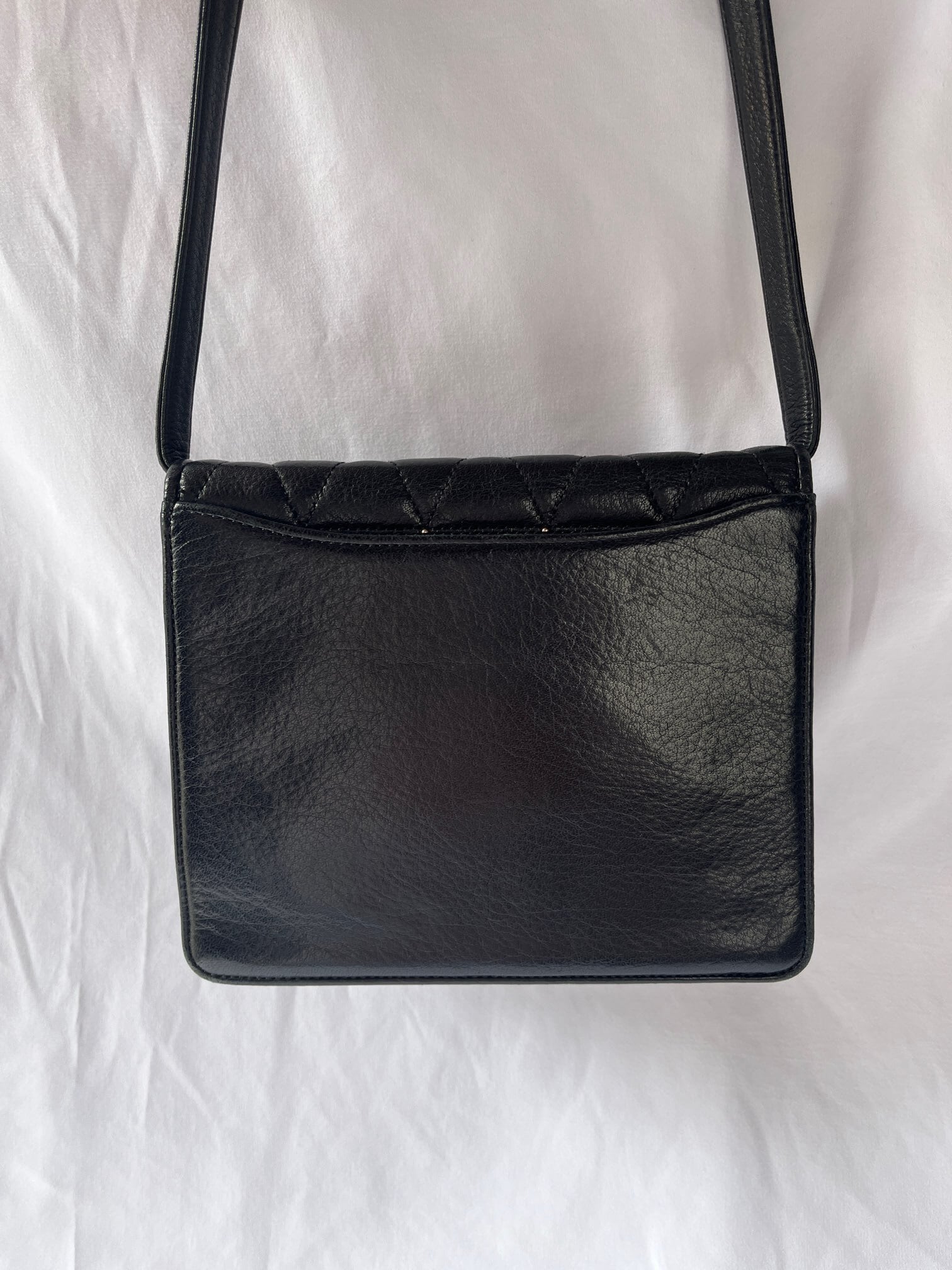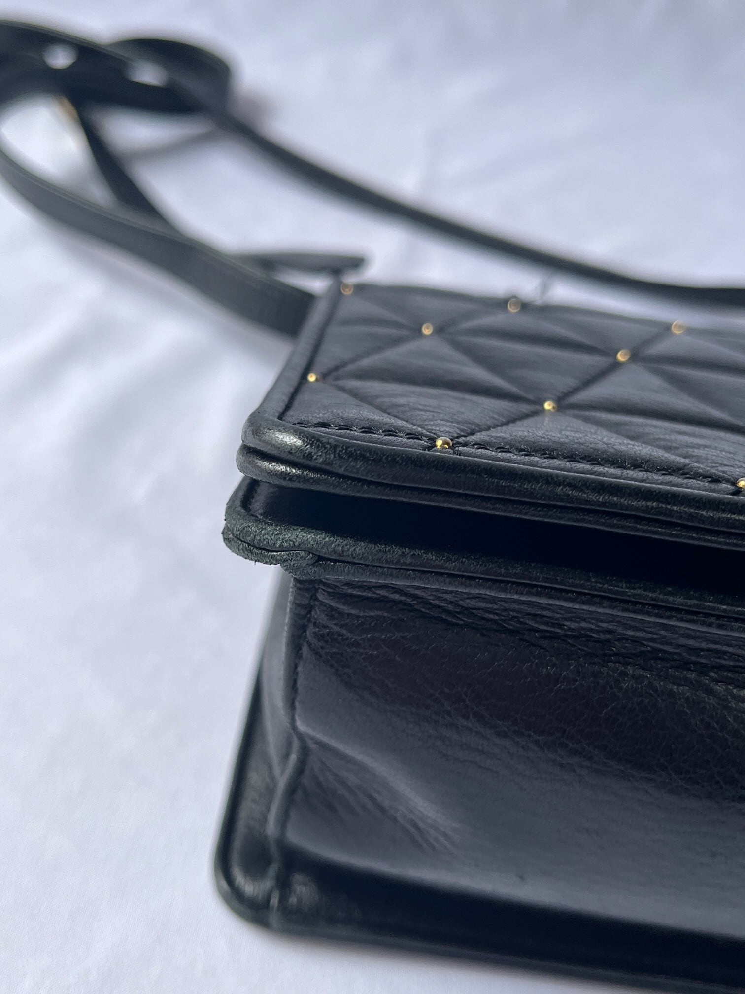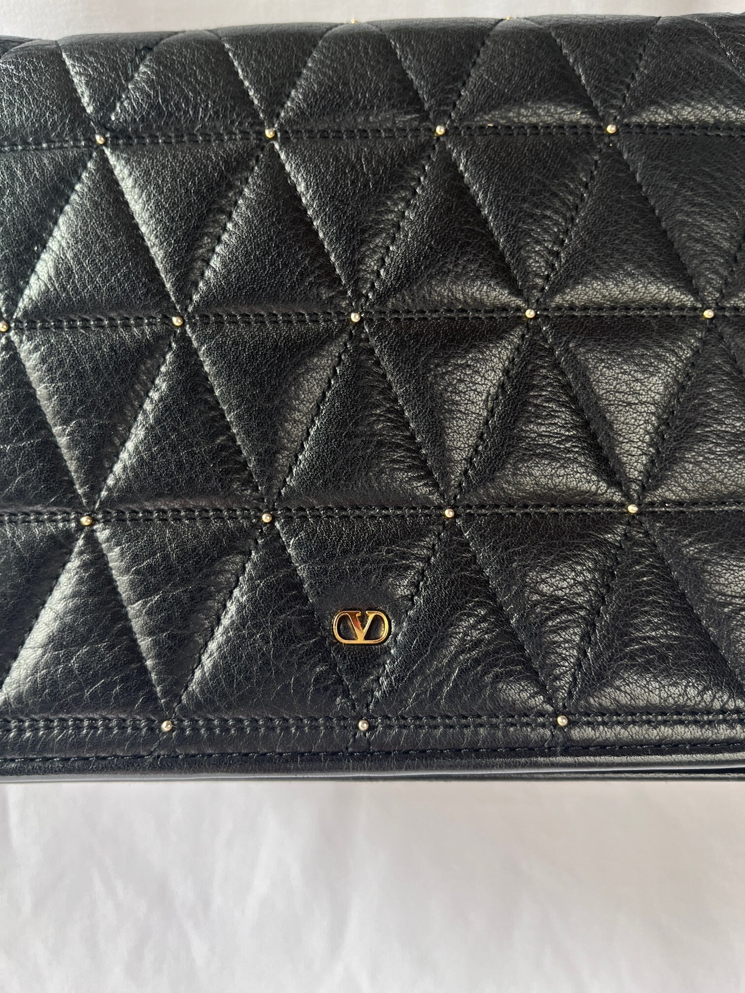 ブラックレザーの三角キルトに小さなスタッズデザインがアクセントに効いたvalentinoの vintageショルダーバッグ。