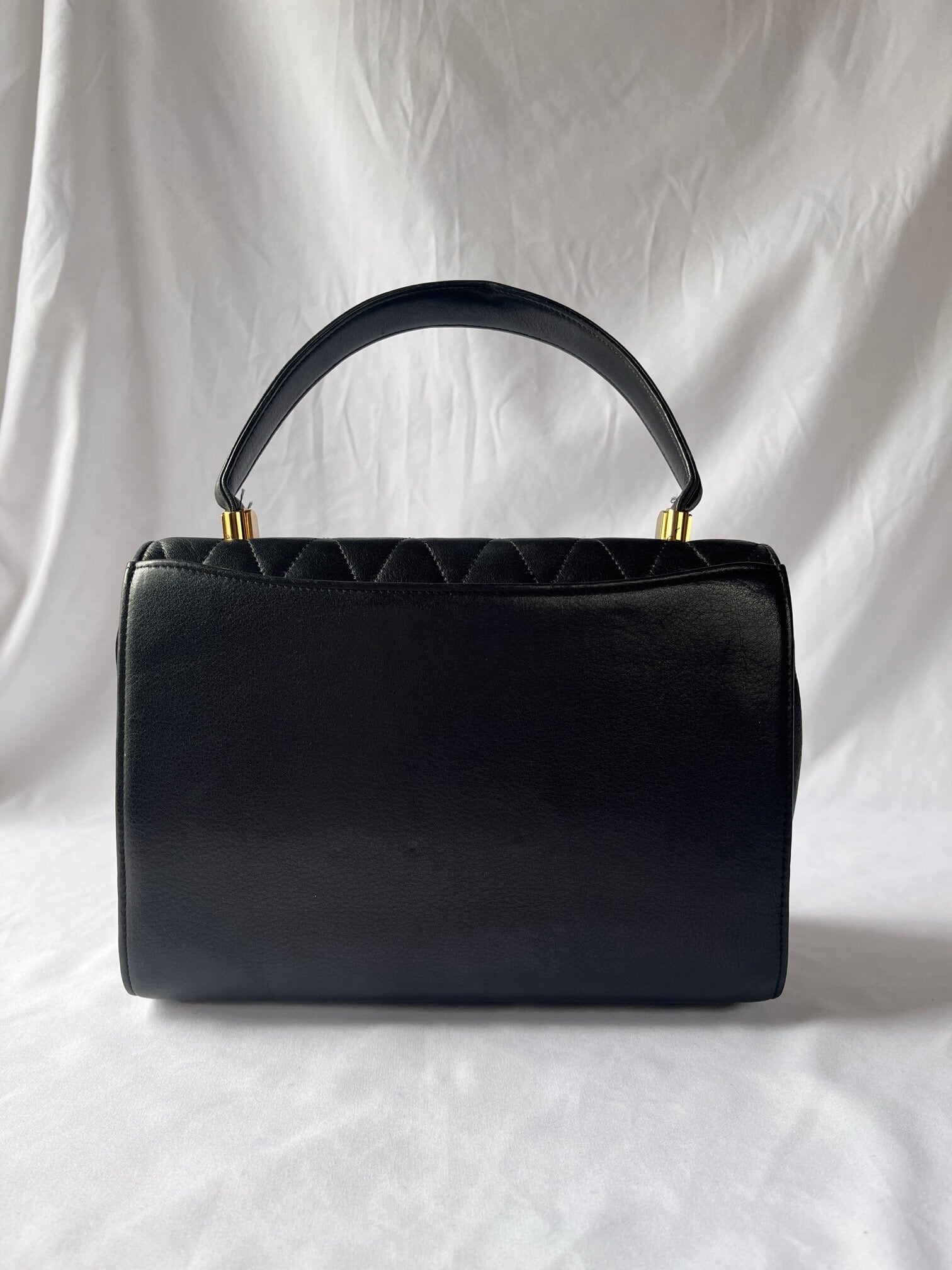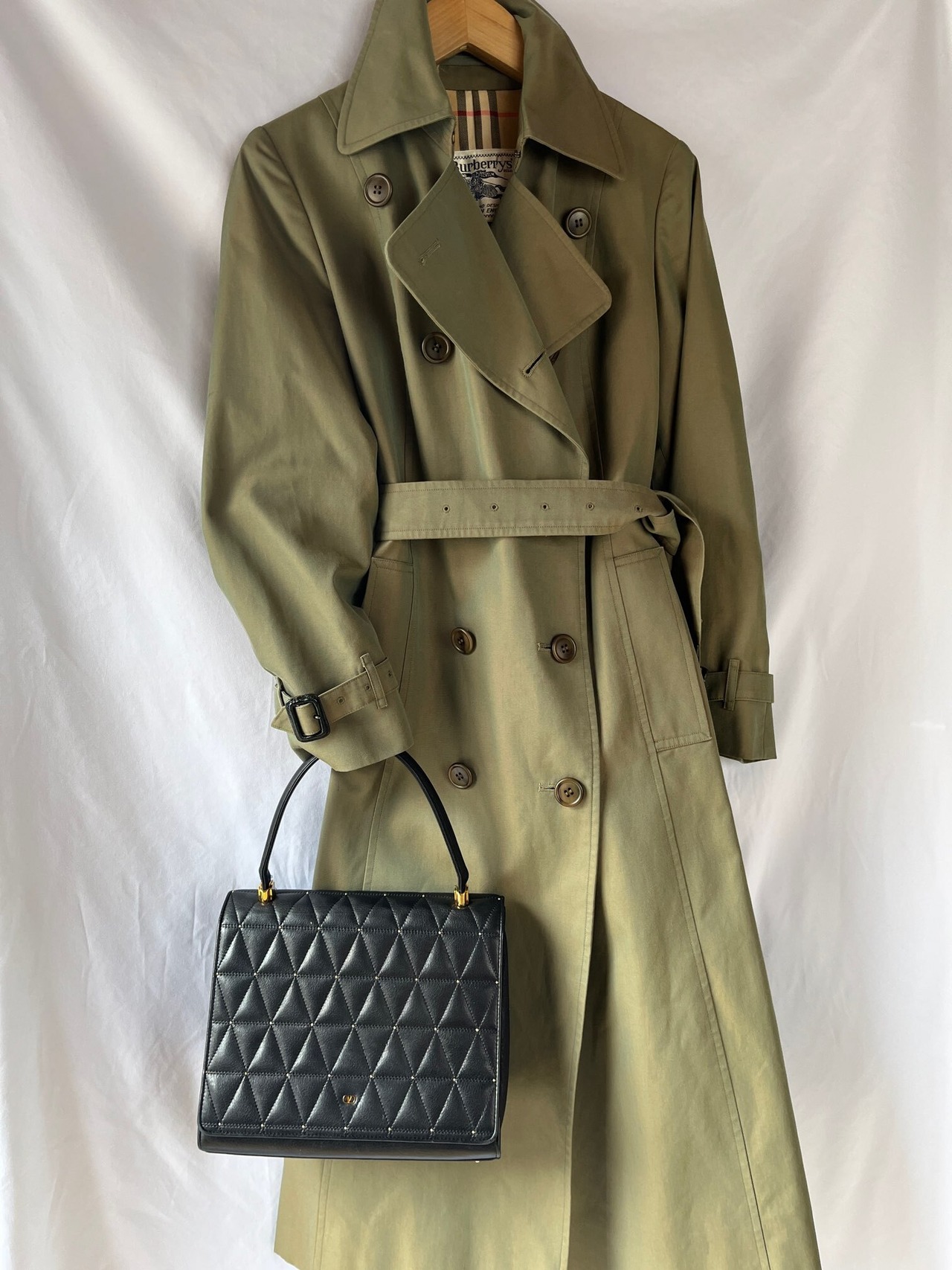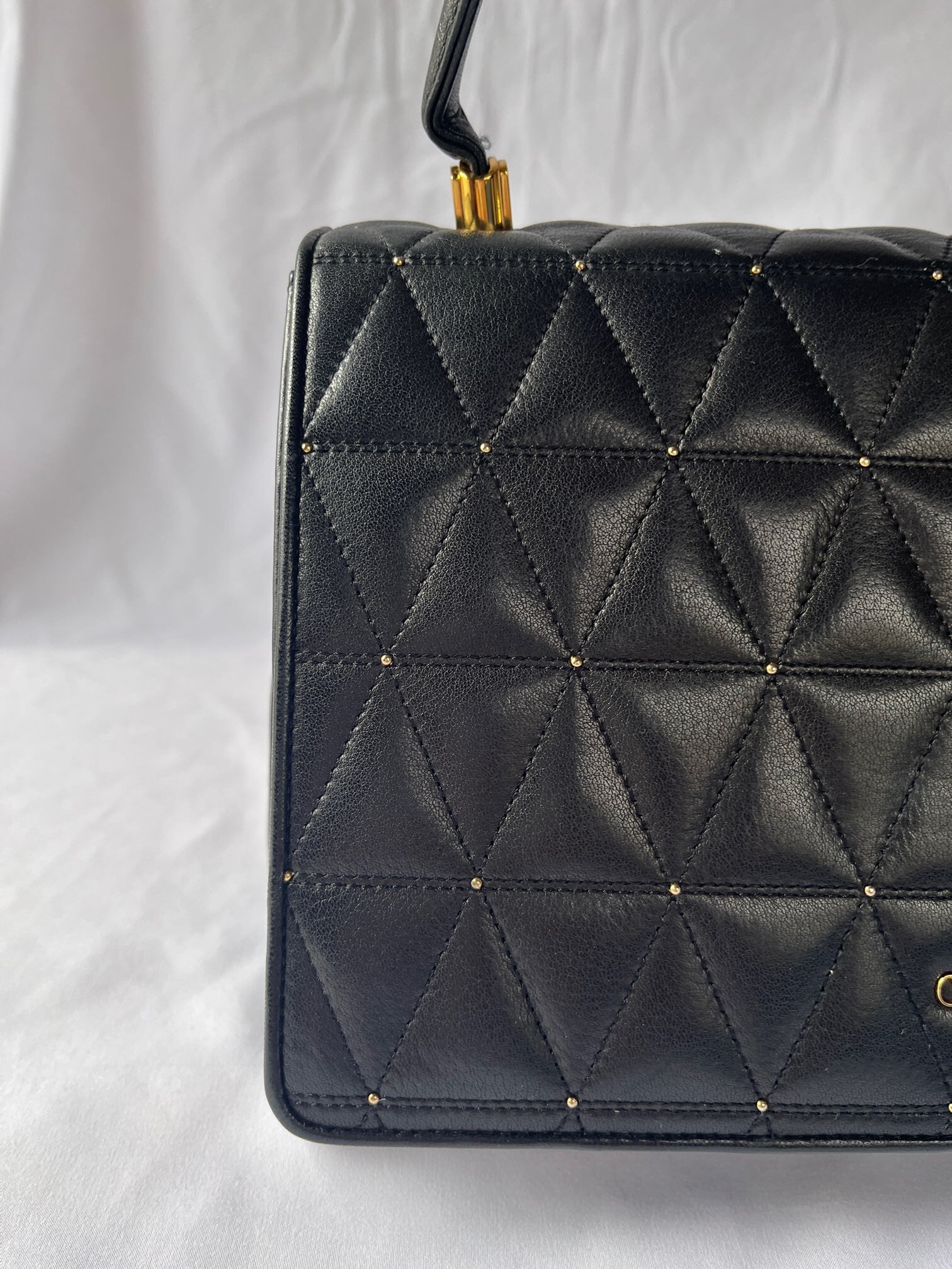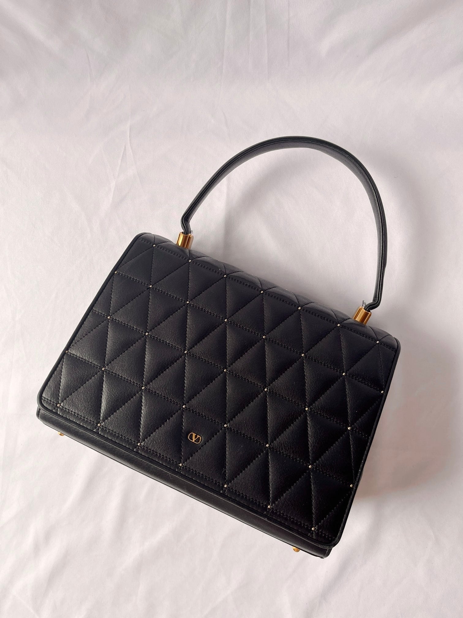 ブラックレザーの三角キルトに小さなスタッズデザインがアクセントに効いたvalentinoの vintageショルダーバッグ。