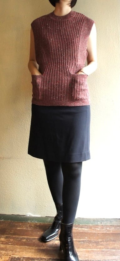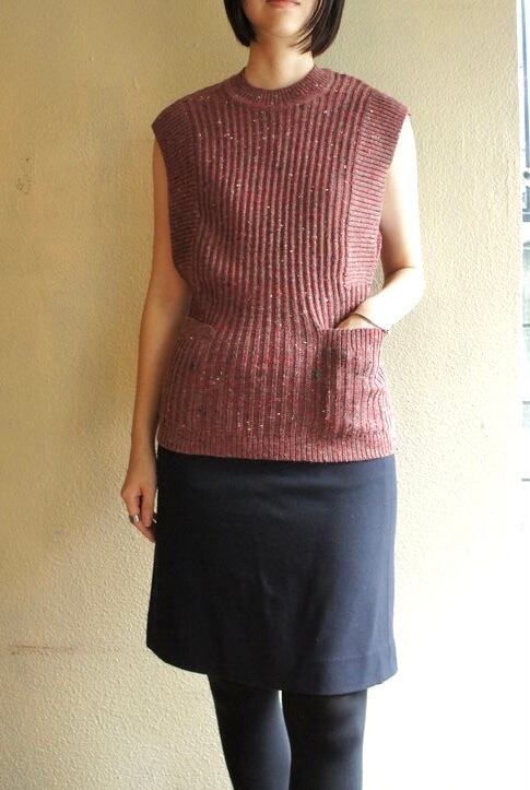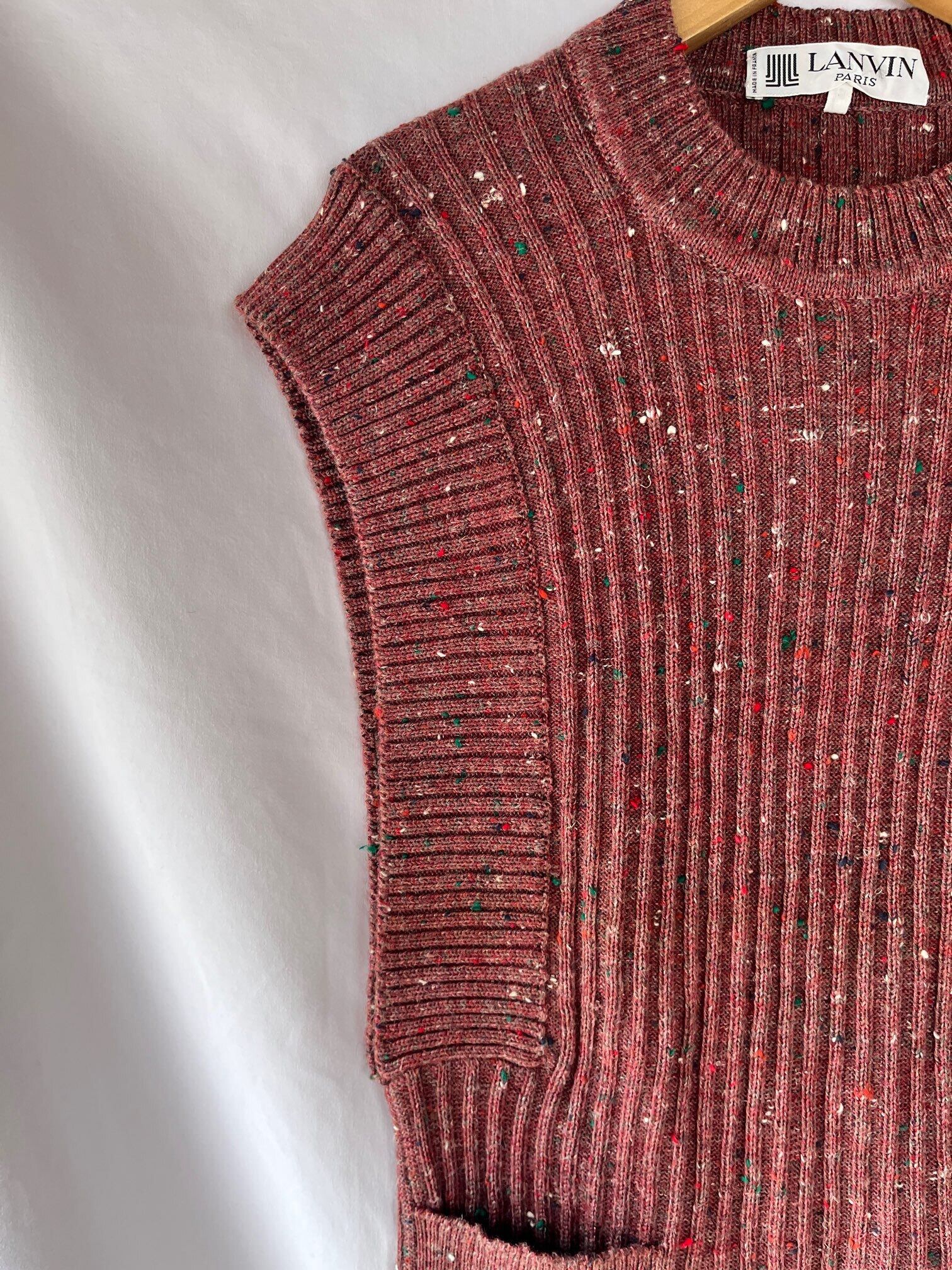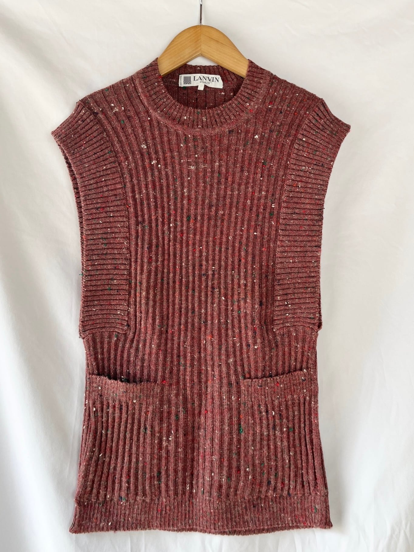 赤にMIXカラーのニットがかわいらしいLanvin 80's vintageニットベスト。嬉しいdeadstock!