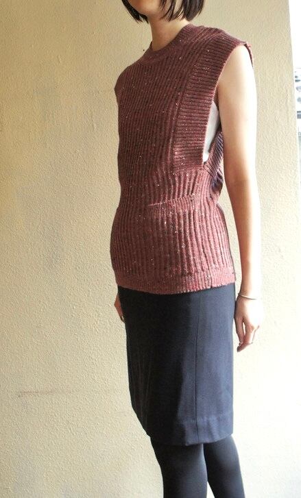 Lanvin 70〜80's Color Nep Knit Vest-Red- -Dead stock-