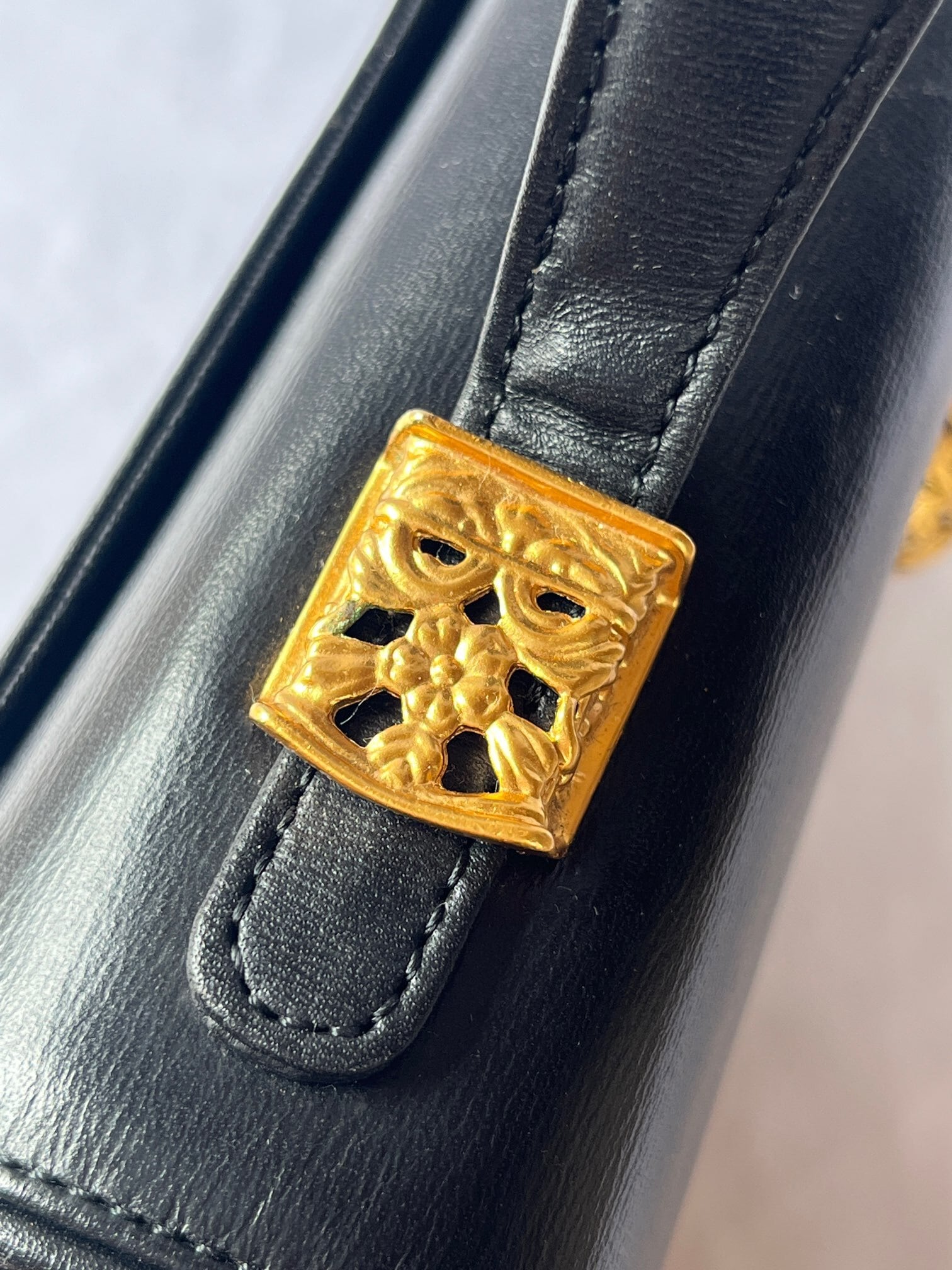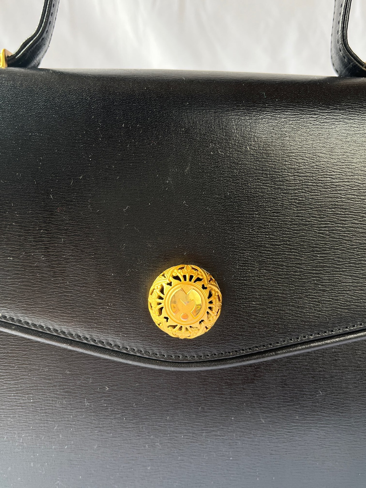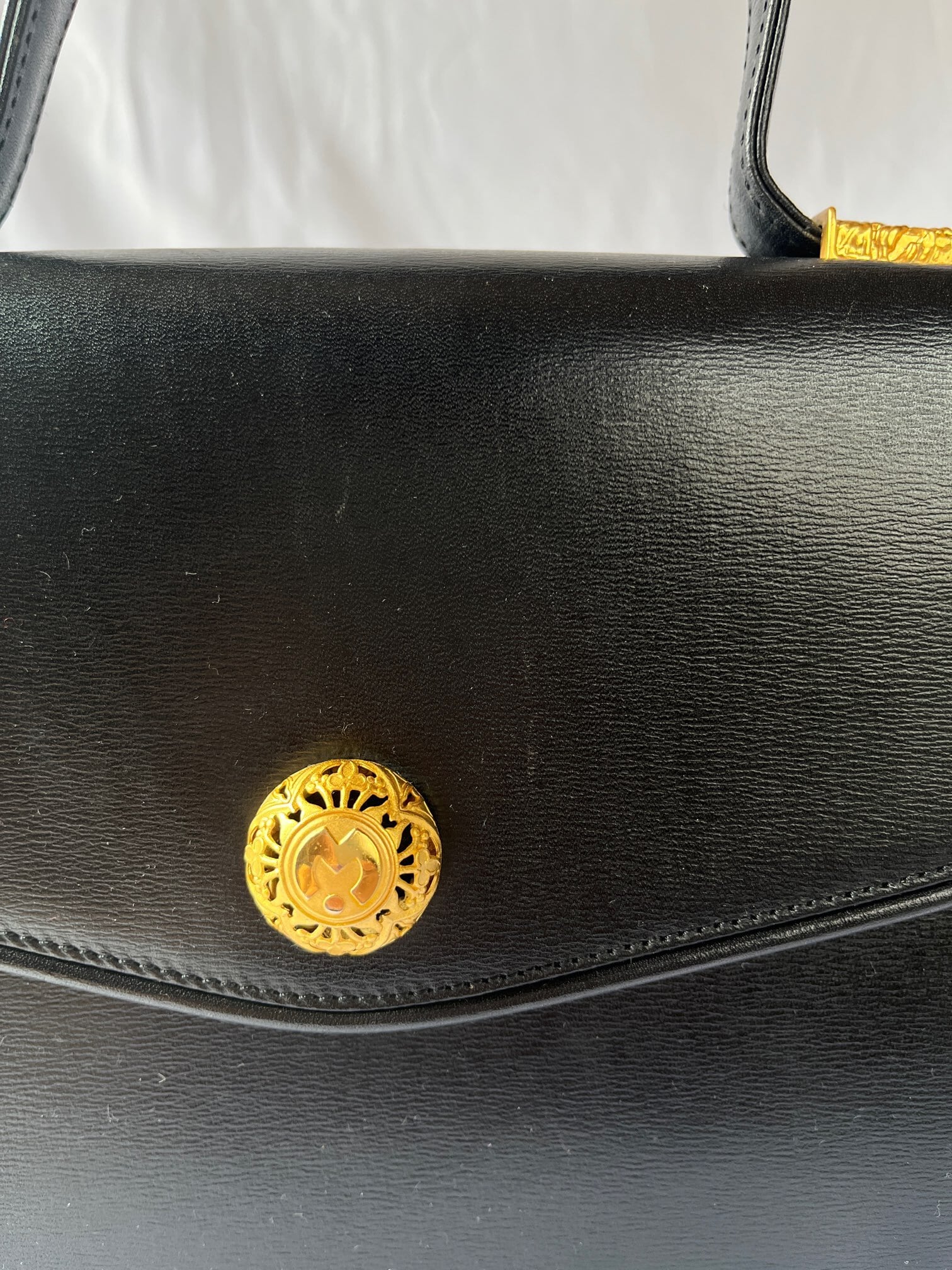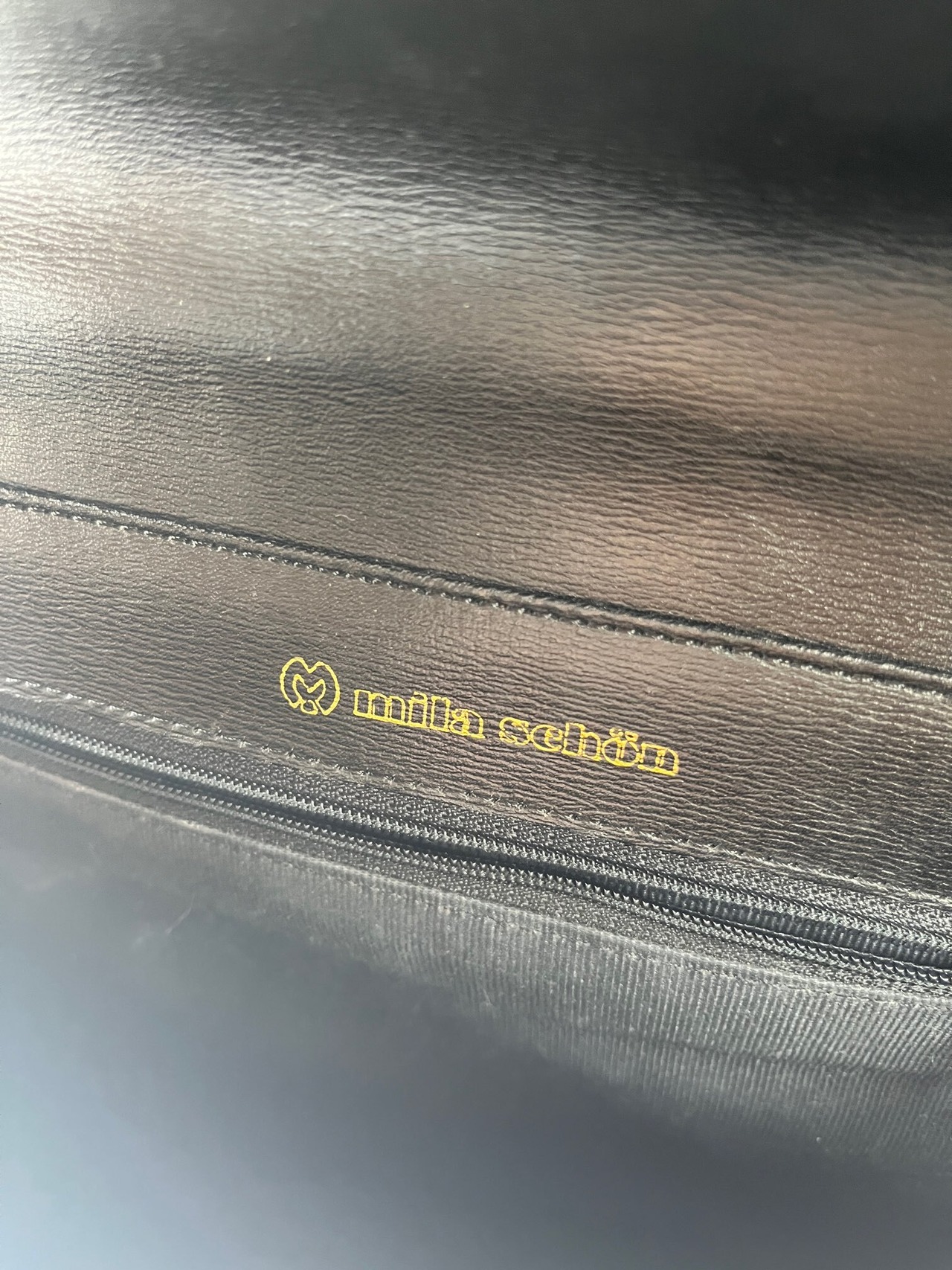 ブラックレザーにゴールドのモチーフが華やかなmila schonのハンドBag。