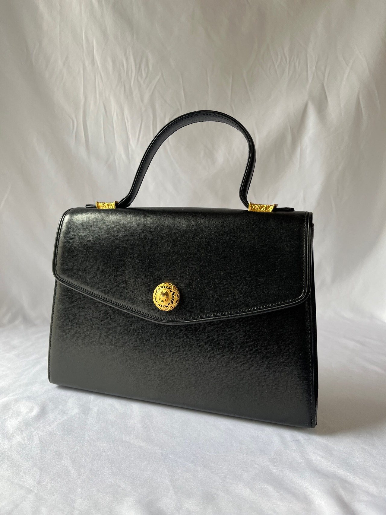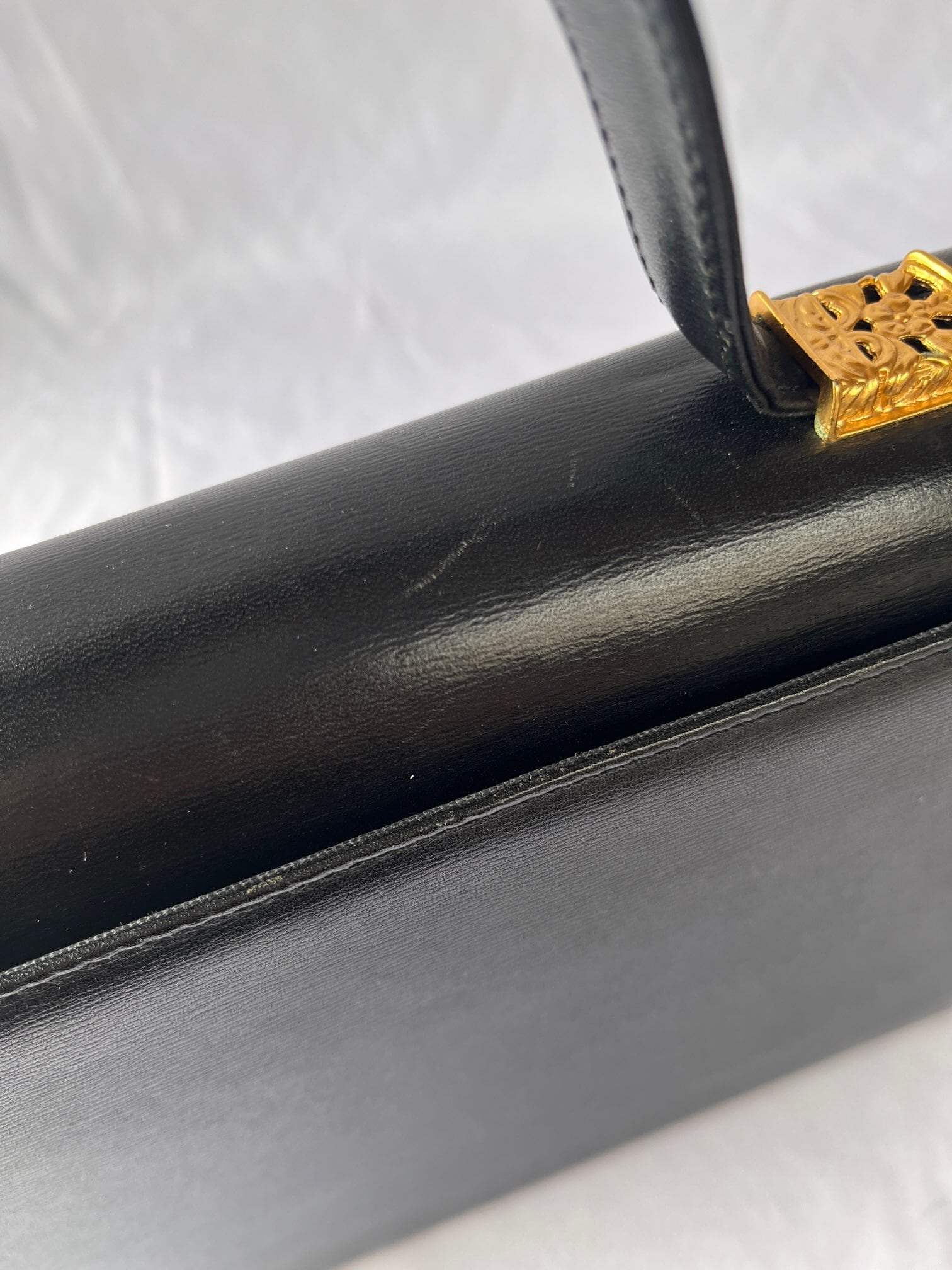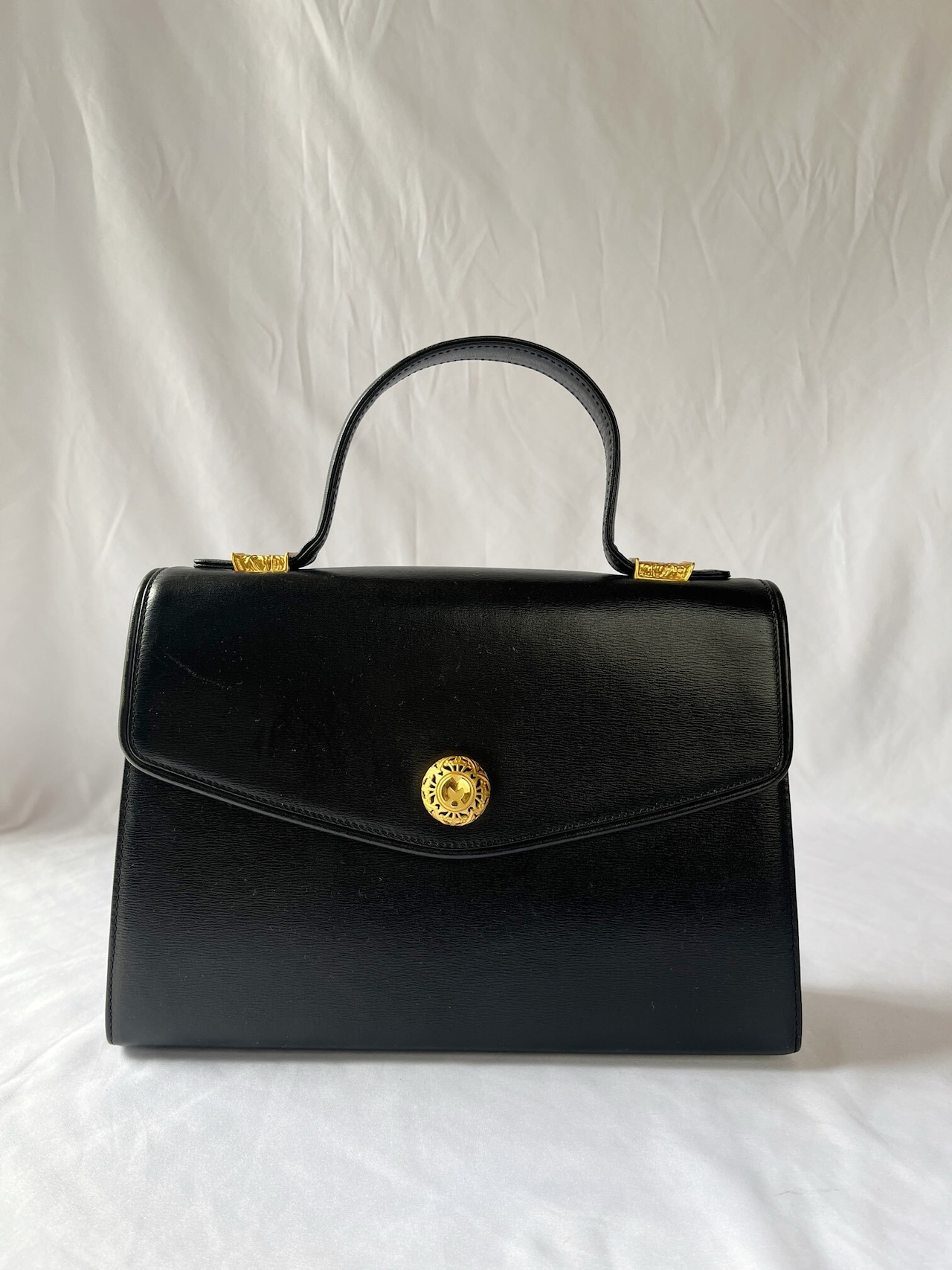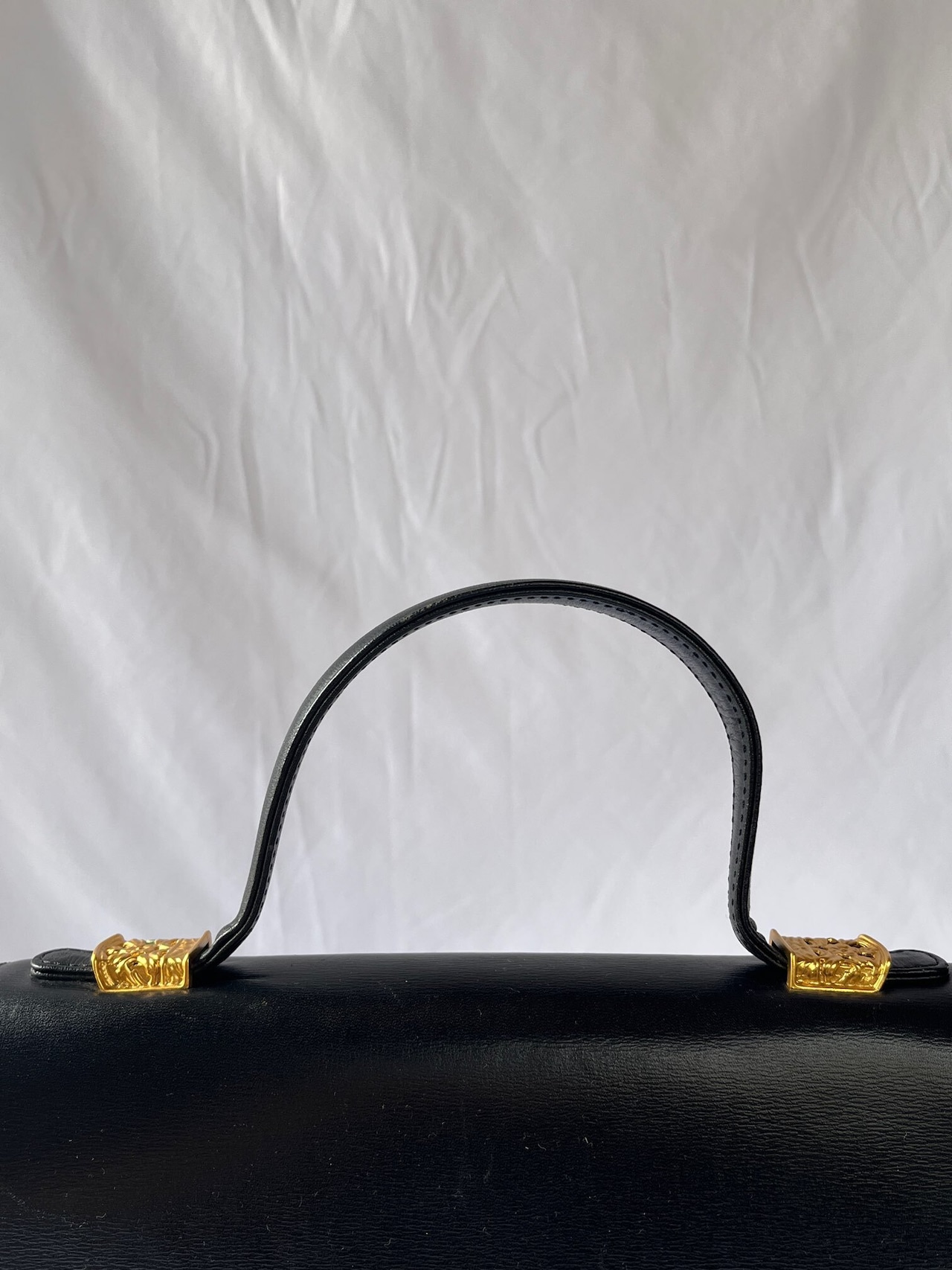 ブラックレザーにゴールドのモチーフが華やかなmila schonのハンドBag。