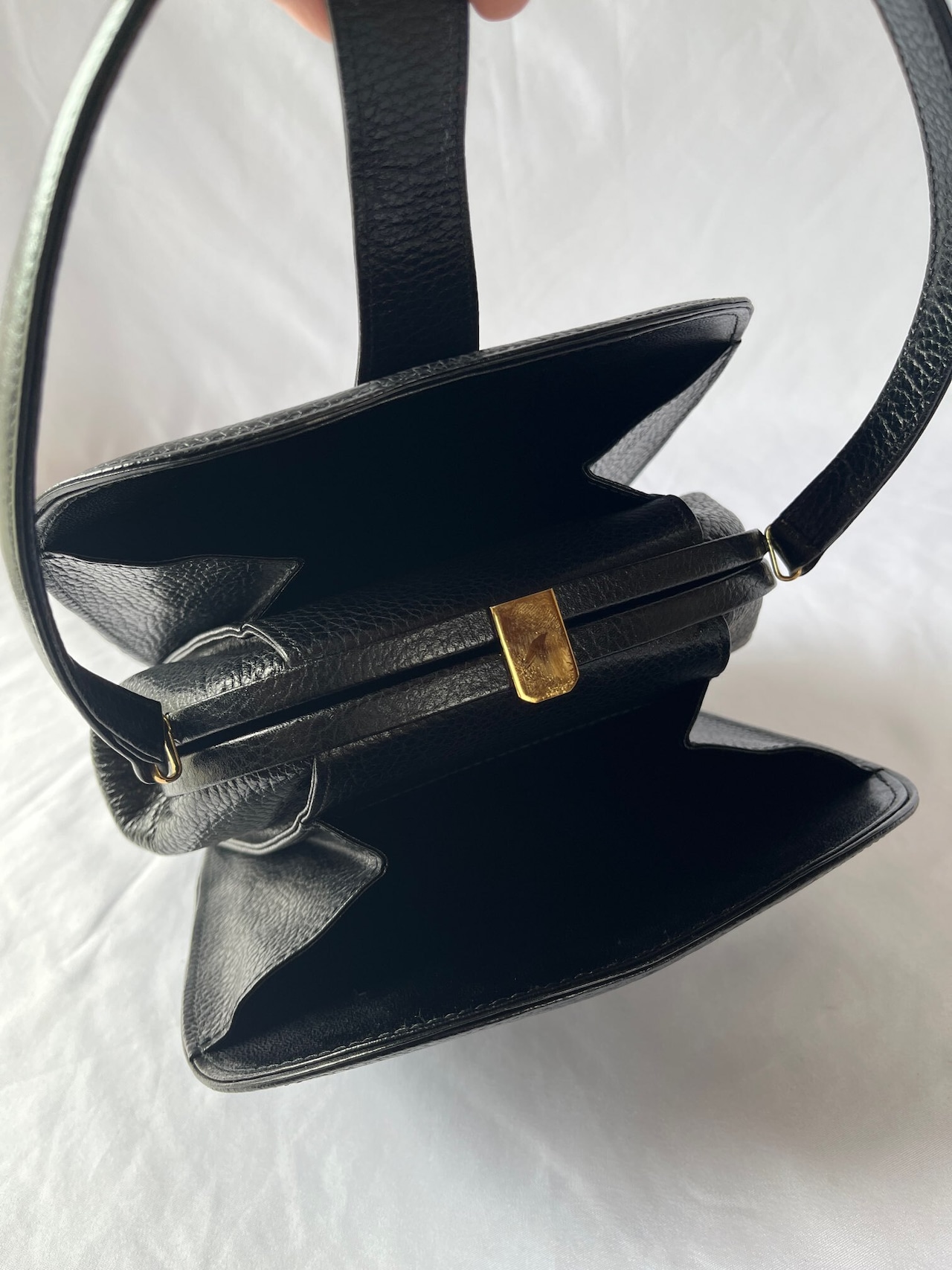 丸みのあるコロンとしたシルエットがかわいらしいmila schon のハンドBag。