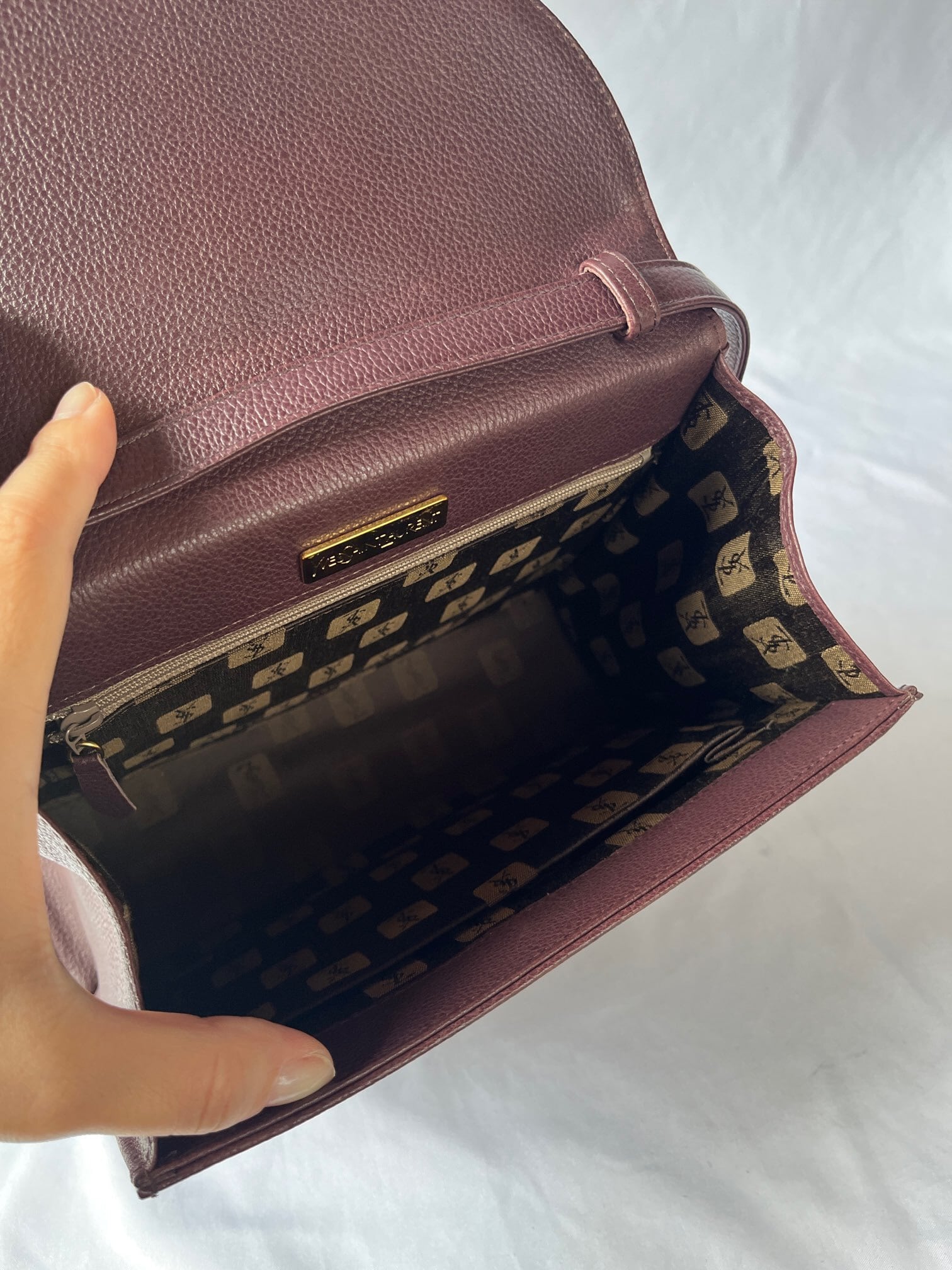 YSL 80's Bordeaux Leather Spuare Shape 2way Bag