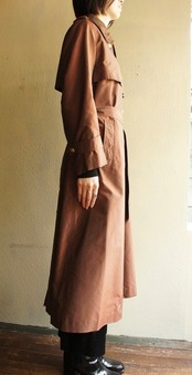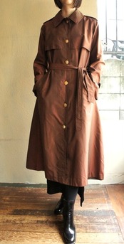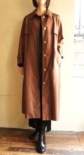シャイニーな艶のあるブラウンカラーがシックながらも存在感のあるCeline 80's Vintageコート。自然に広がるAラインのシルエットが気品のある一枚。ゴールドのメタルボタンには馬車ロゴが施されていて、裏地も馬車ロゴ、、Celineらしいエッセンスが光ります。