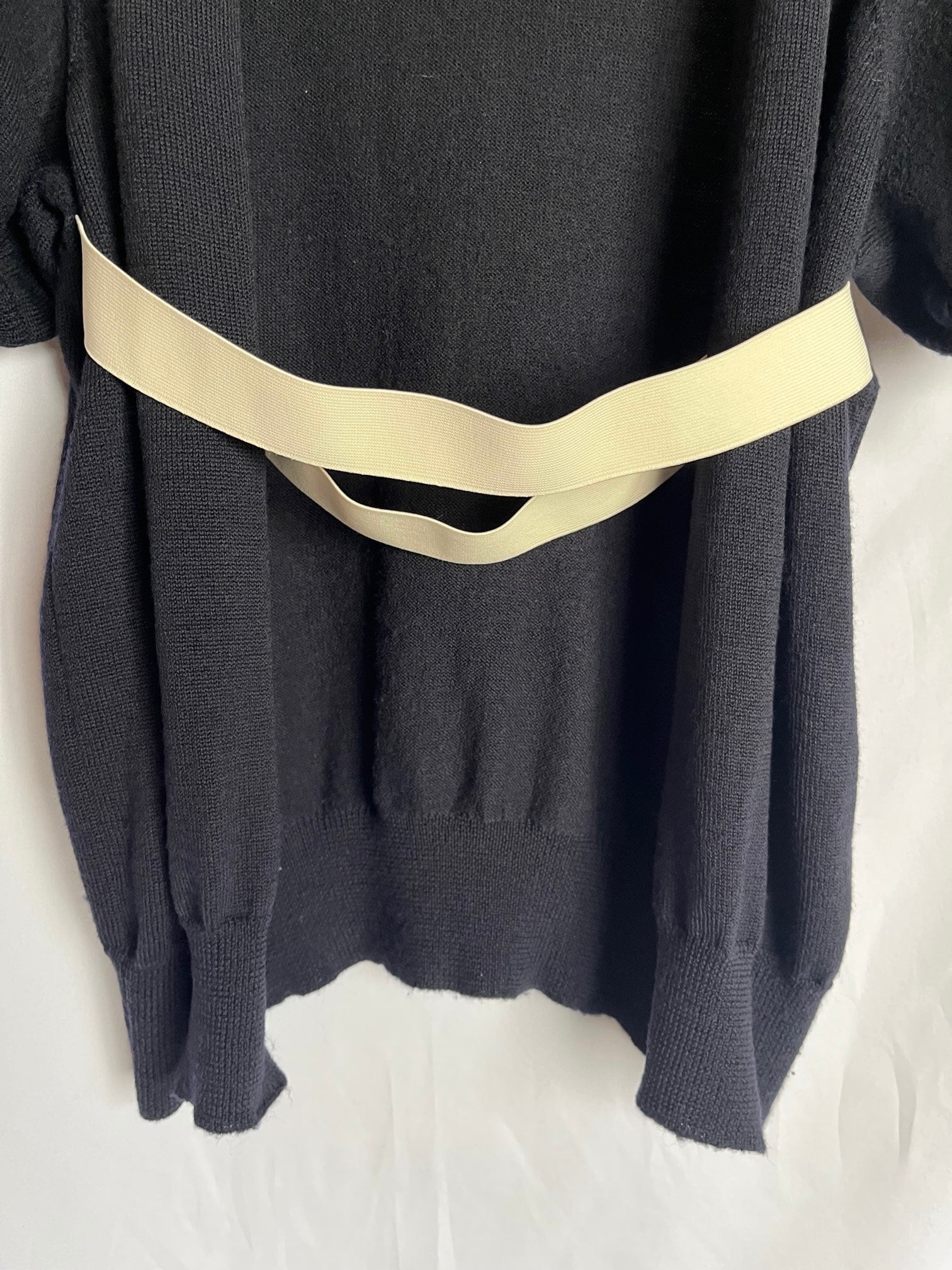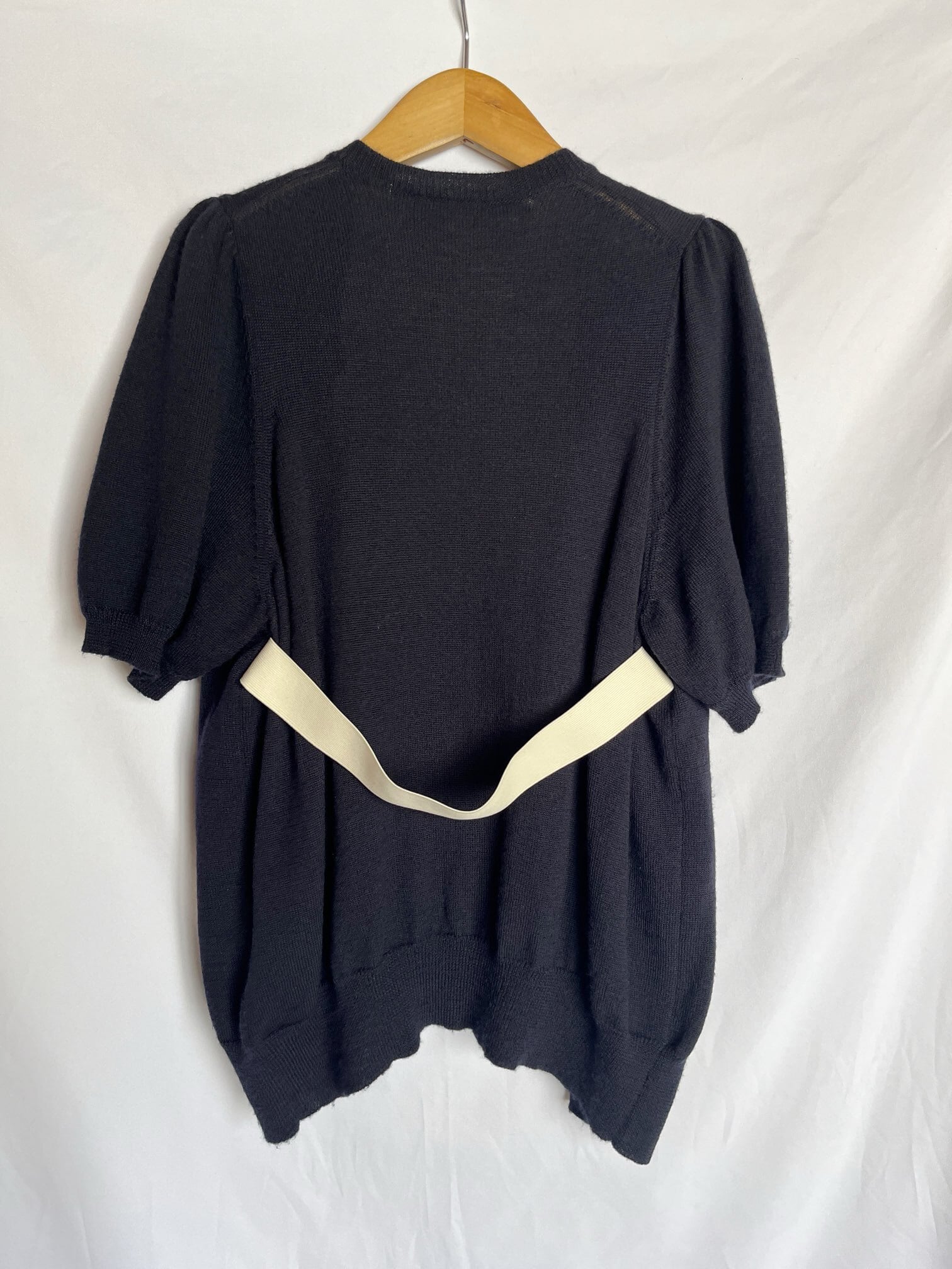DK.Navy地にオフホワイトのゴムベルトがさわやかなCOMME des GARCONS 1994年春夏半袖ニット。