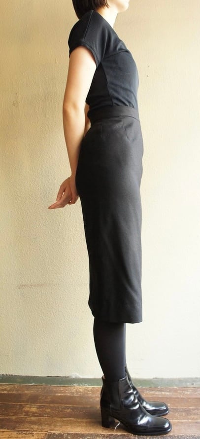 コクーンシルエットが女性らしいHermes 80's vintageスカート。シンプルなブラックカラーが洗練された一枚。起毛感のあるウール素材でしっかりとあたたかさも◎デイリーにはもちろん、オケージョンシーンにもオススメです