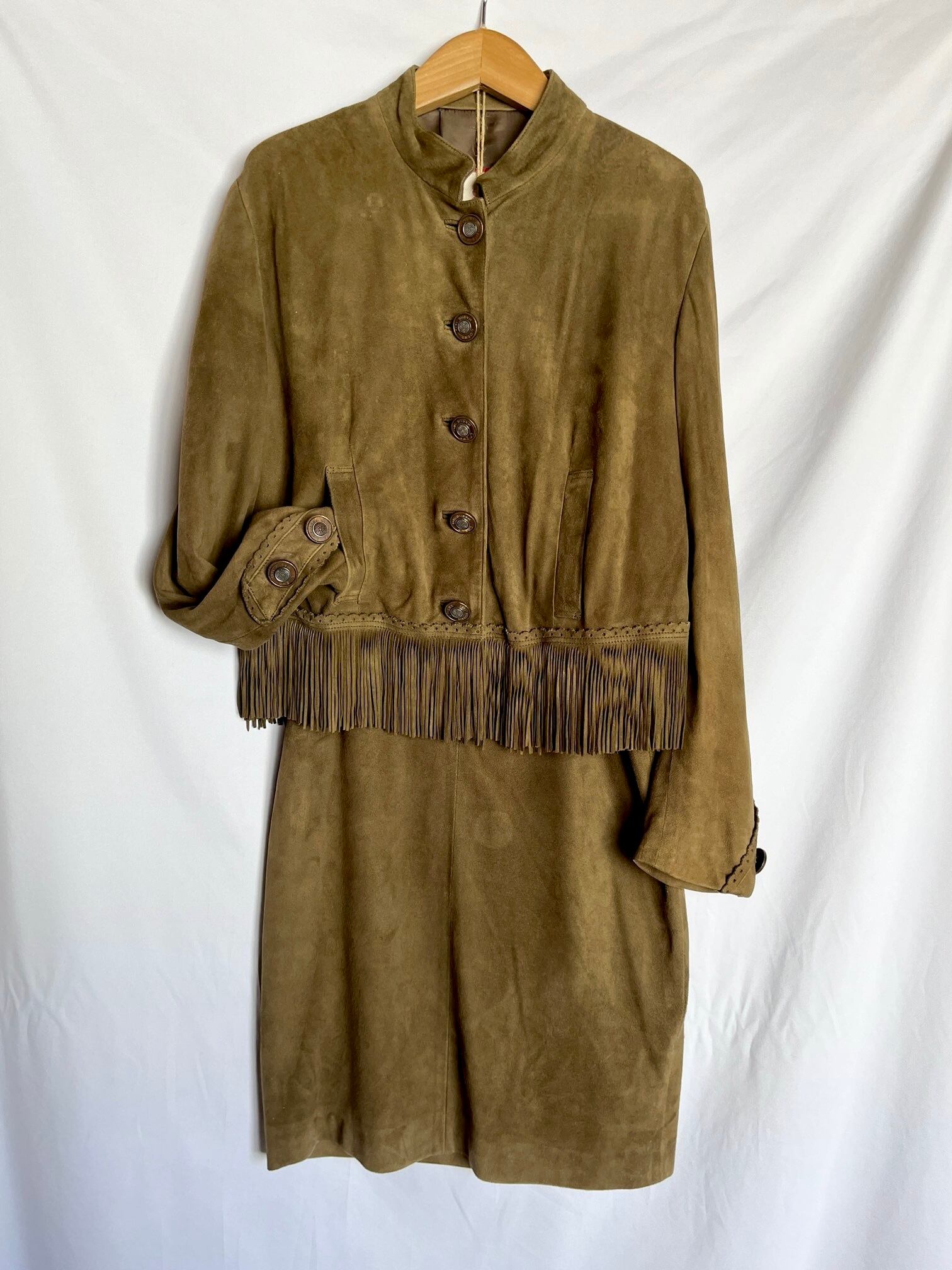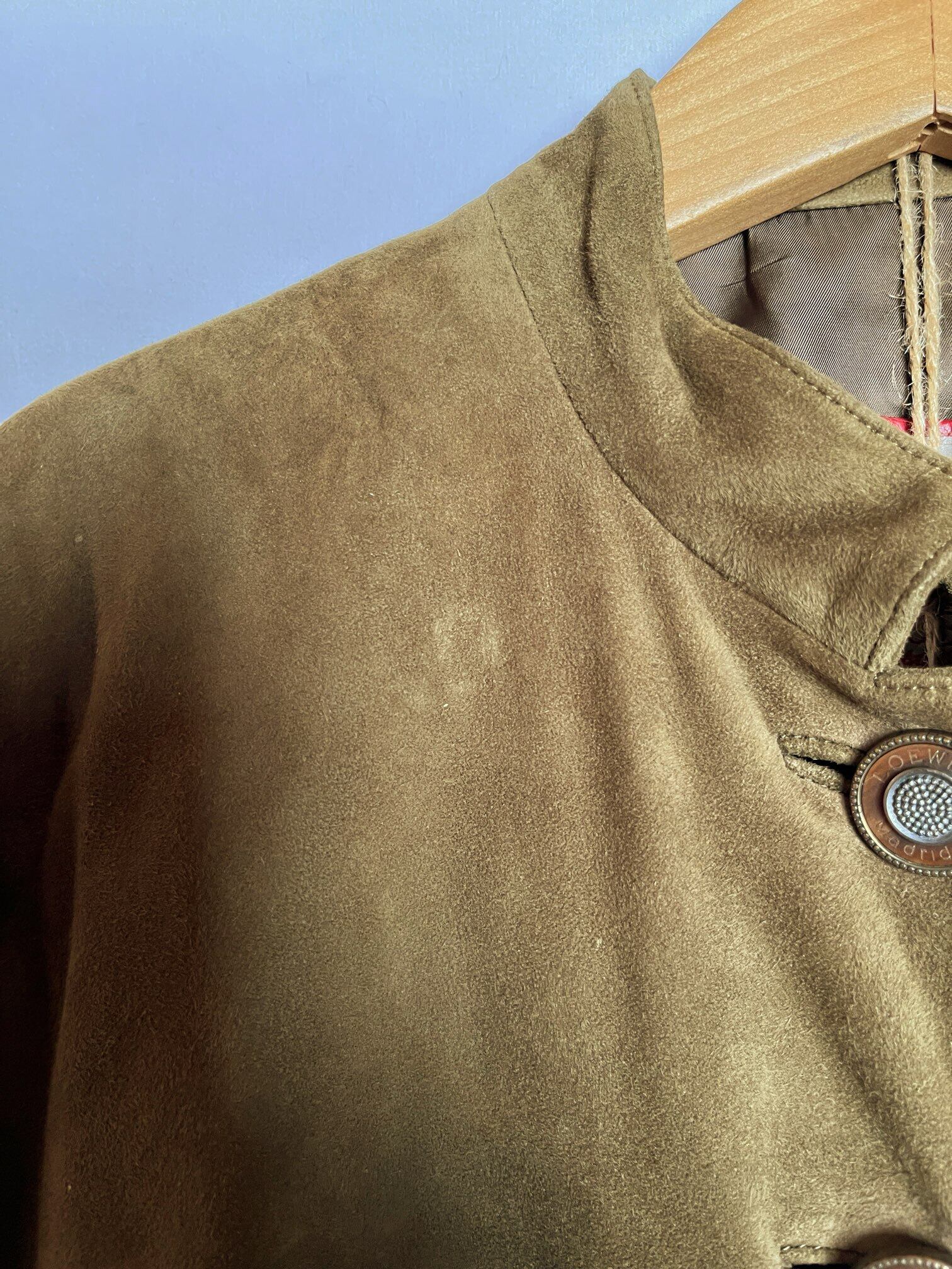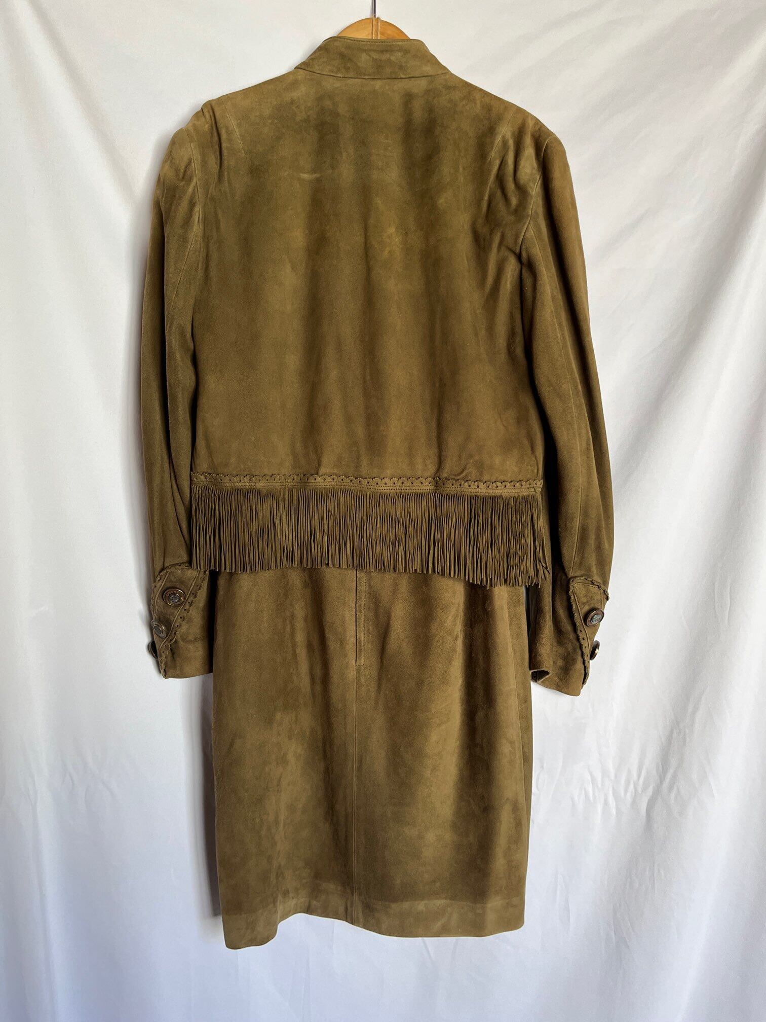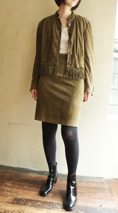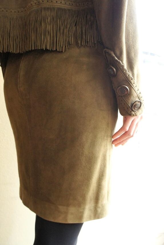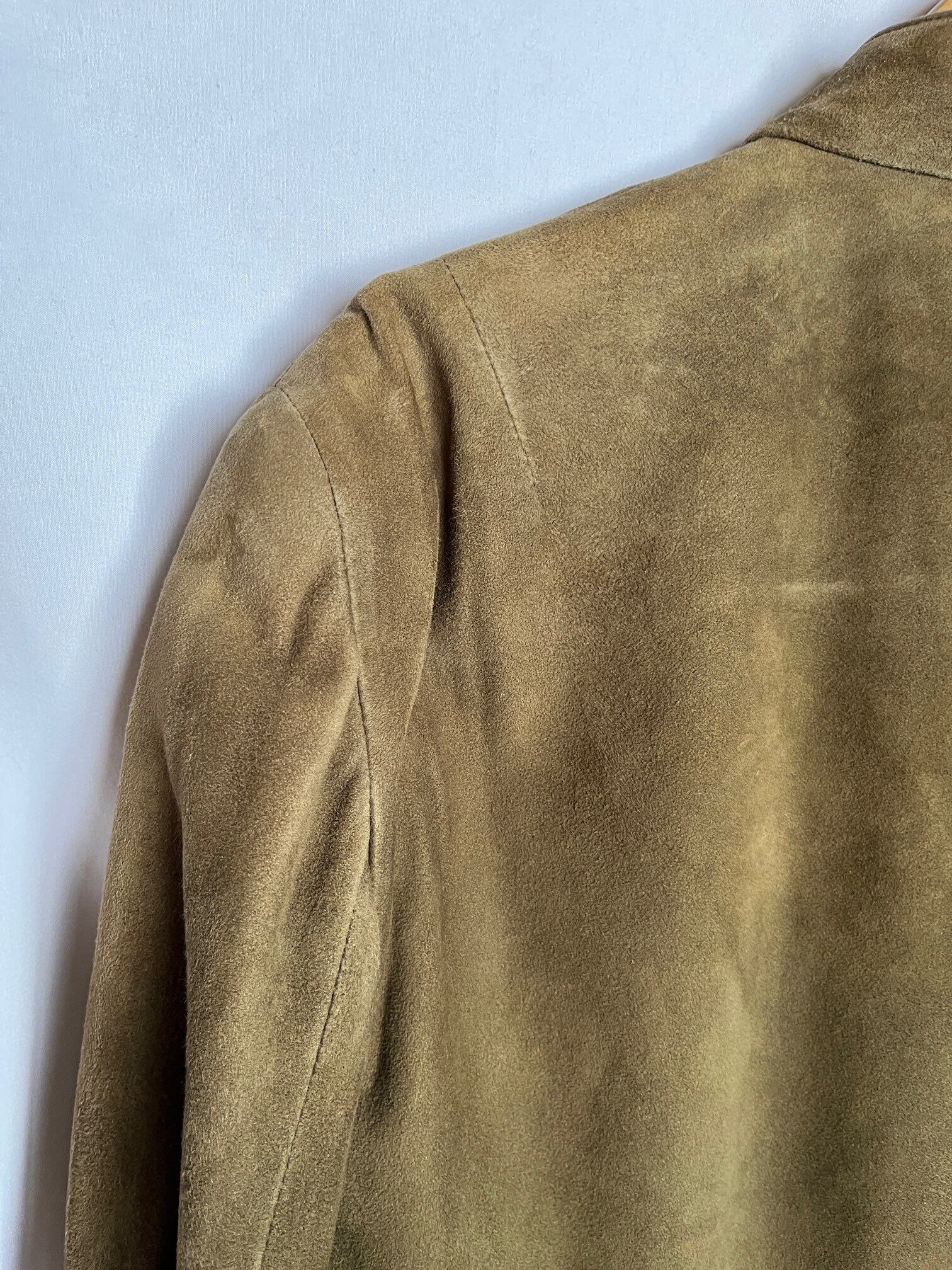 とても柔らかい極上のスエード地はハイクオリティでさすがLOEWE。大きなメタルボタンやフリンジなど、ウエスタン風のエッセンスがユニークなジャケット。