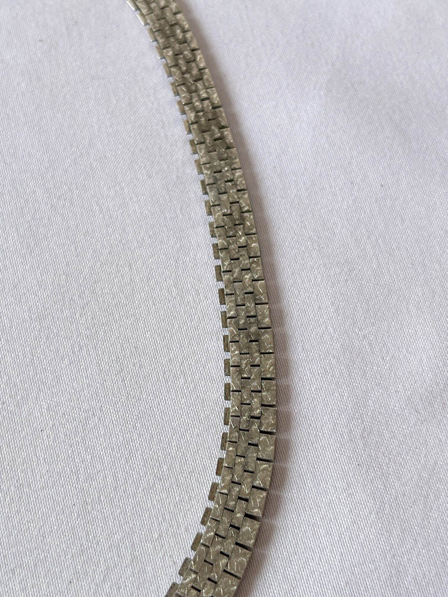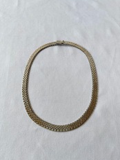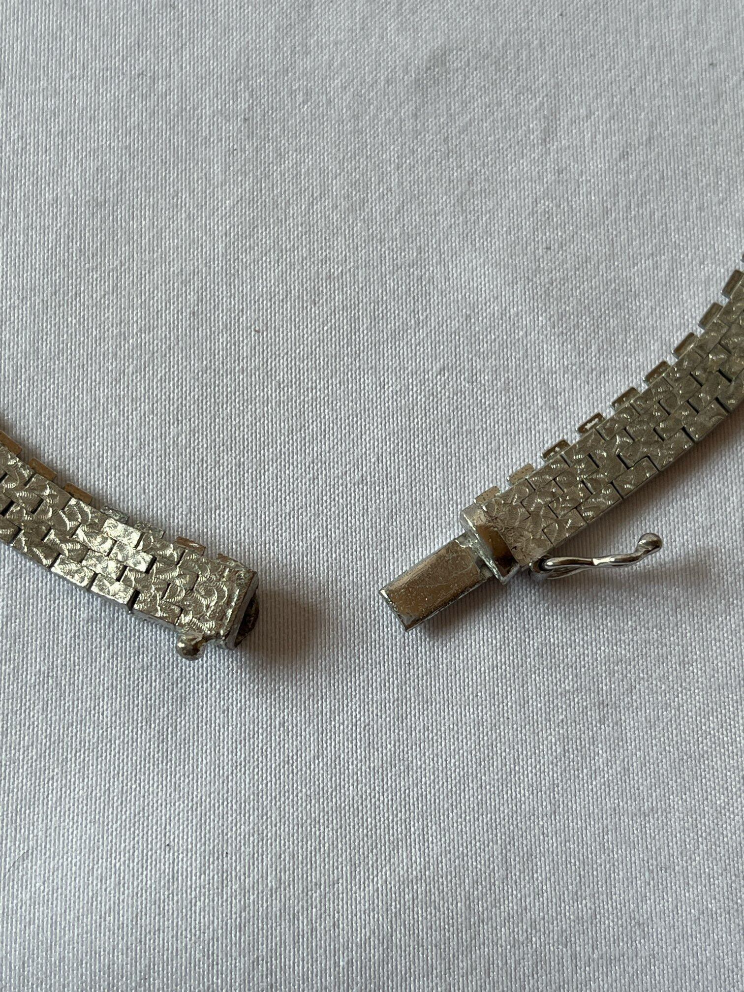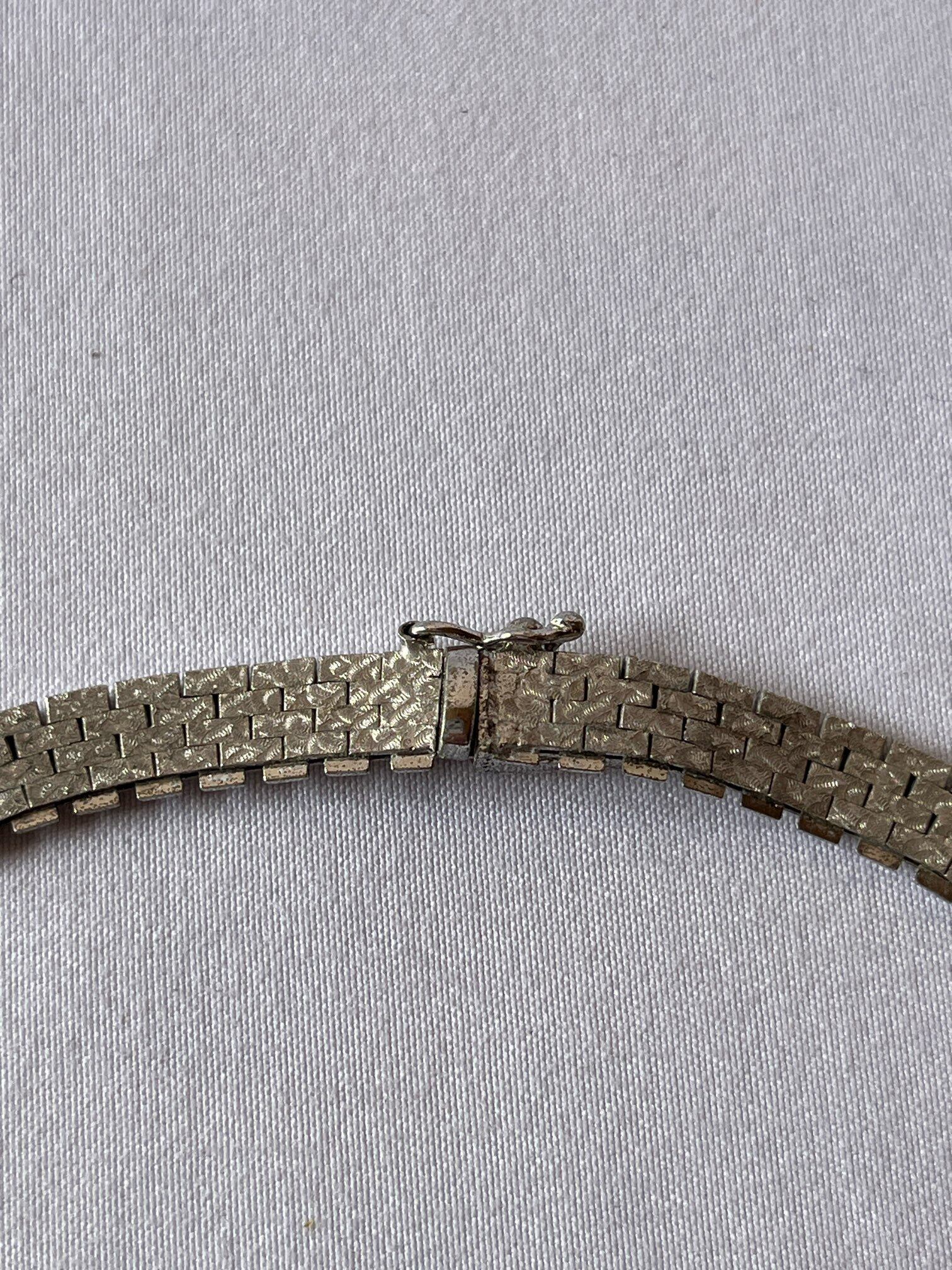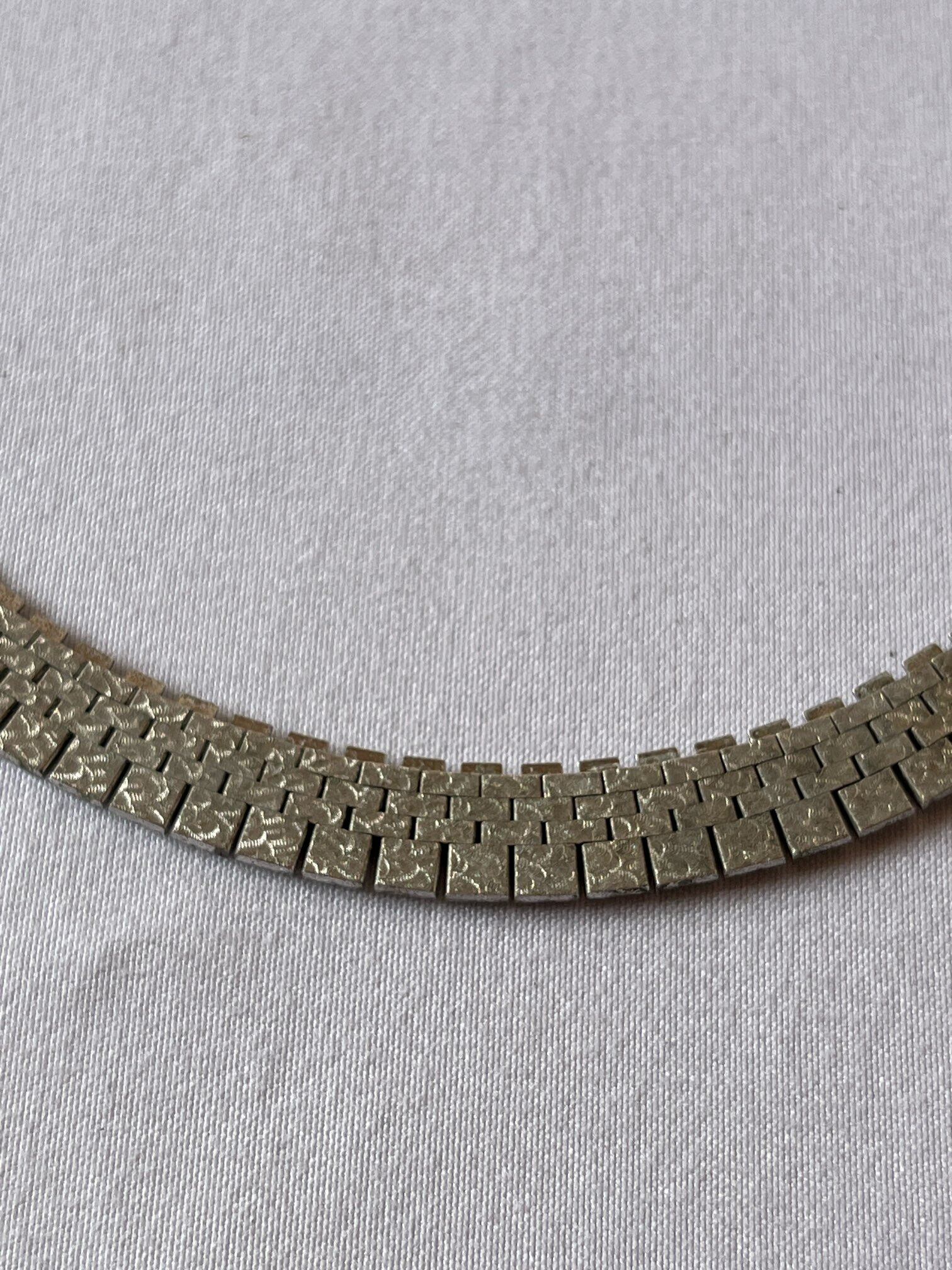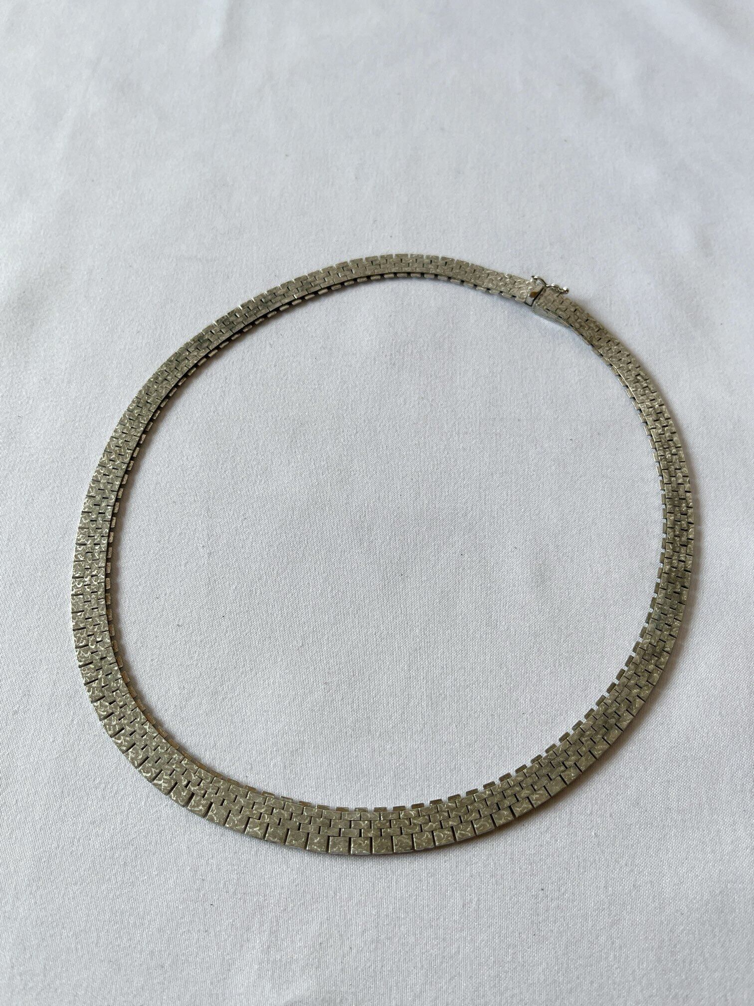太めのスネイクチェーンが存在感のあるVintage Sterling silver ネックレス。よく見るとブロックが積み上げられたようなデザインでユニークさも◎チョーカー型でコーデが華やぐ一品です。
