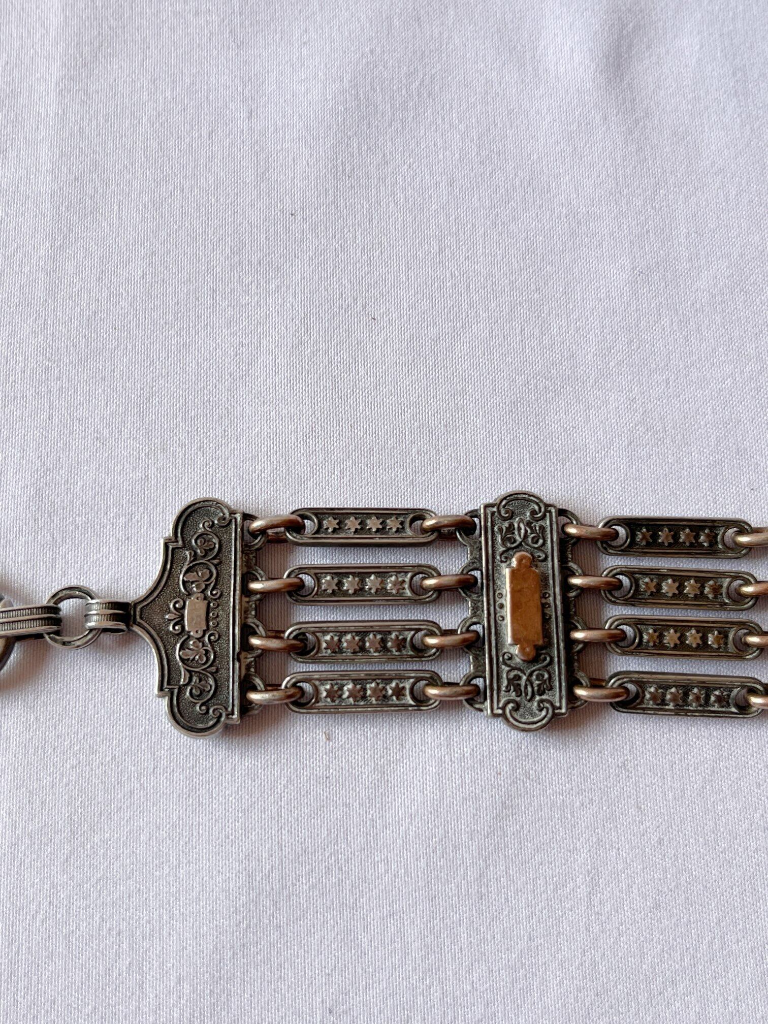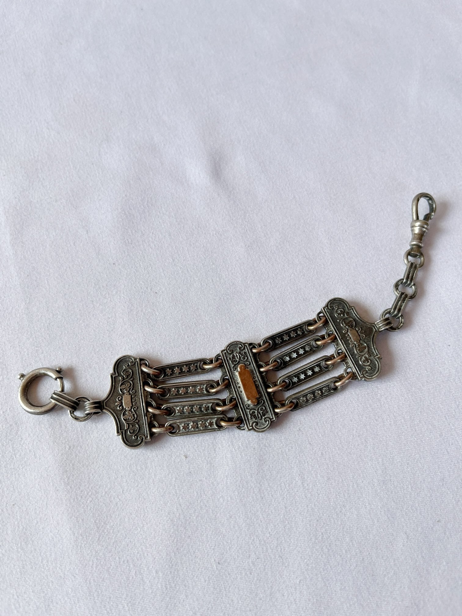 レースのような模様が芸術的なFrance 1920〜40's Antiqueブレスレット。フェンスのようなつくりがユニークでアラベスクや☆のモチーフが繊細な一品です。