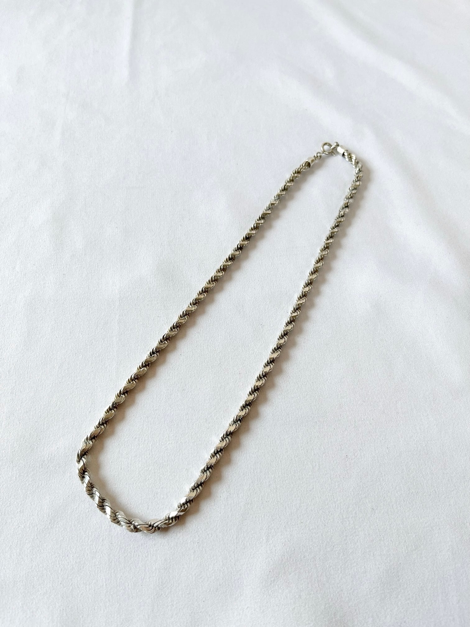 ツイスト状のチェーンがボリュームのあるVintage Silver925ネックレス。何層にも重なりあうような複雑なレイヤーデザインが芸術的。短めですがメンズにもオススメです。