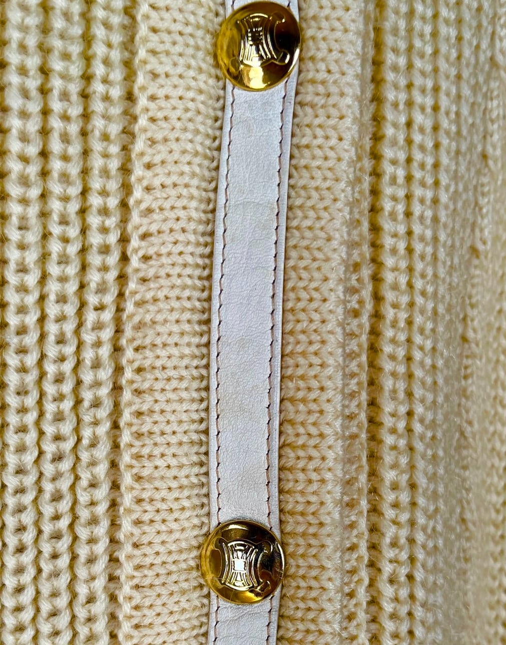 Celine 70〜80's “White Leather Piping” Ivory Knit Cardigan