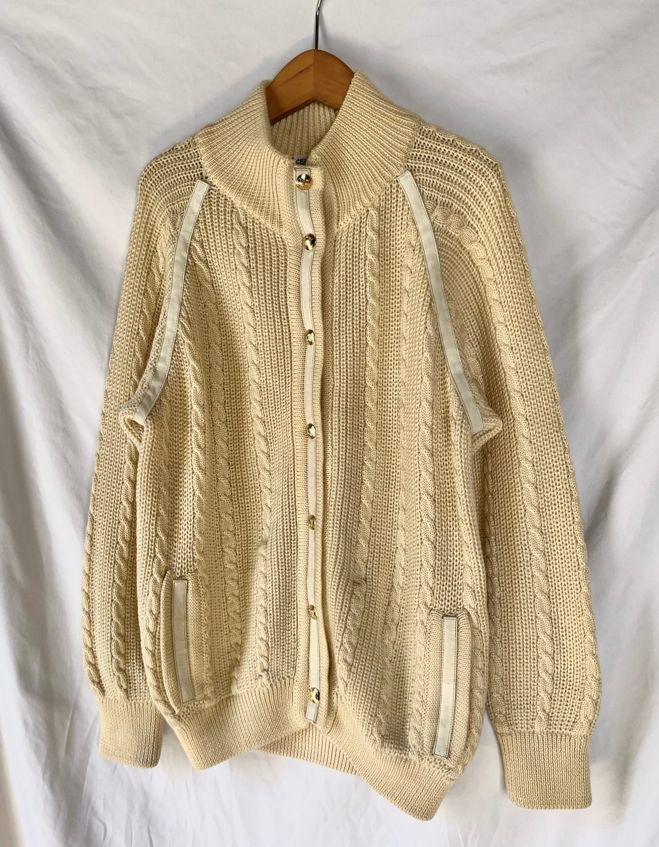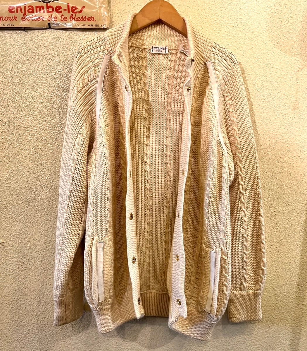 アイボリーの色味が柔らかいCeline70〜80's Vintage ニットカーデ。