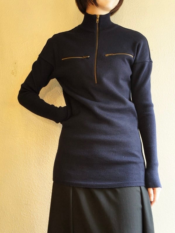 ALAIA 80's “Navy”Special Hi Neck Knit Tops