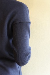 アームがリブニット素材に切り替えとなっていて、同色ながらも抑揚のあるデザインが魅力的。