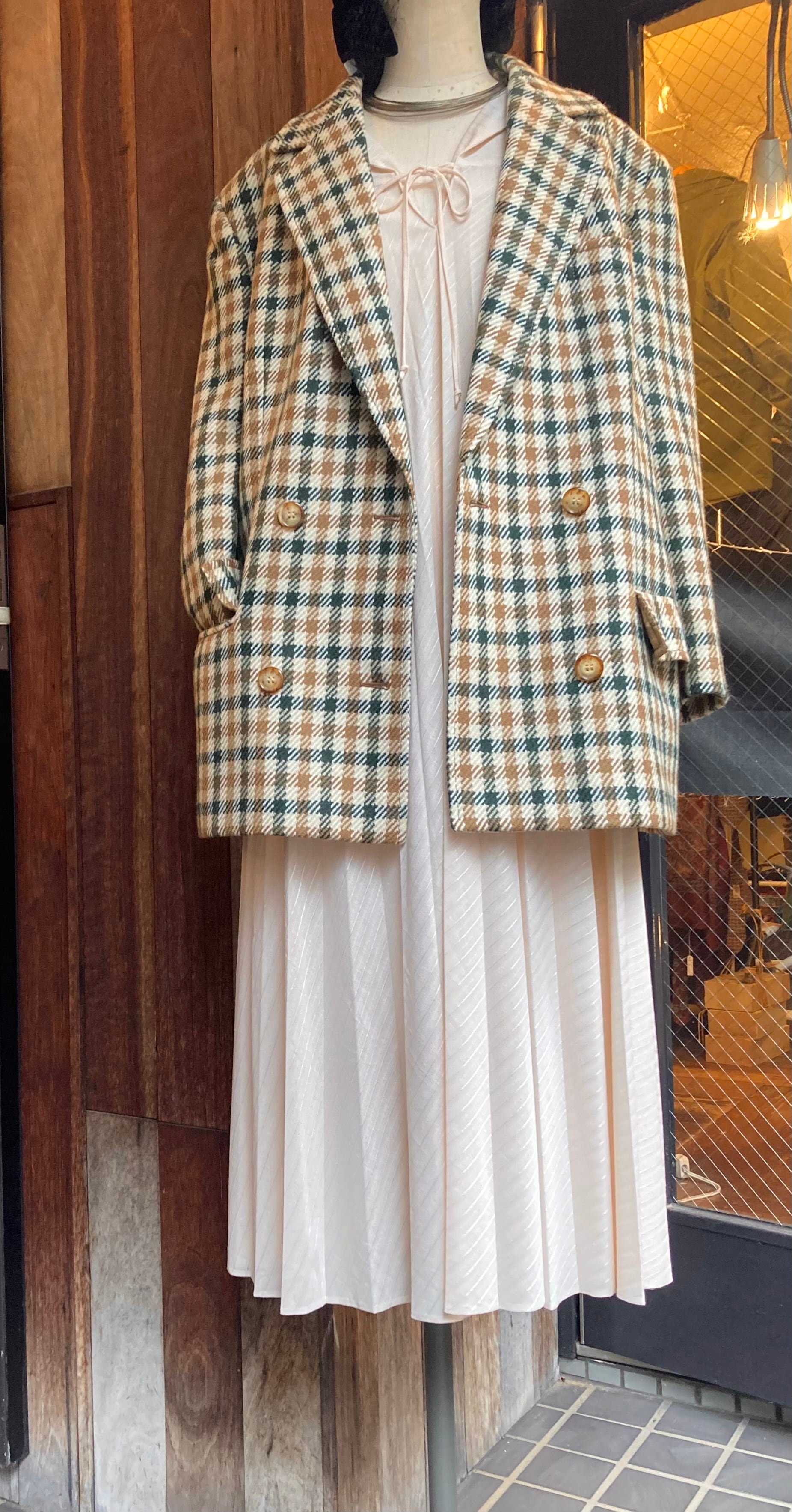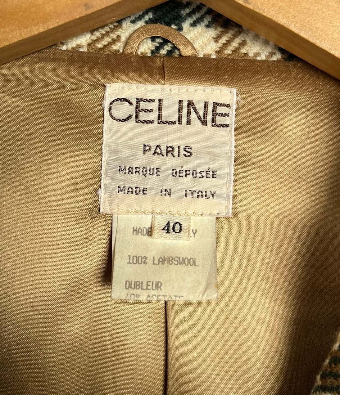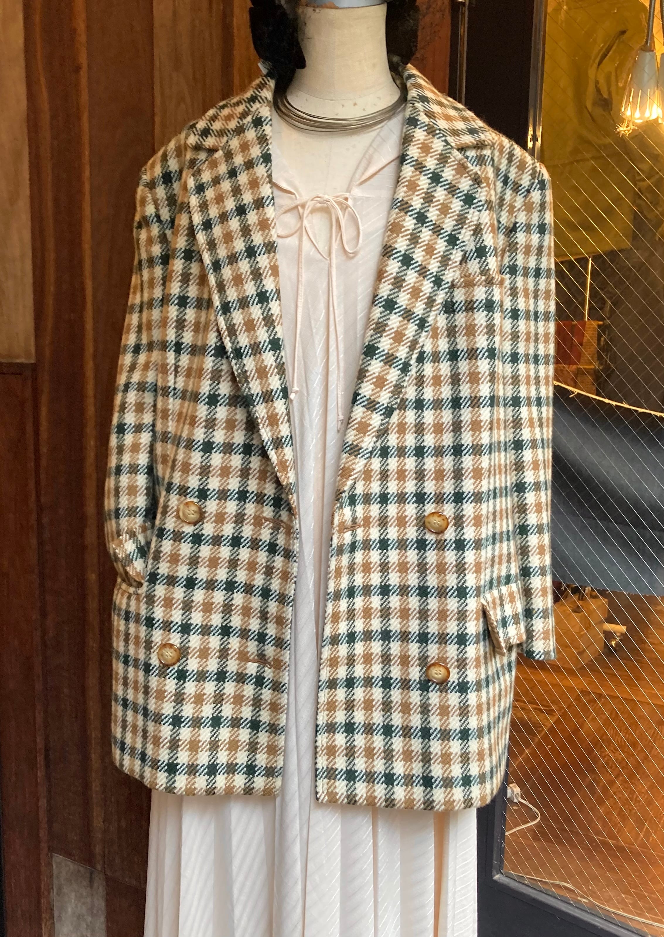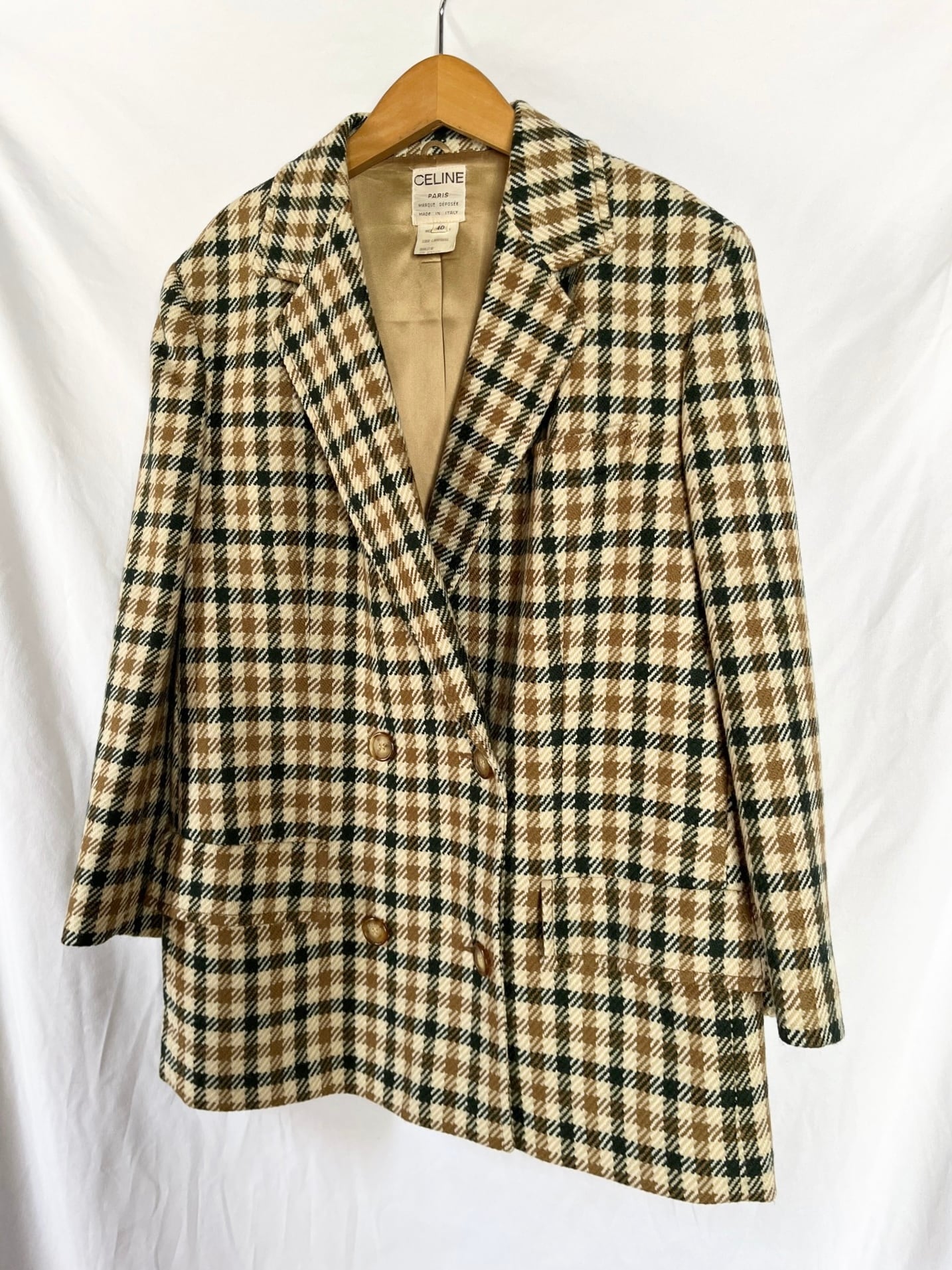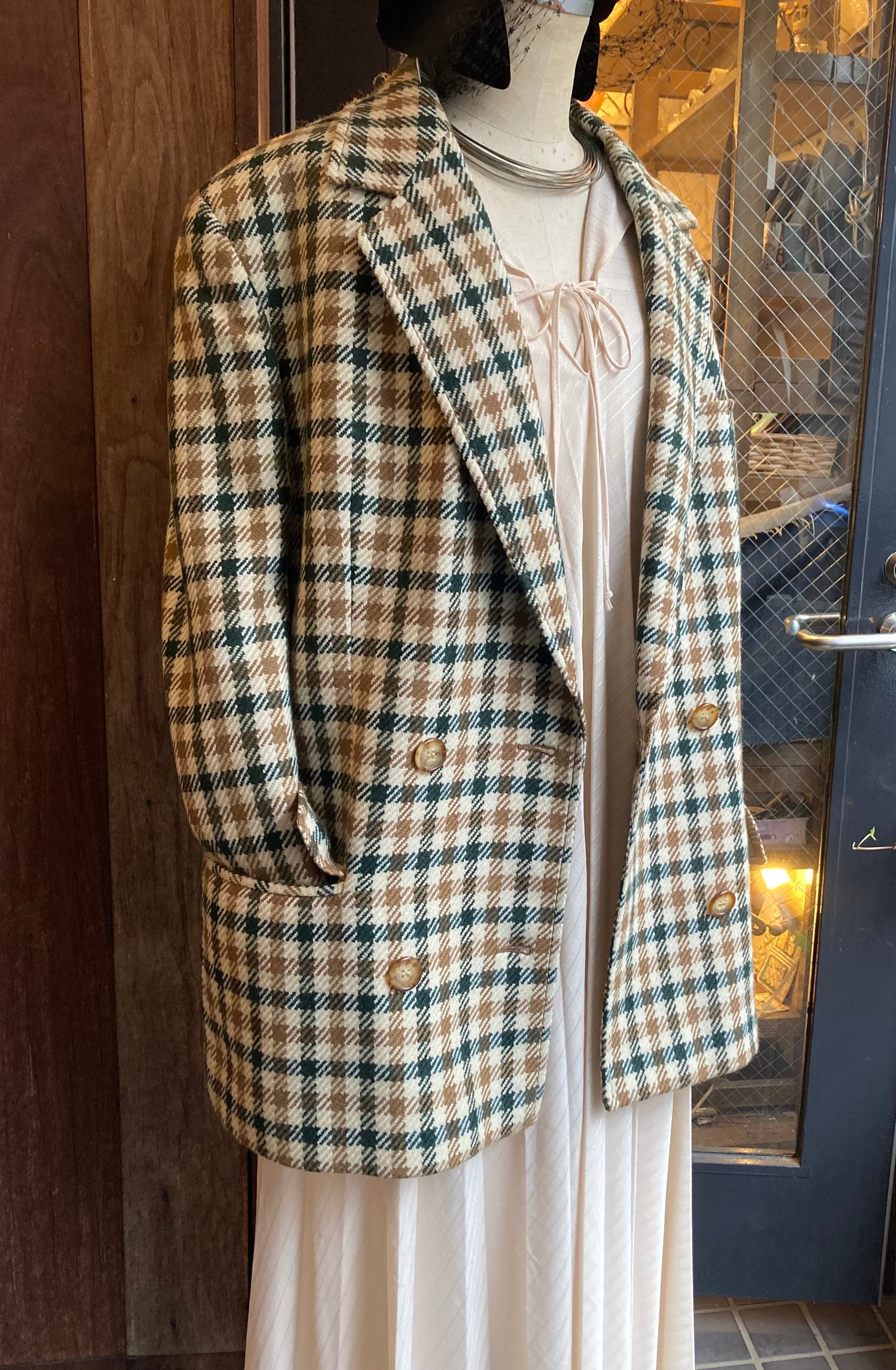 グリーン×ブラウンのチェック柄があたたかみのあるceline 80's Vintageジャケット。