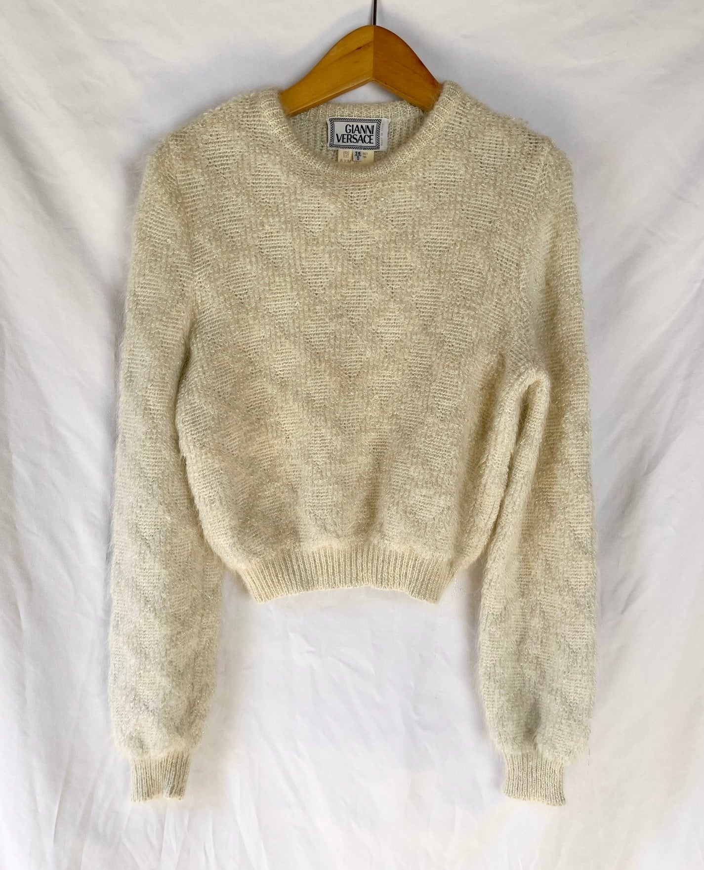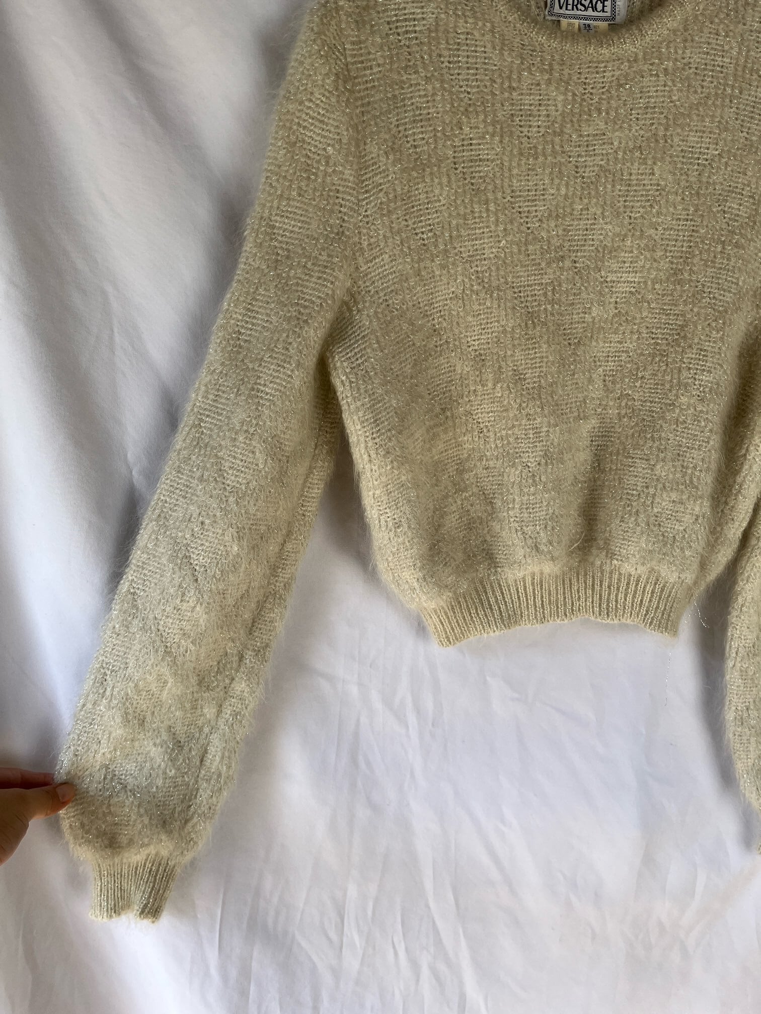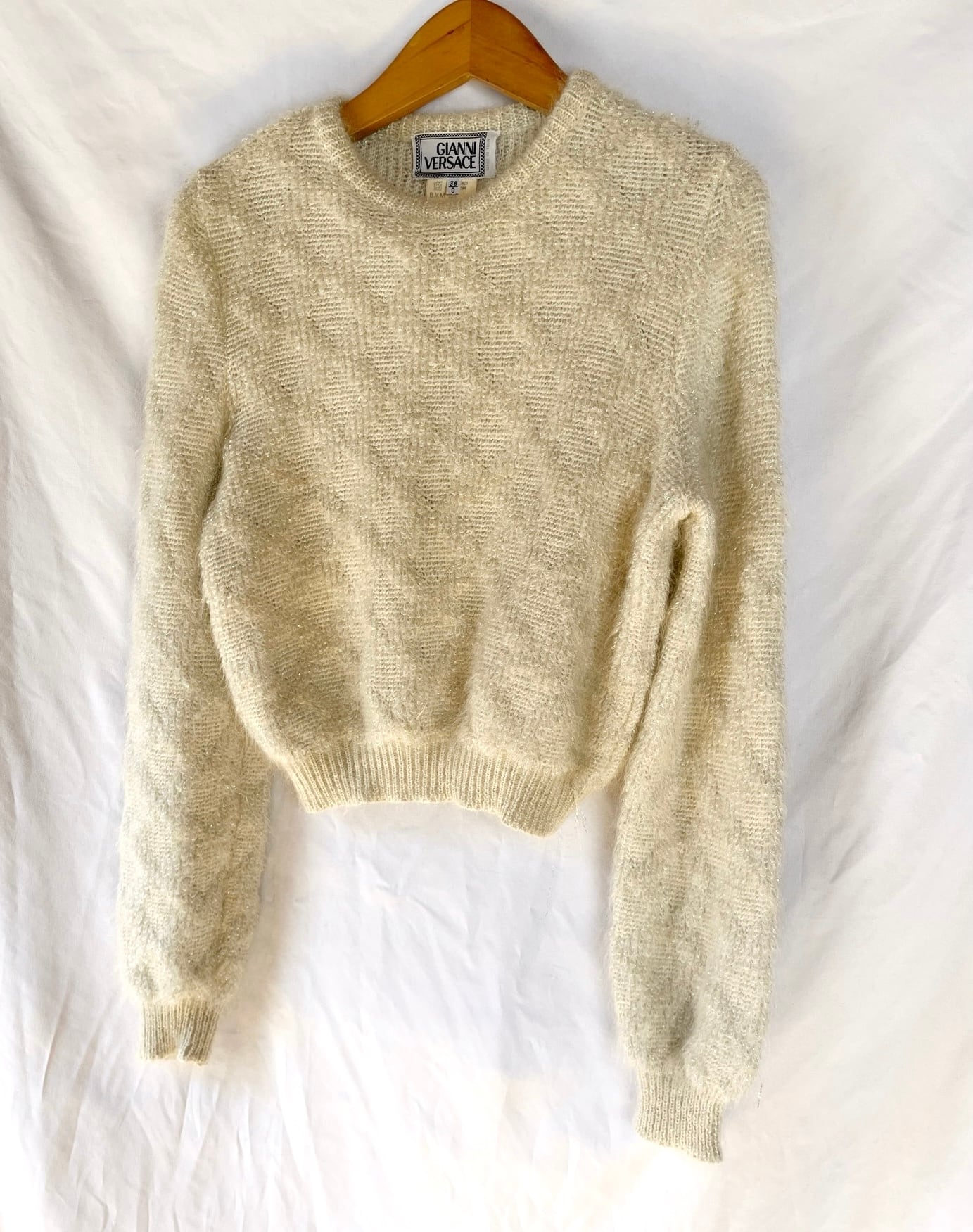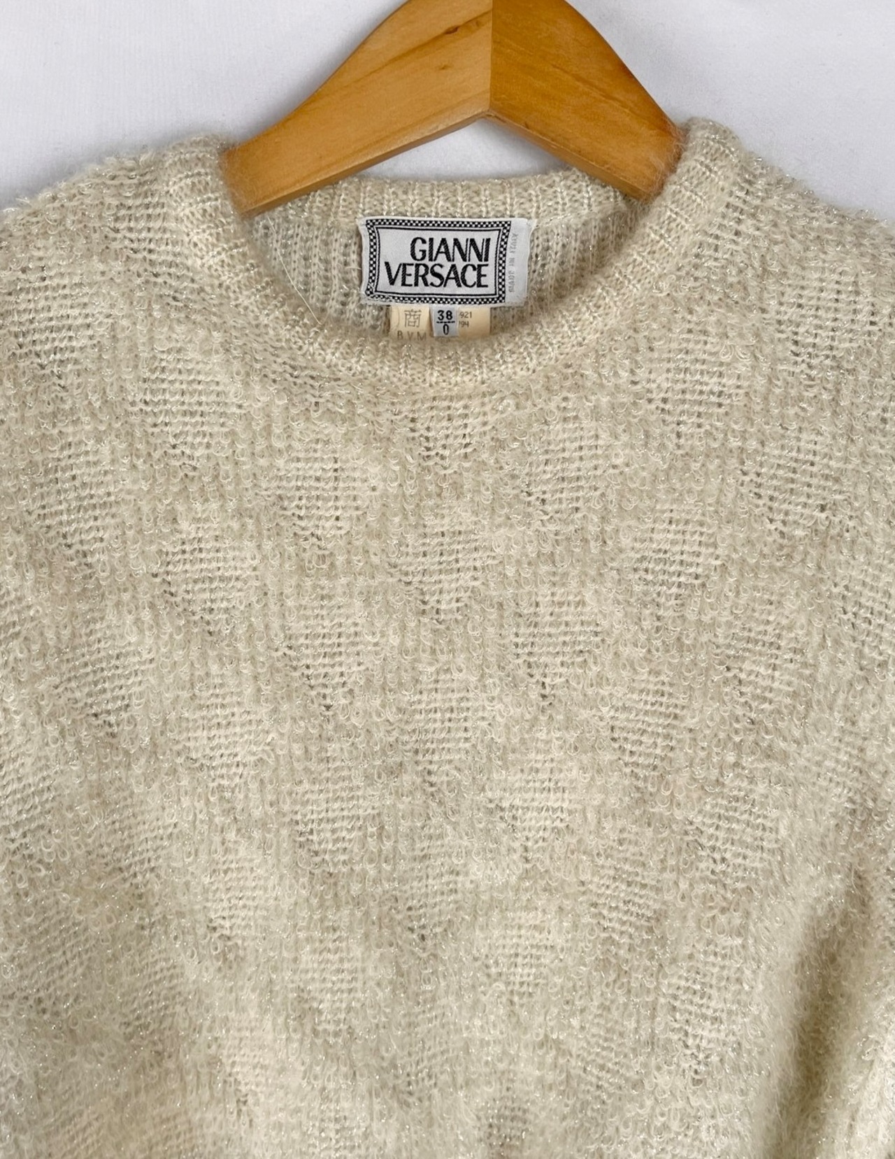 ホワイトベースにシルバーのグリッターがキラキラと輝くVERSACE 90's Vintageニット。