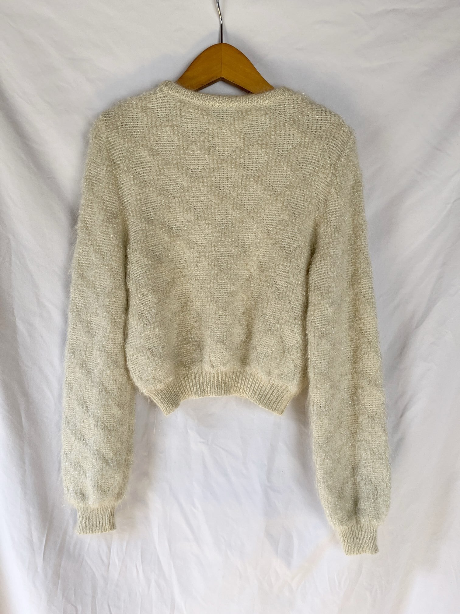 モヘアベースの生地は起毛感があり、あたたかな肌触り。うっすらとダイヤの凹凸があり、デザイン性も◎短めの丈感でおさまりの良い一枚です。
