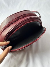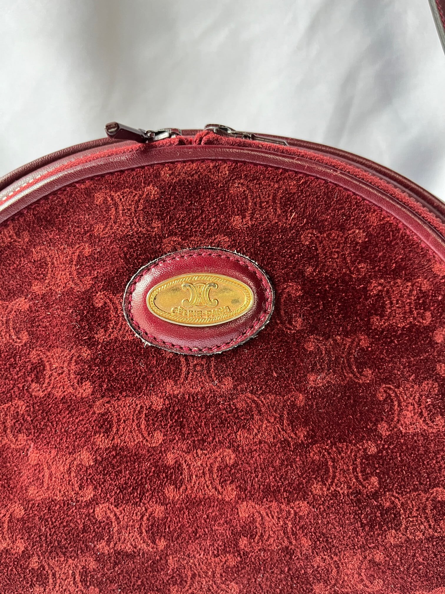 ボルドーのスエード地にマカダムロゴが 施されたCelinesいデザイン。