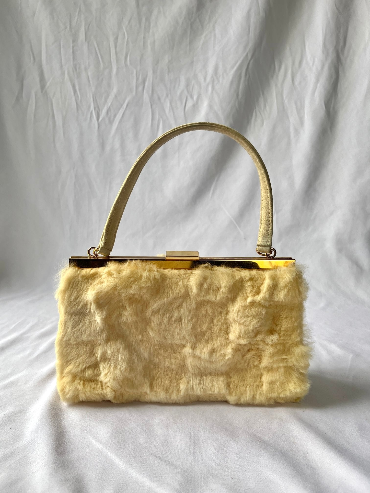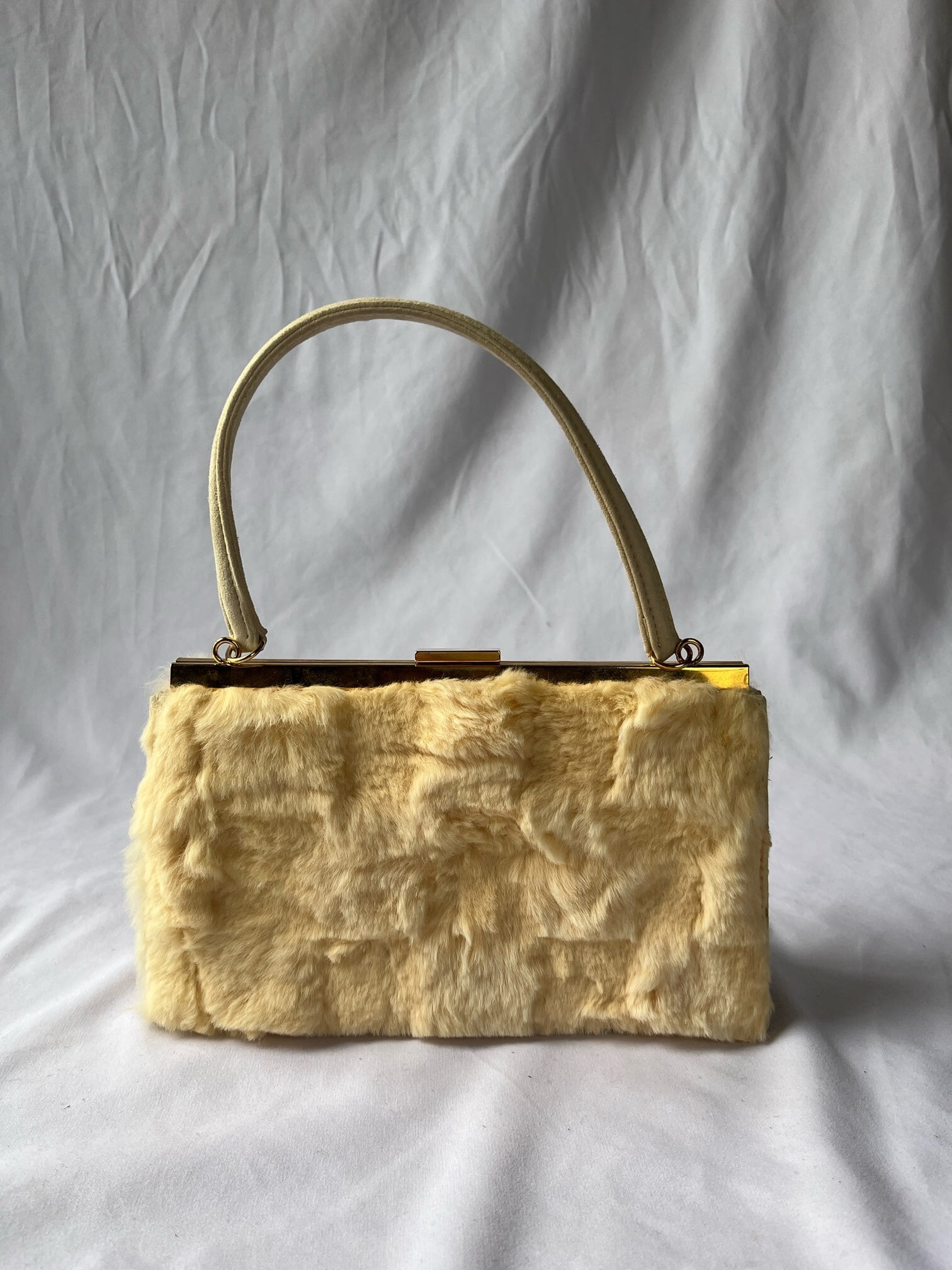 アイボリーのファーが柔らかい印象のItaly Vintage ハンドBag.