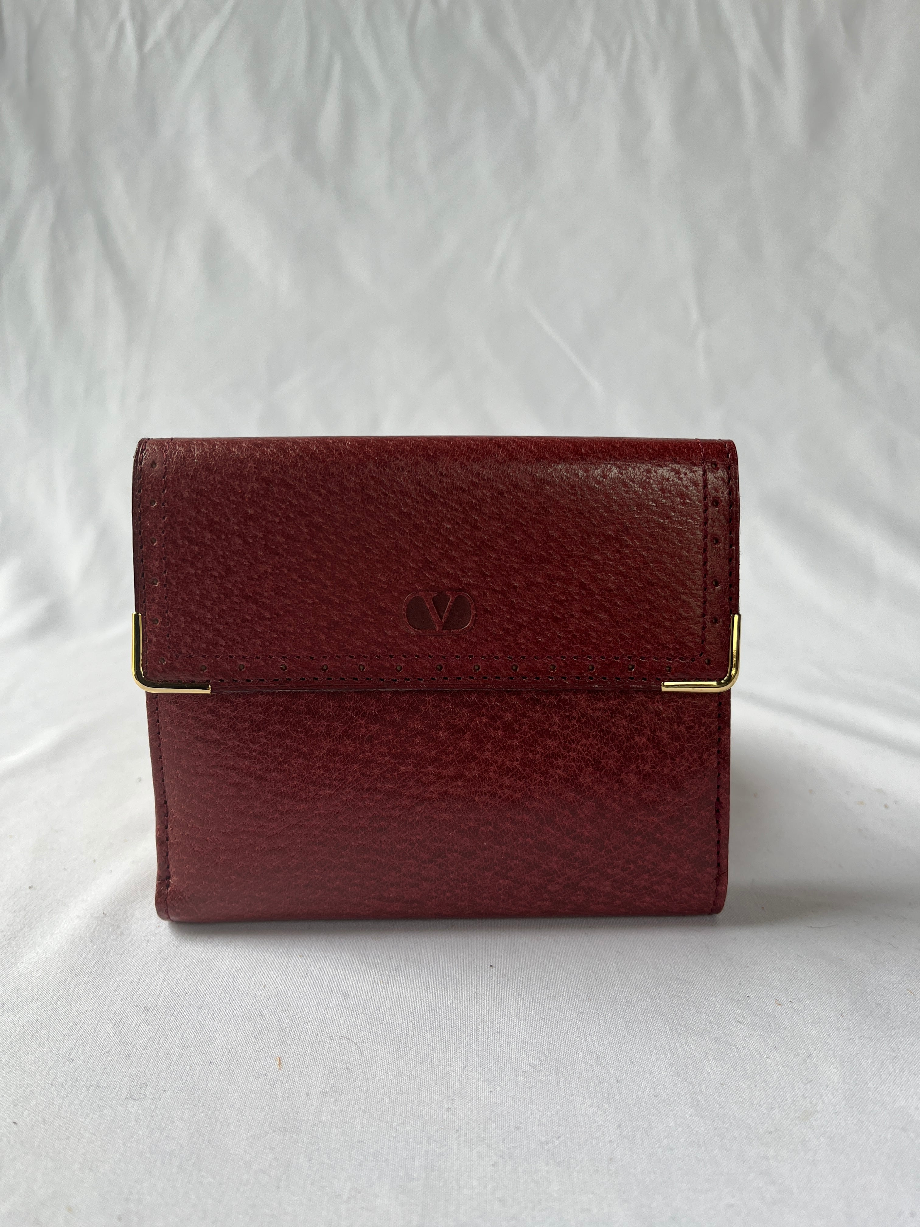 ボルドーの色味が気品のあるValentinoおりたたみ財布。Deadstock箱つき☆