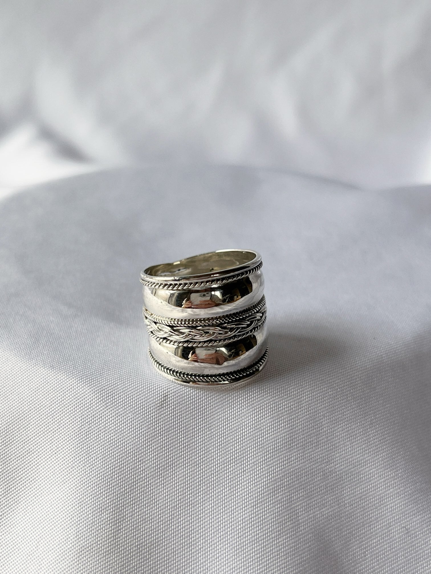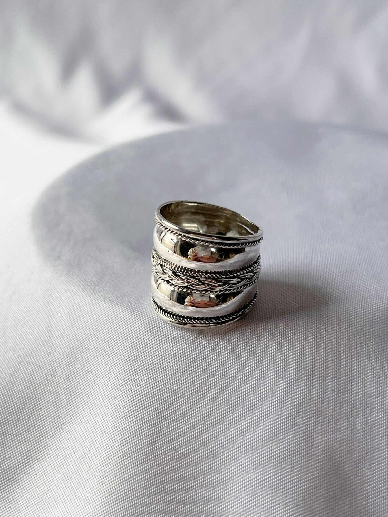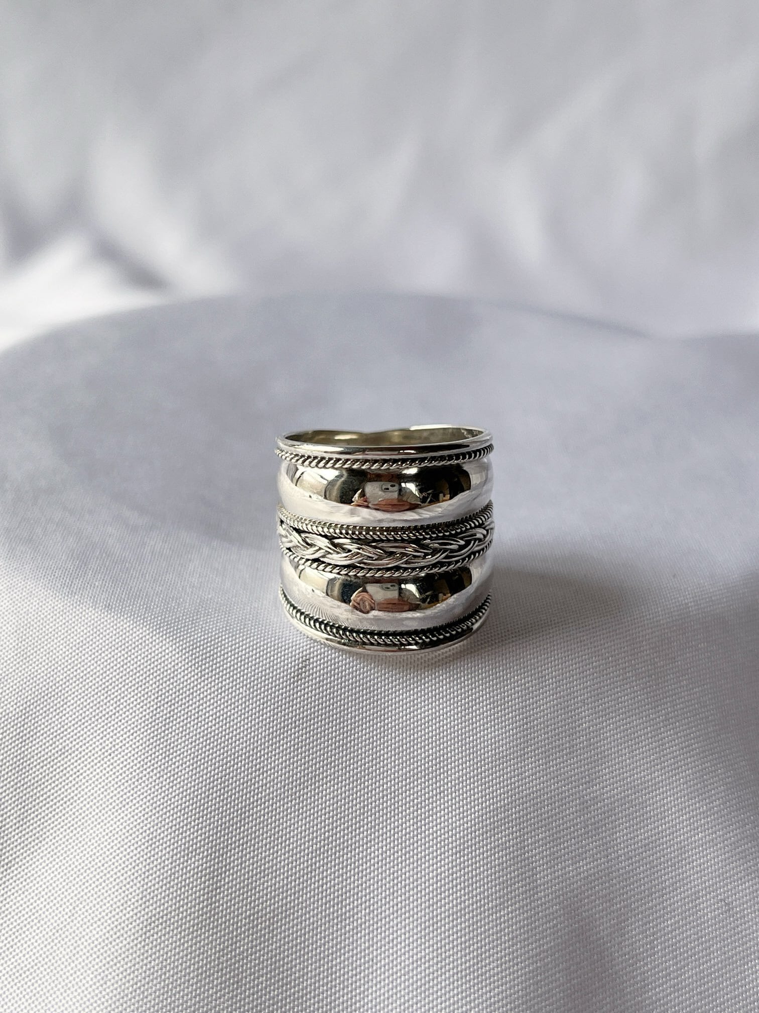 センターの三つ編みモチーフが細かく、芸術的なVintage Silverリング