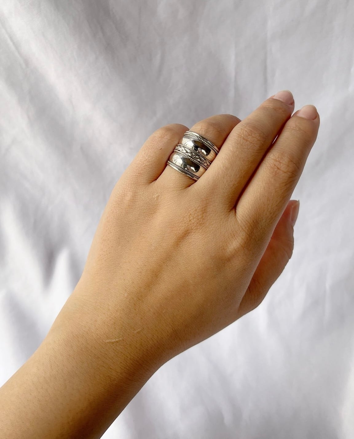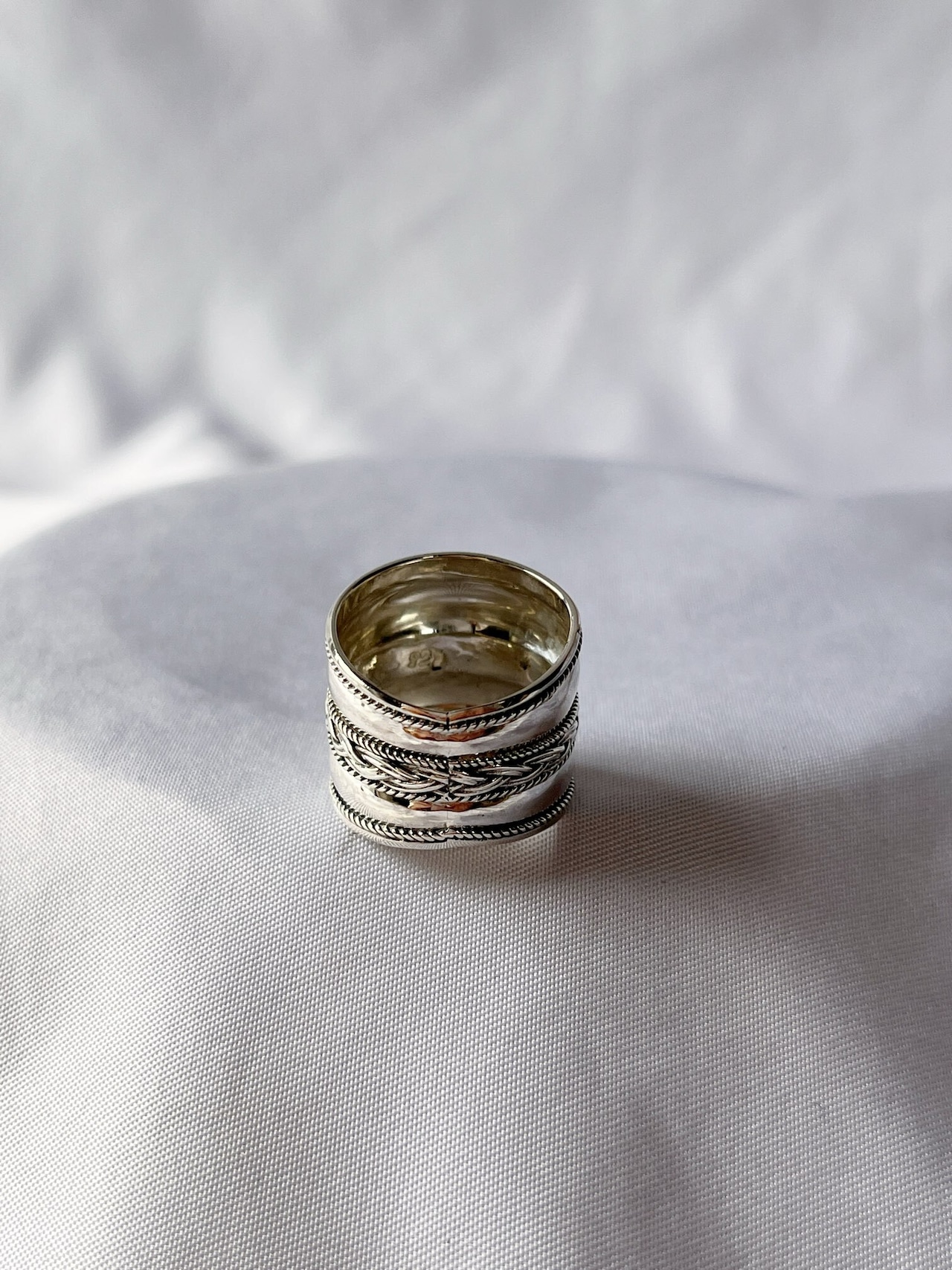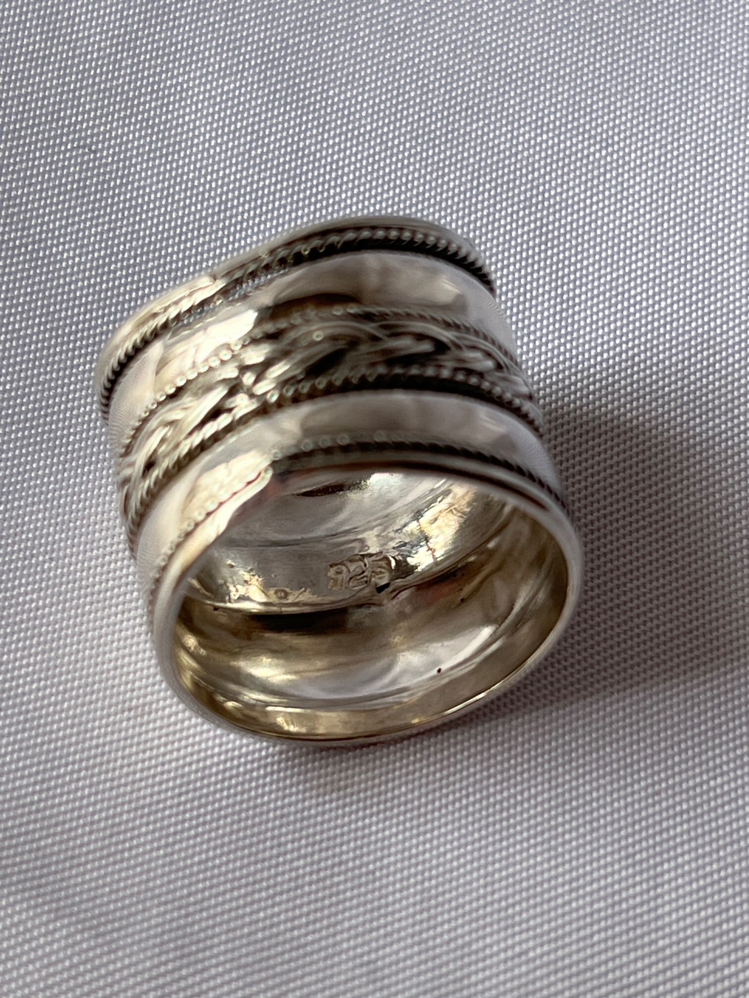 センターの三つ編みモチーフが細かく、芸術的なVintage Silverリング