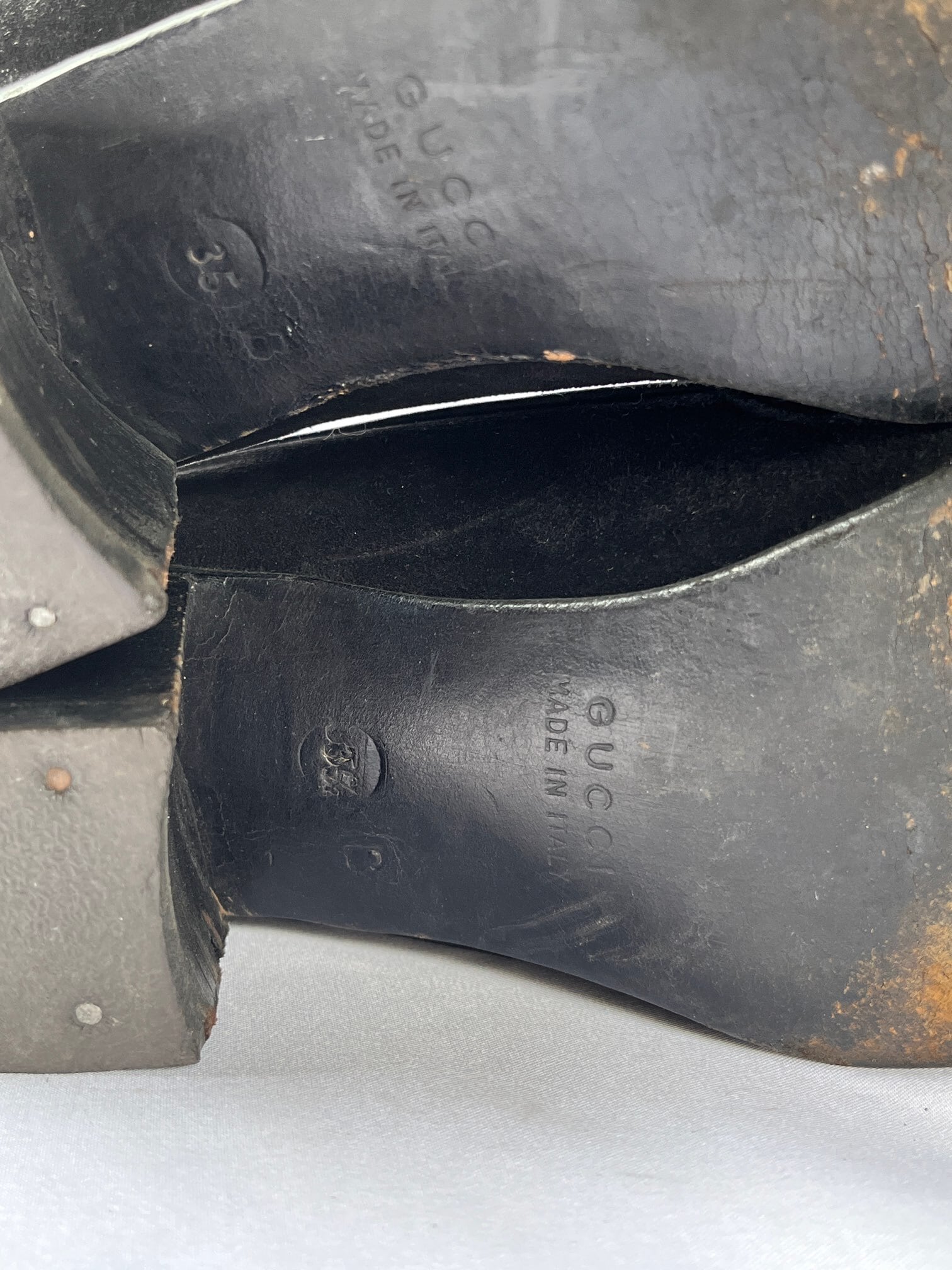 GUCCI 70's “Black Suede× Gold Chain” Pumps