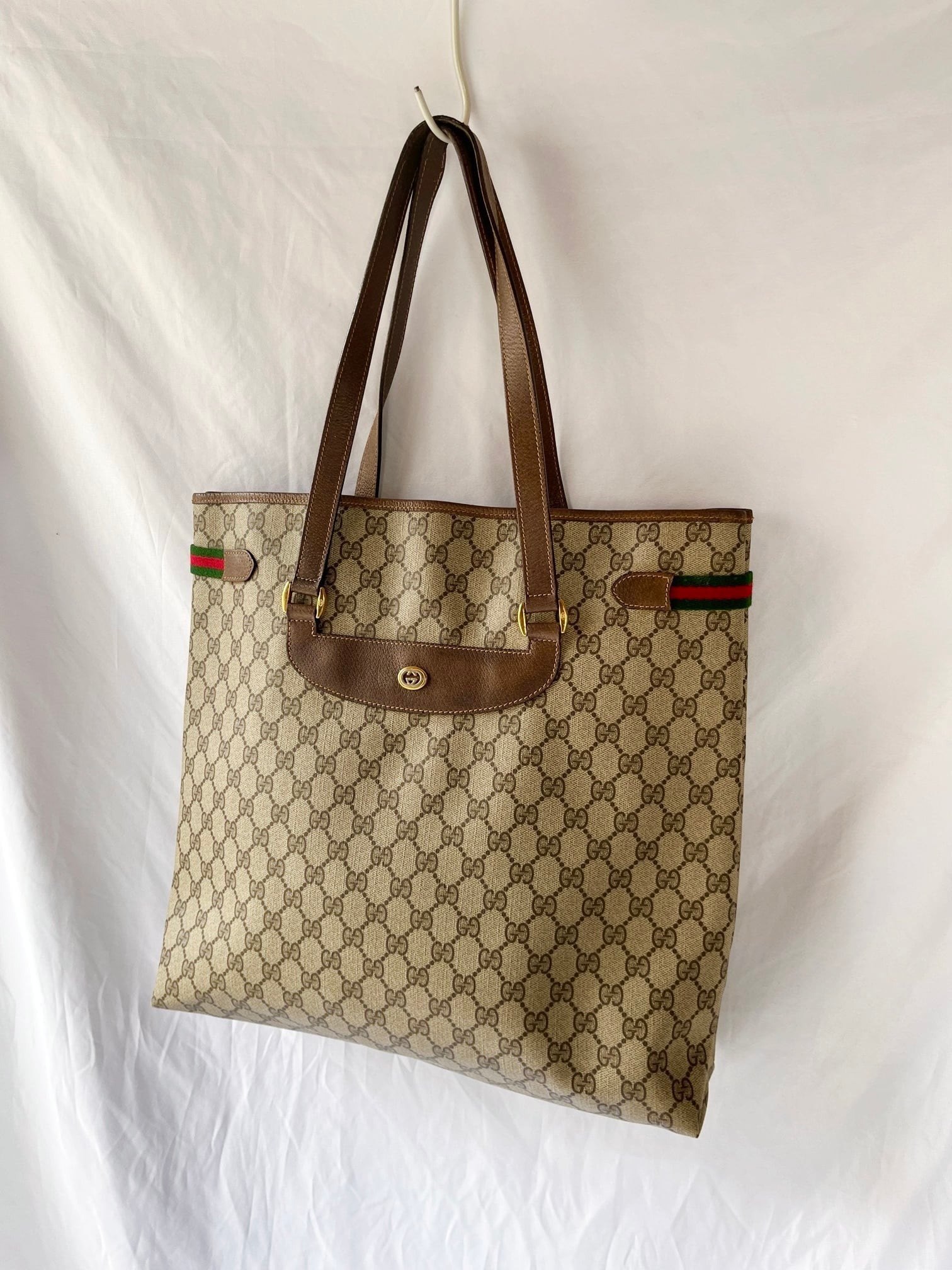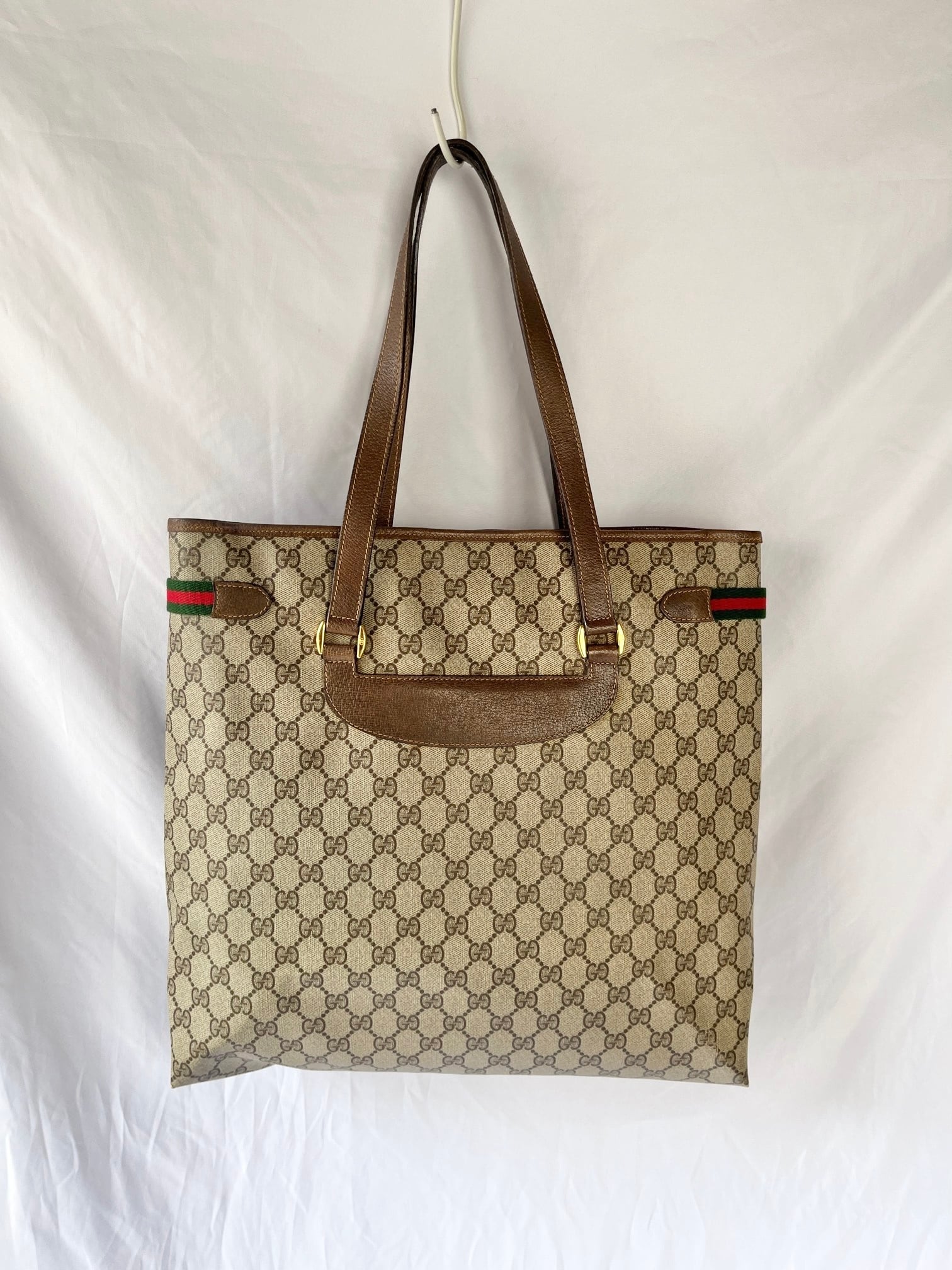GUCCI 70's “GG Logo” Tote Bag -Leather Handle-