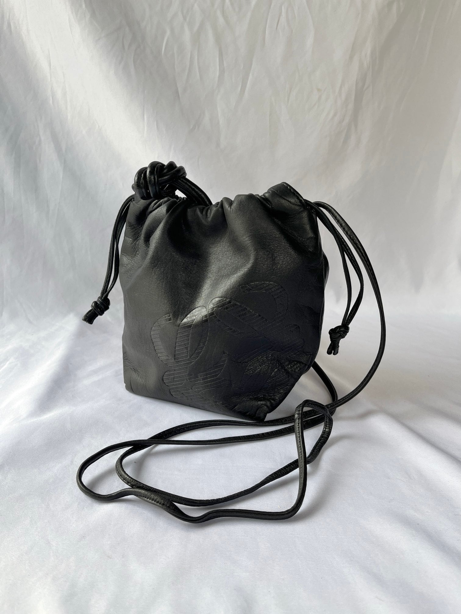 LOEWE“Black Leather” Drawstring Shoulder Bag