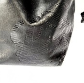 滑らかで肌触りの良いレザーがさすがLOEWEのハイクオリティ。エンボスのアナグラムがさりげないアクセントに効いてます★ ミニサイズながらも巾着型なのである程度容量も入ります。