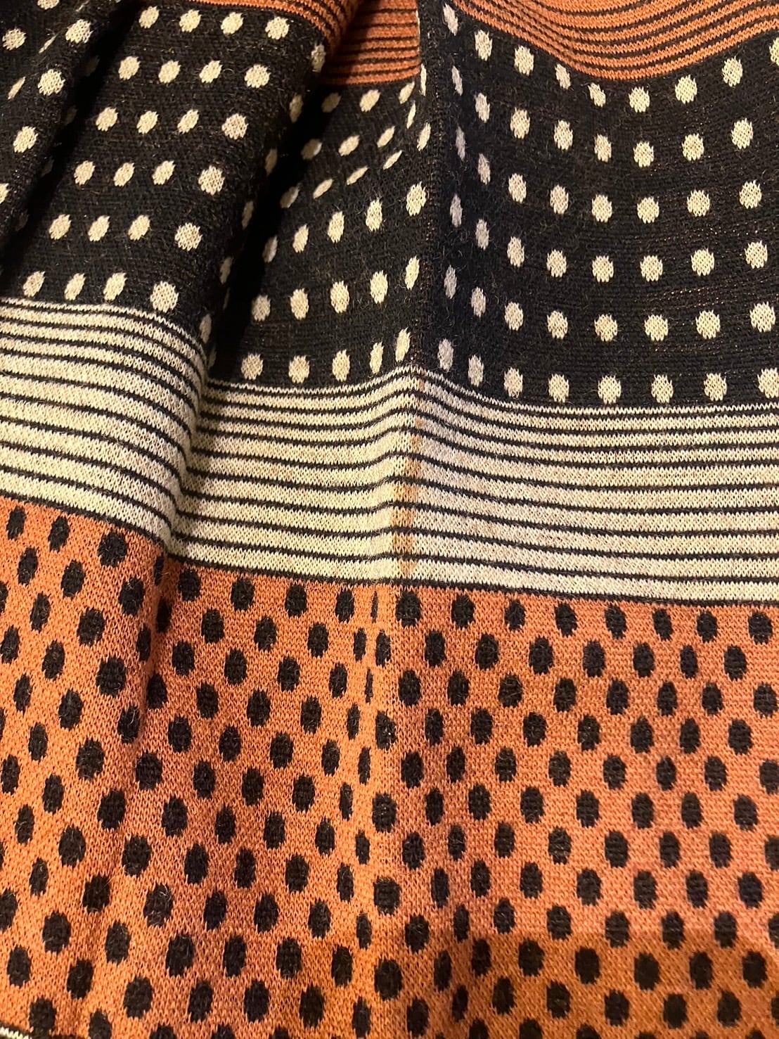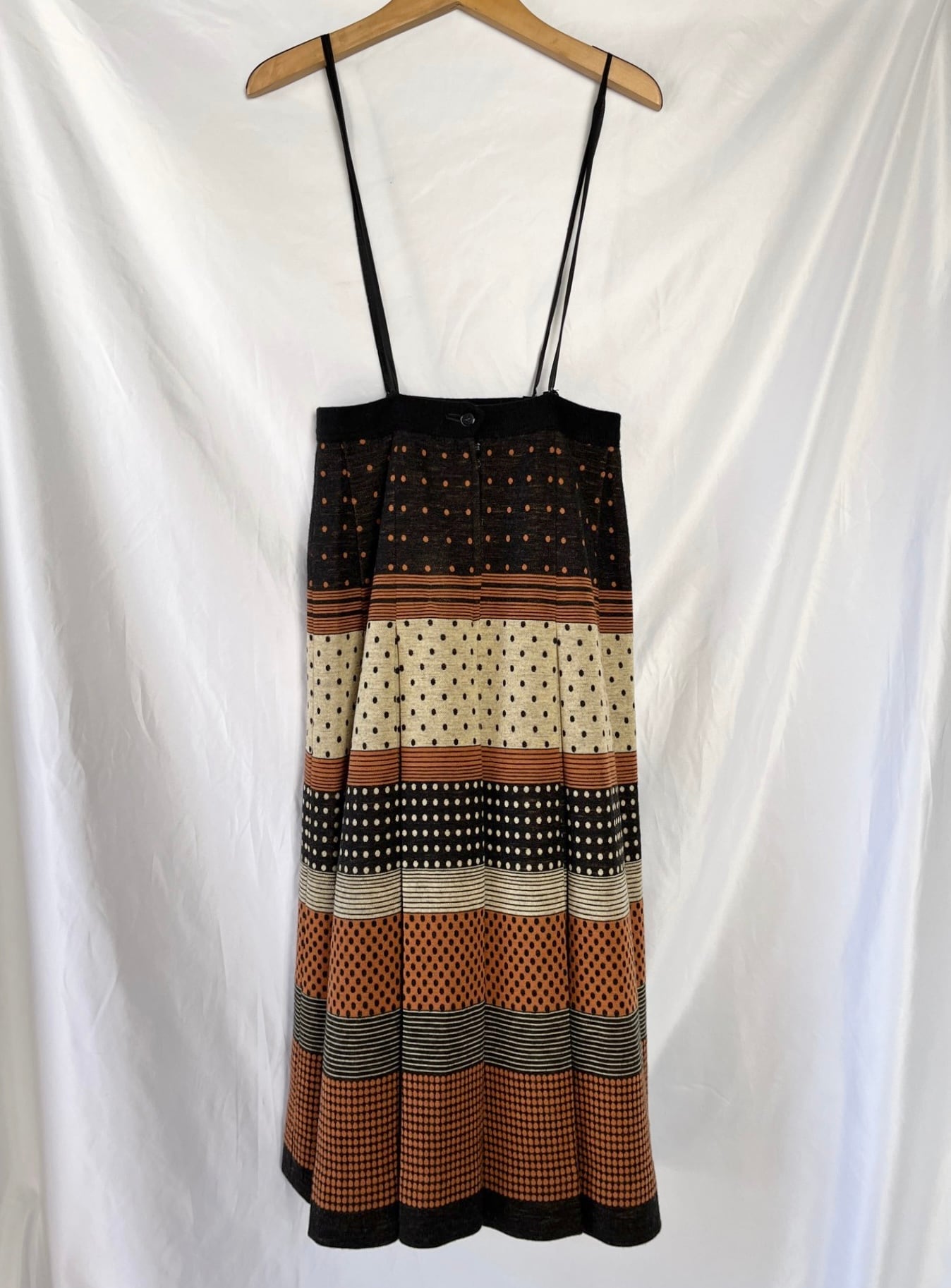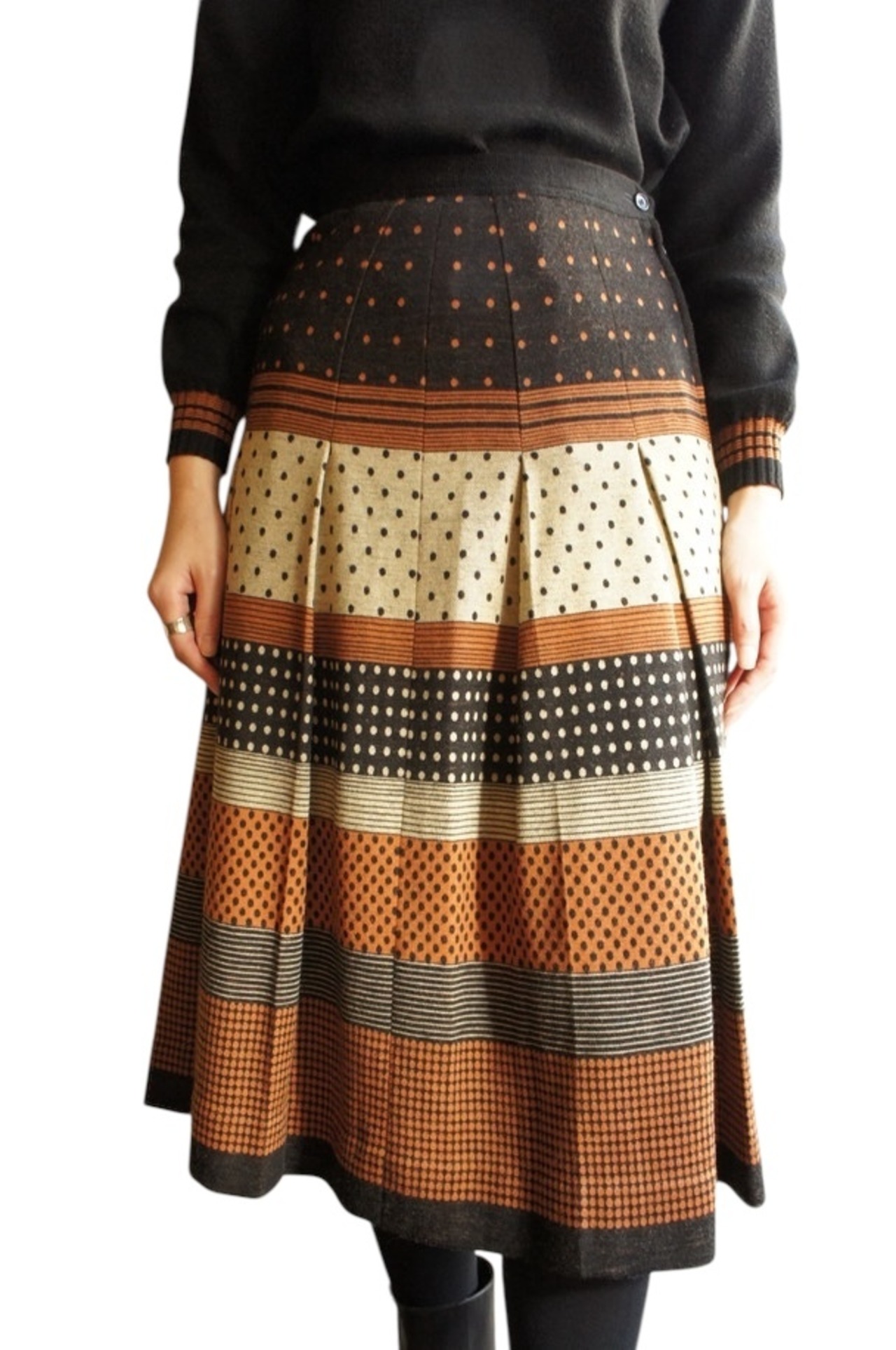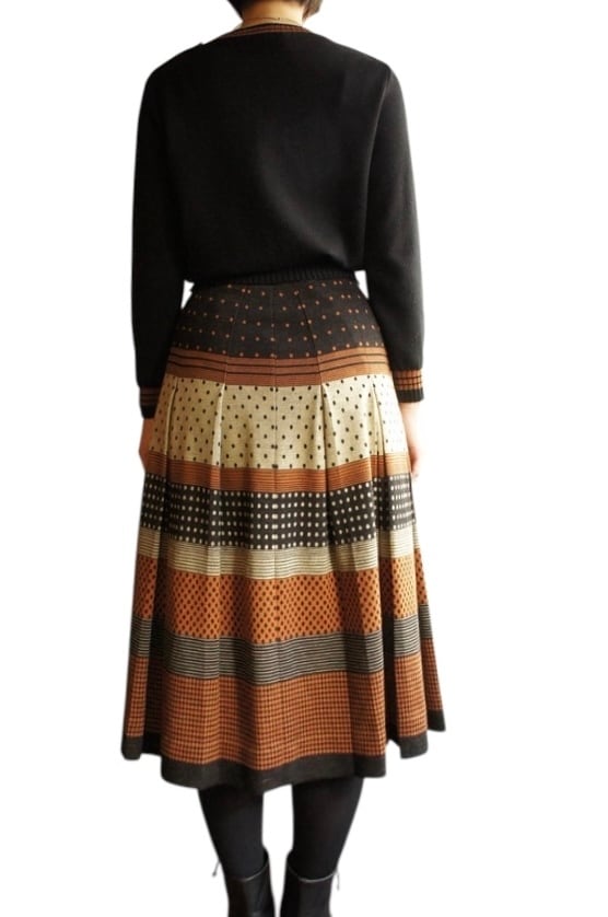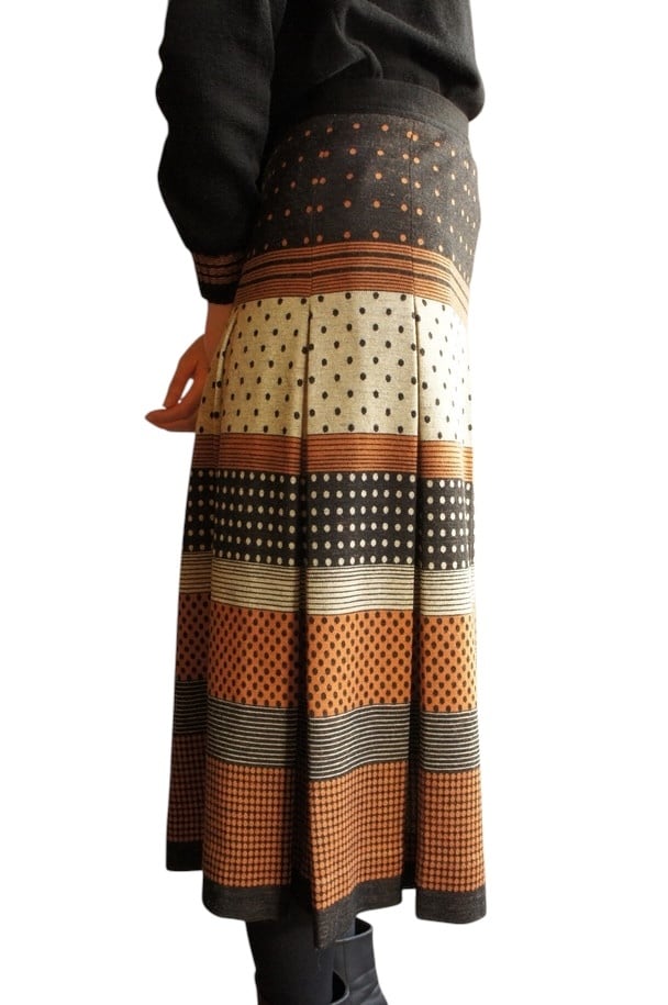 スカートはボーダーやドットの細かい絵柄が施されていて思わず目を惹くデザイン。
