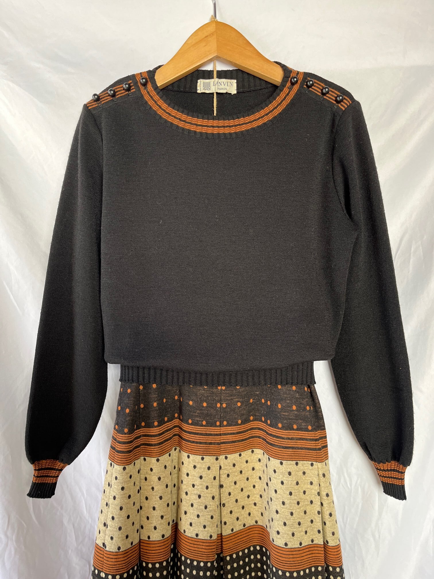 ブラックとブラウンの落ち着いたトーンが魅力的なLANVIN 80's ウールニットの暖かなSet up.