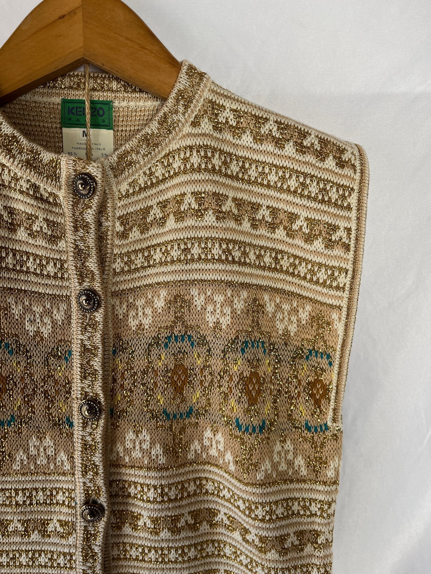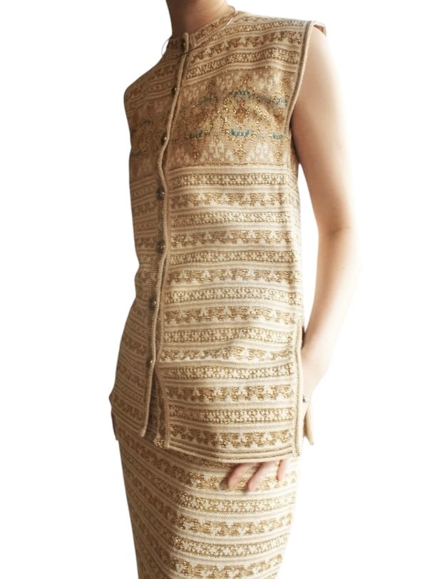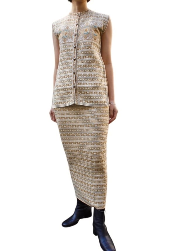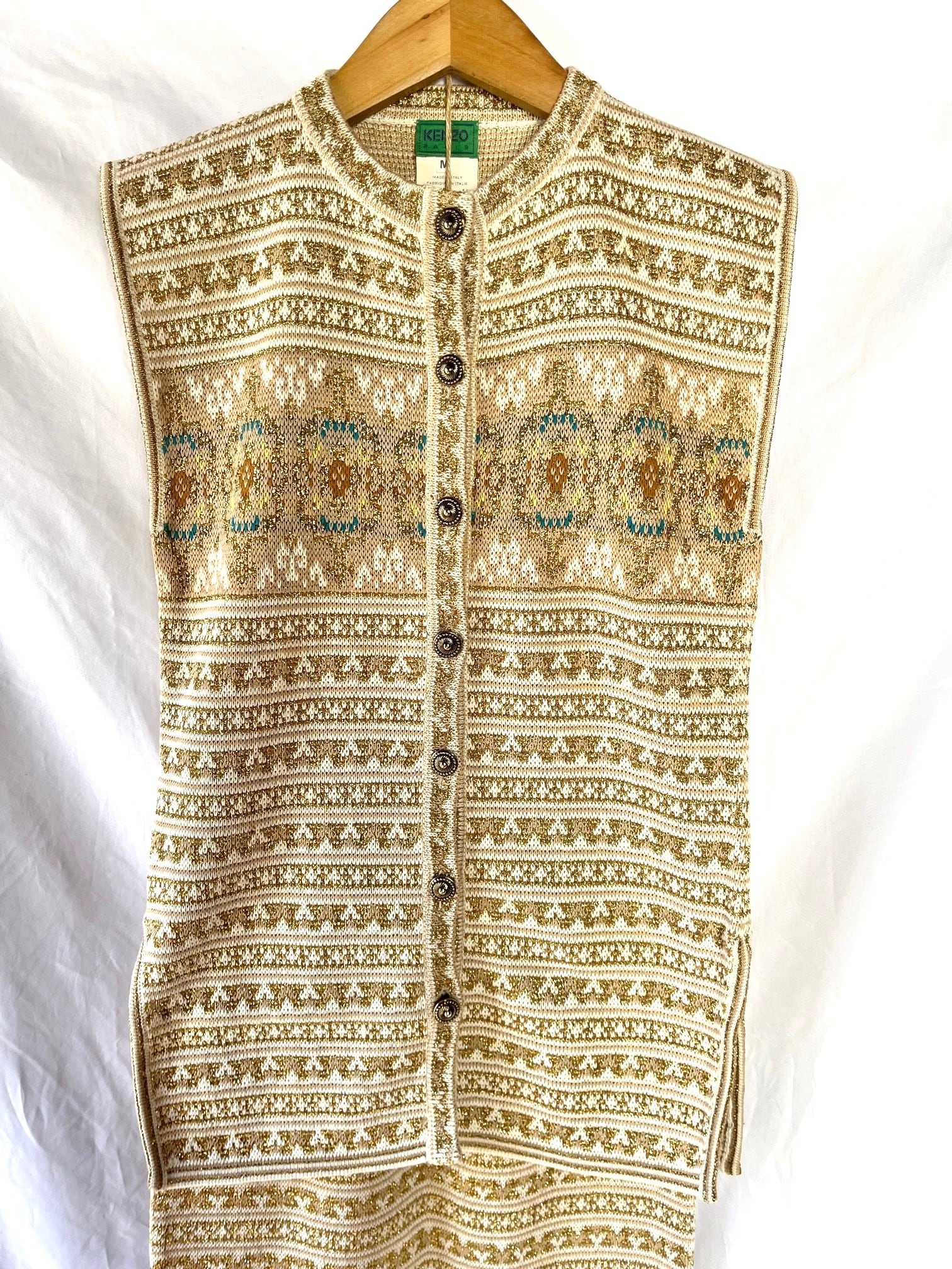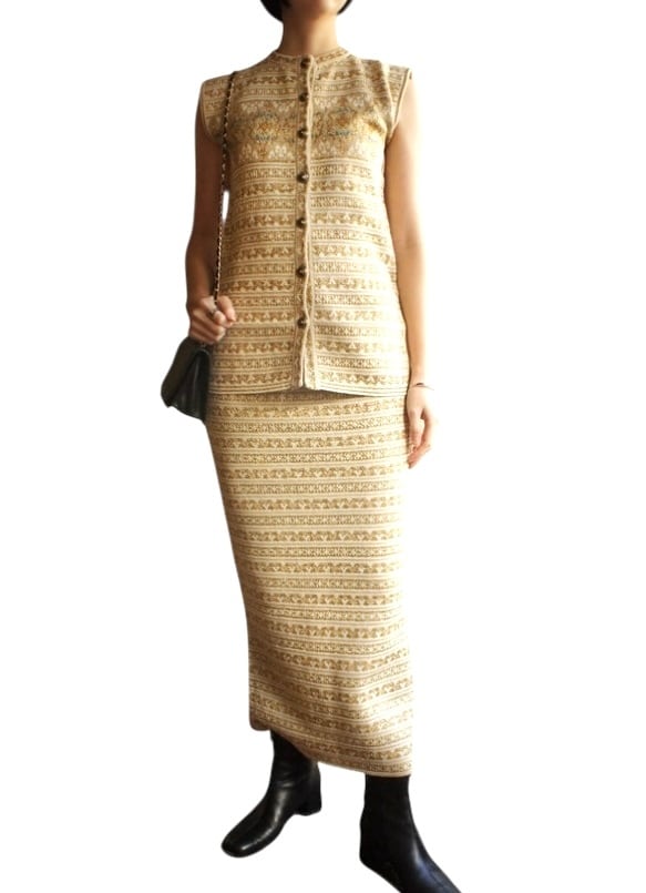 KENZO 80-90’s Tylor Tape Pattern Gold Glitter Knit Set up
