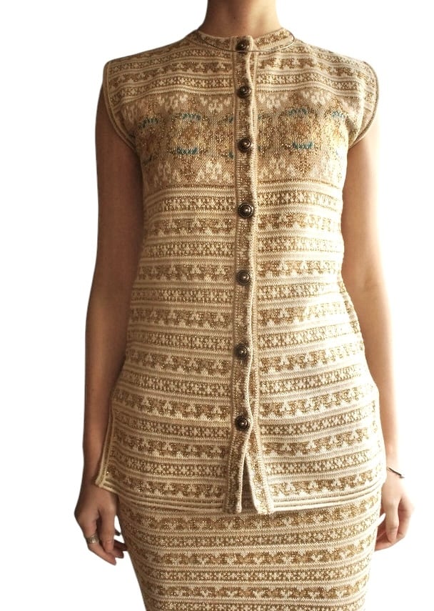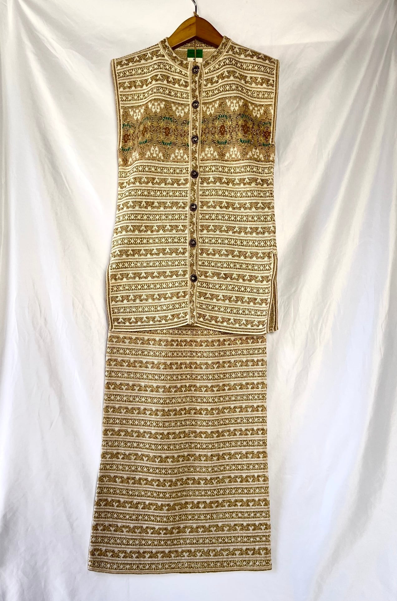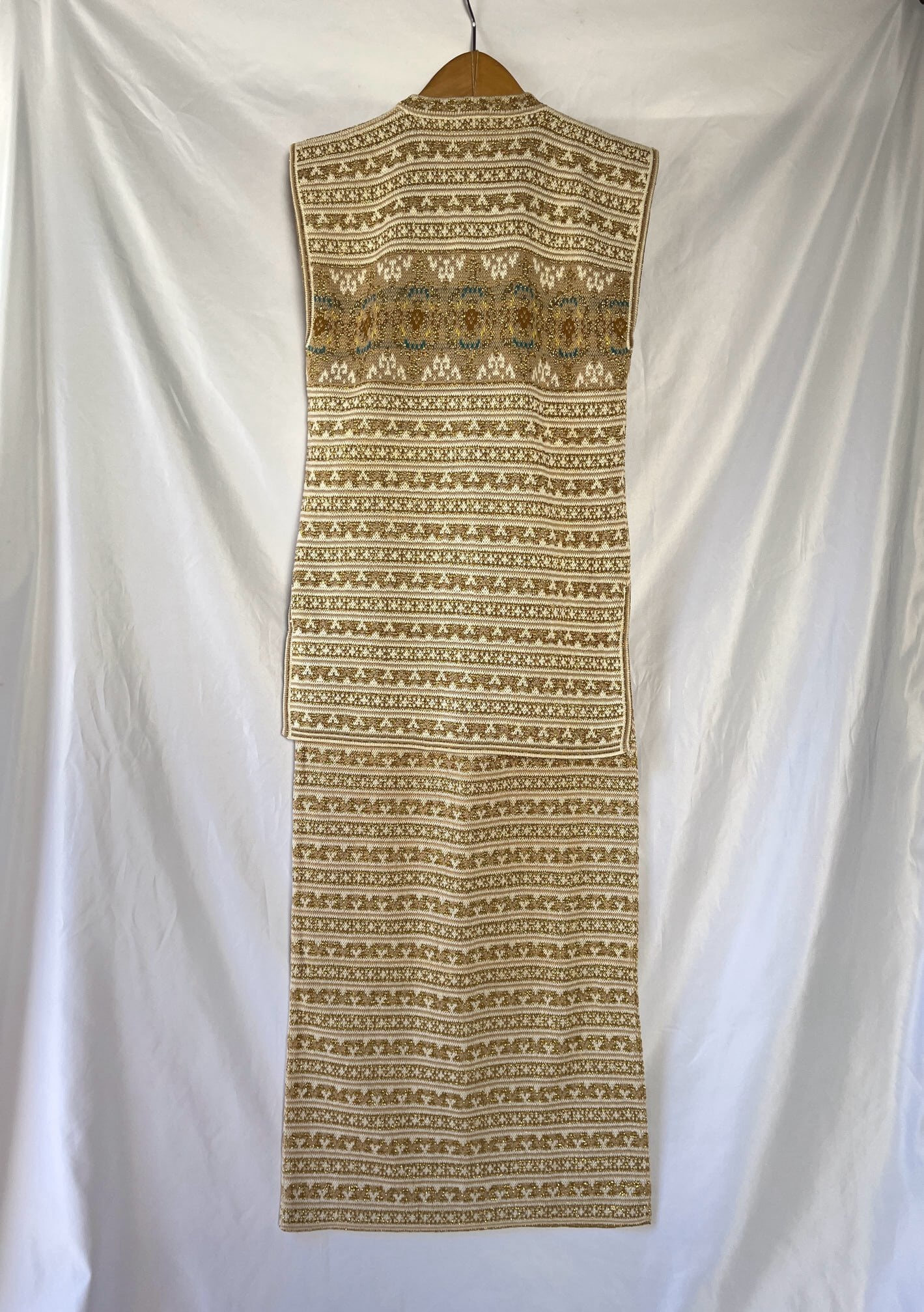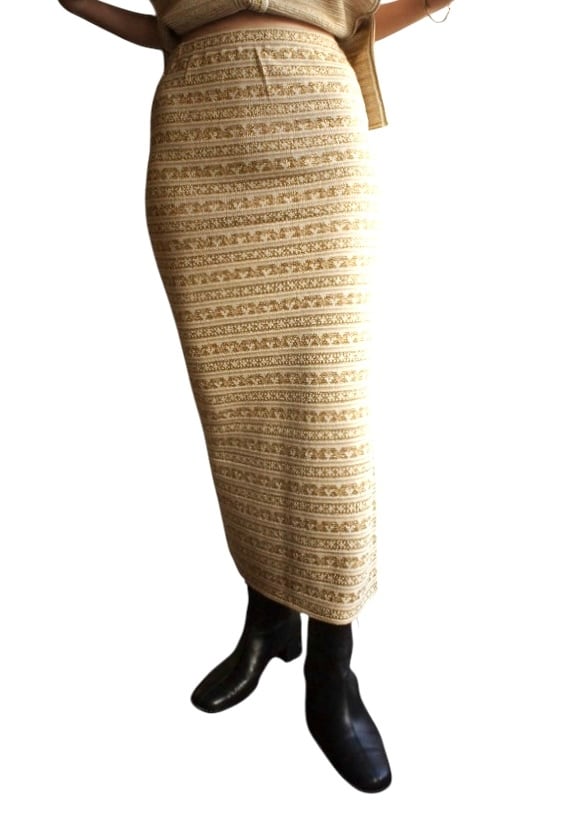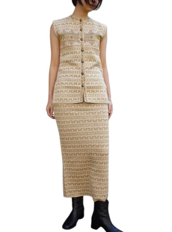 KENZO 80-90’s Tylor Tape Pattern Gold Glitter Knit Set up