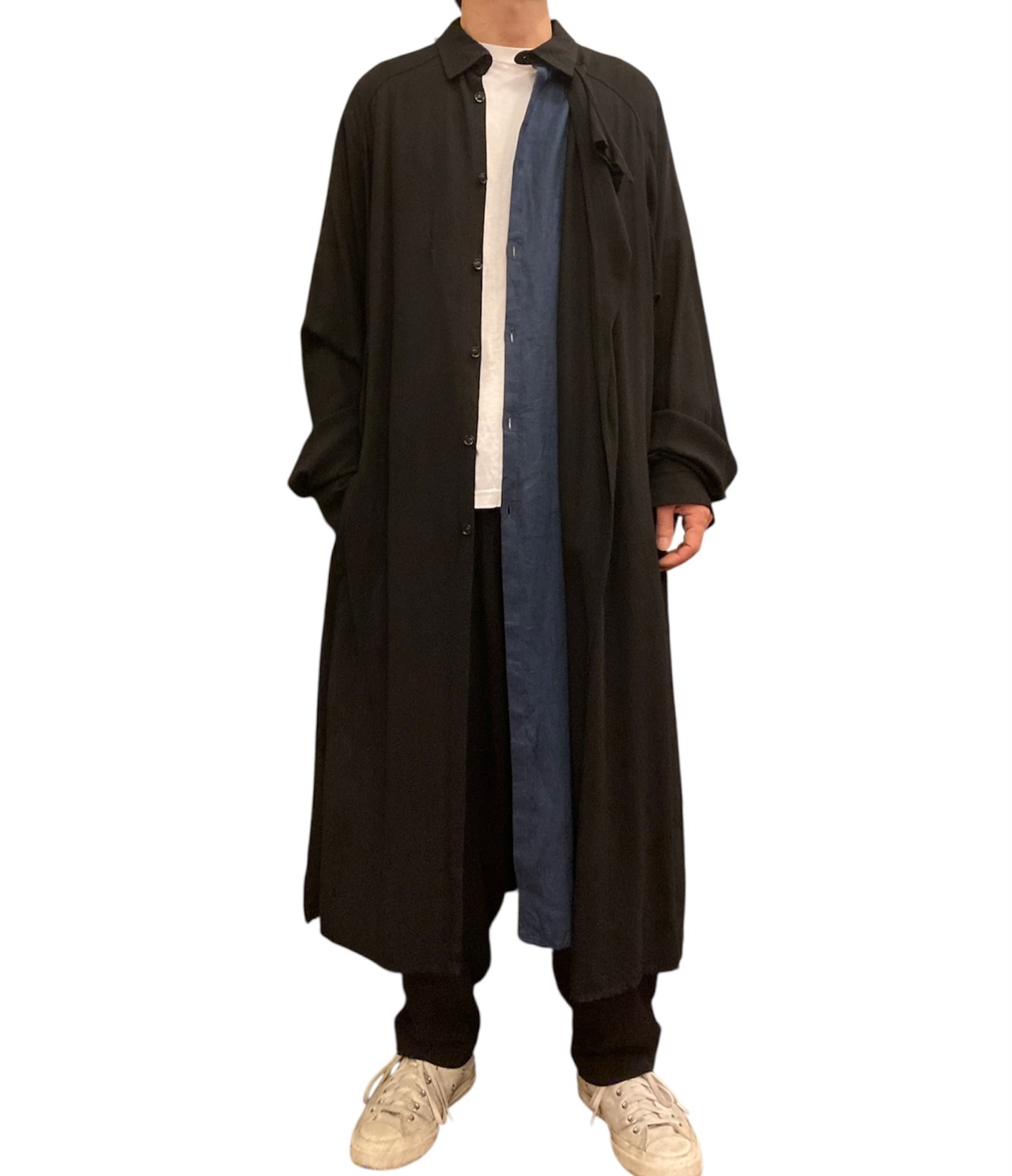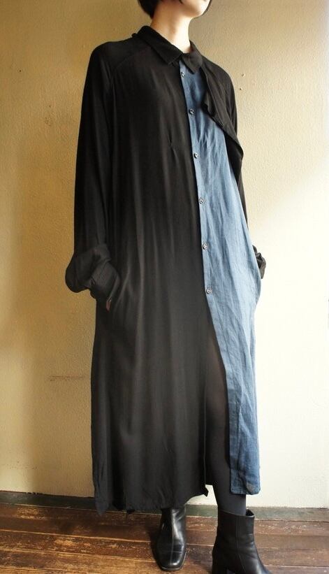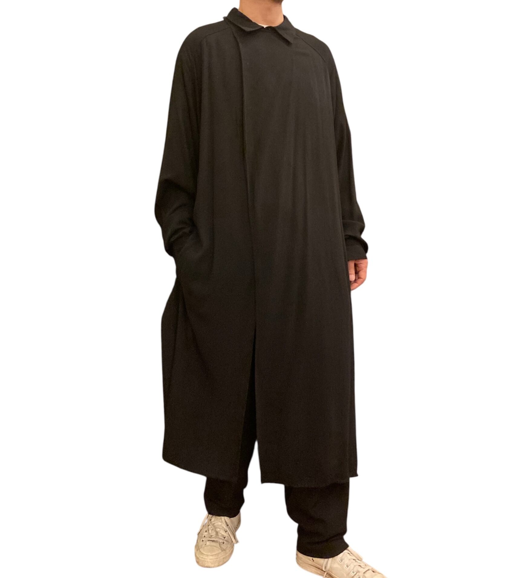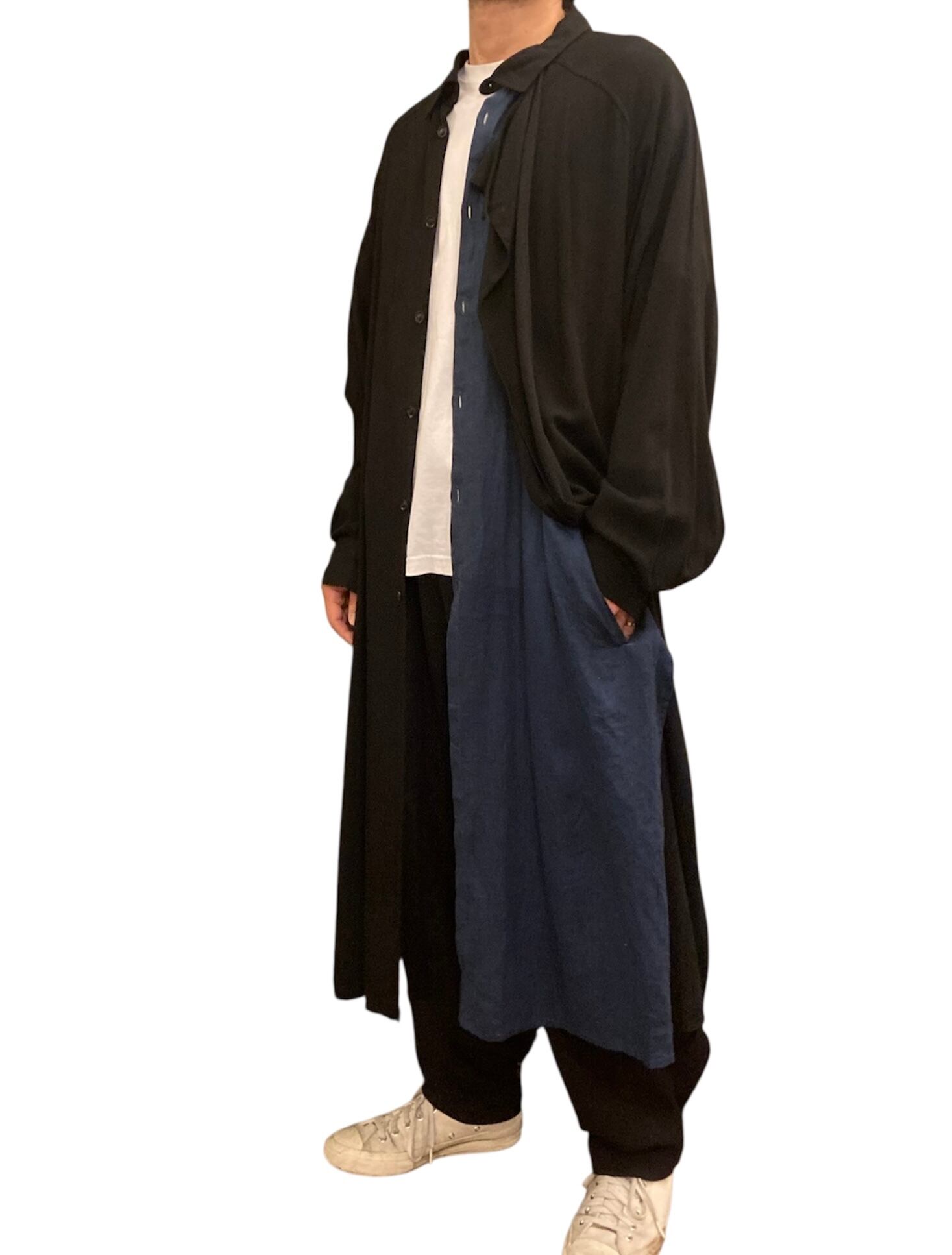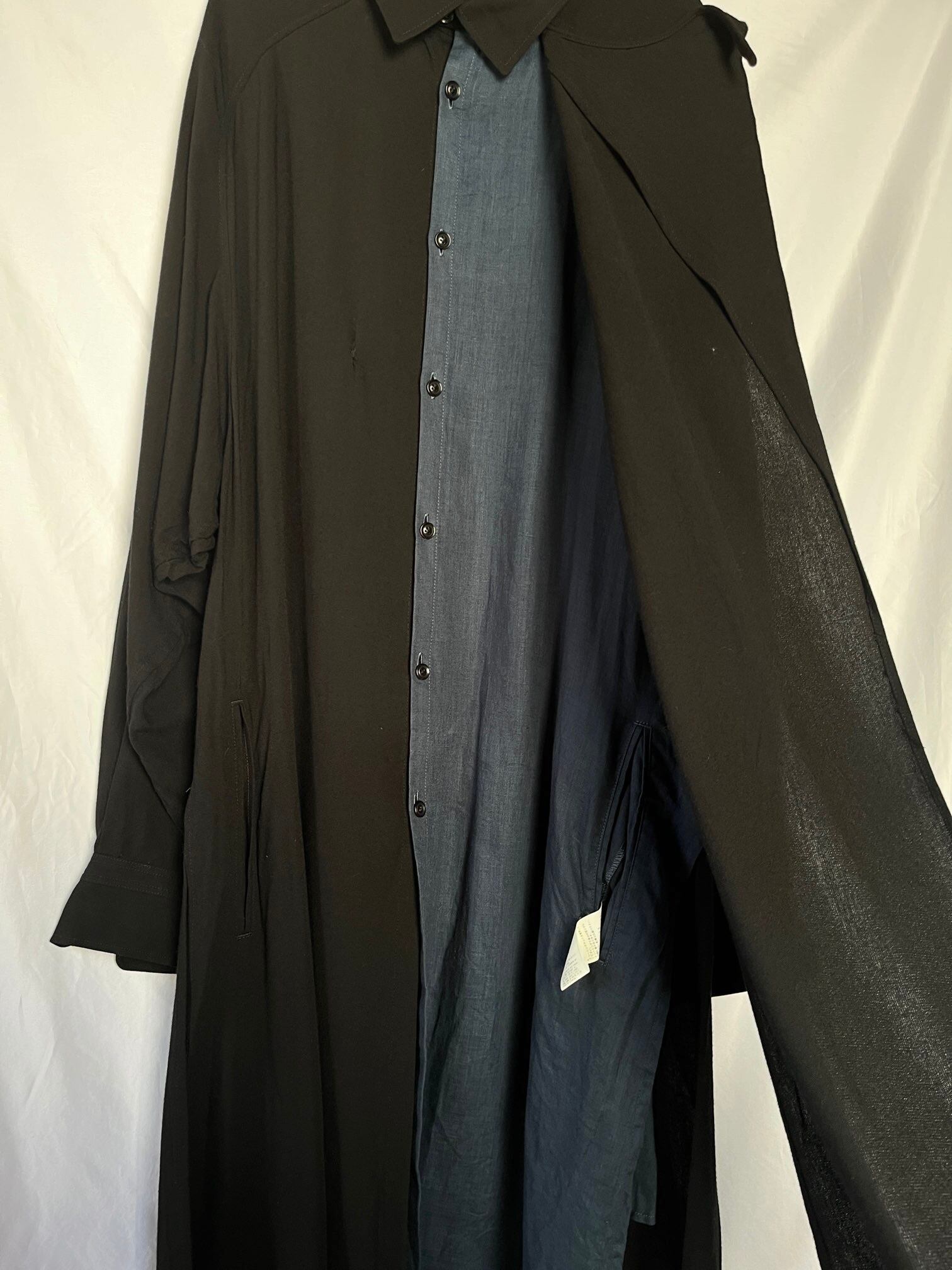 レイヤードの施しがユニークなYohji Yamamotoのロングコート。2017年製。