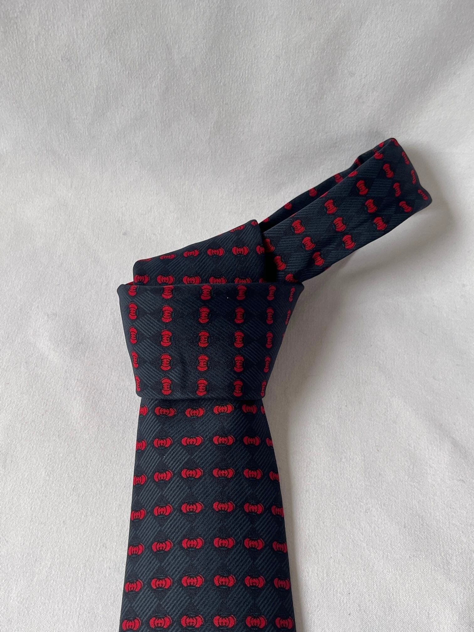 ネイビーベースに赤いGGロゴが目をひくGUCCI Vintageネクタイ。