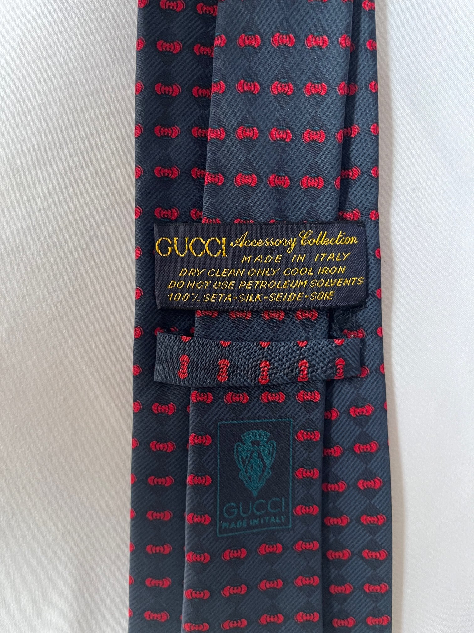 GUCCI 70-80's "GG Logo" Navy×Red Tie