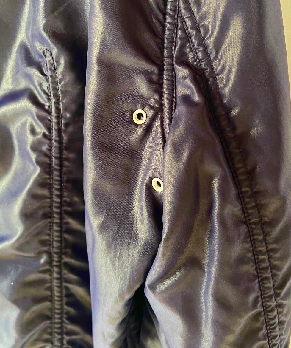 *襟袖裏変色あり(写真参照)ますが、全体的にキレイな状態です。スナップ凹み3箇所交換あり。