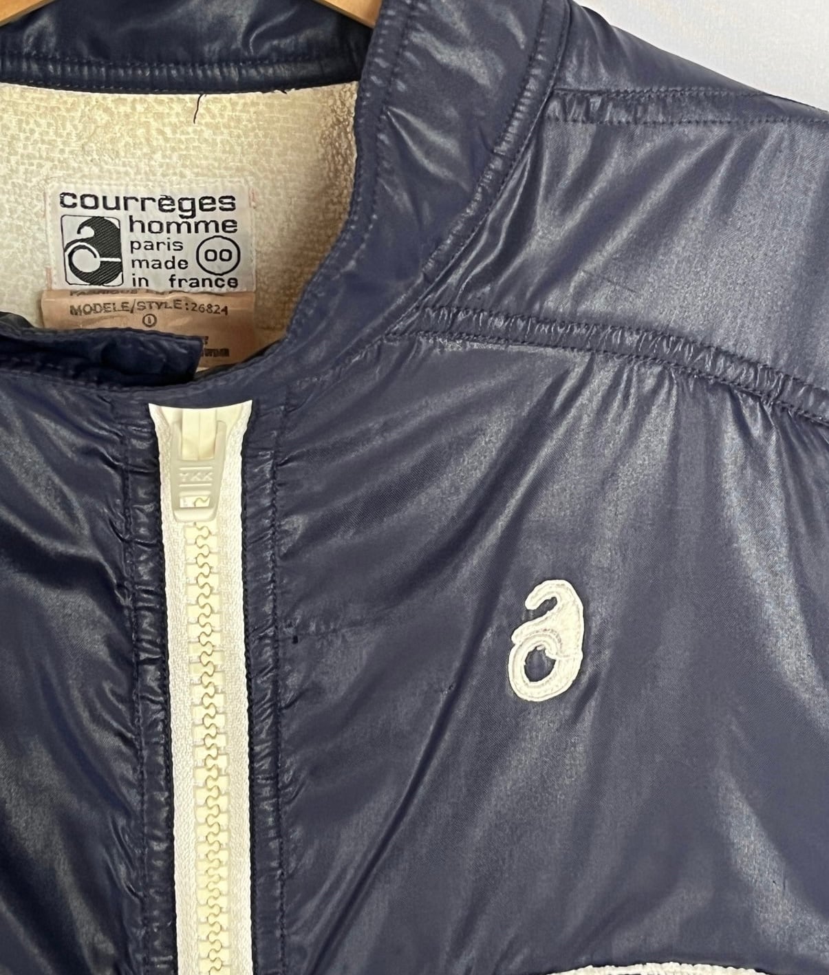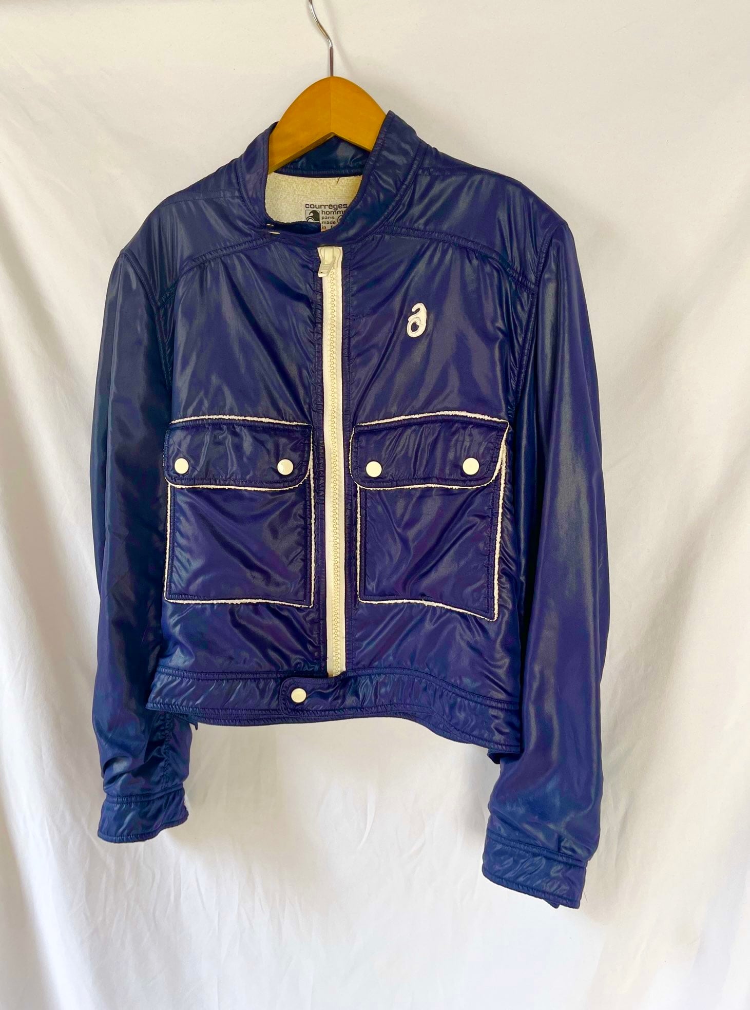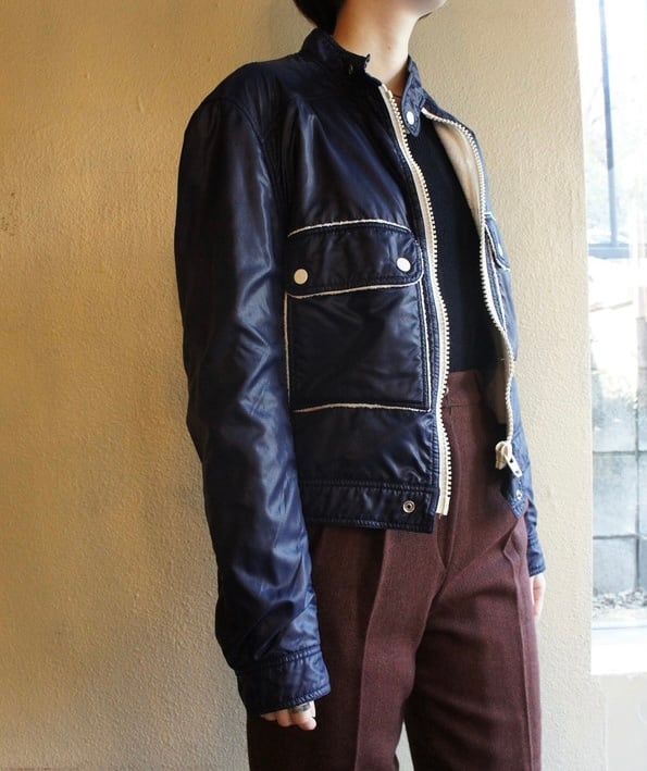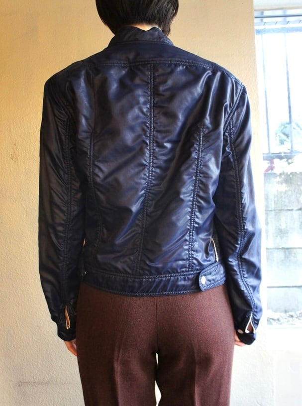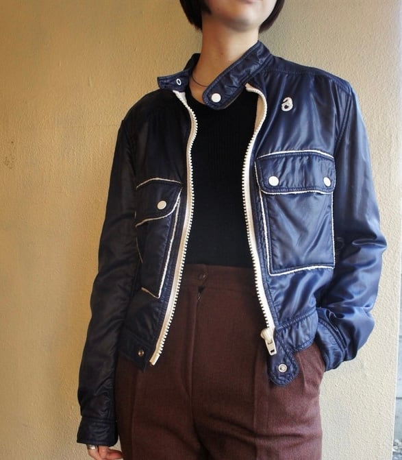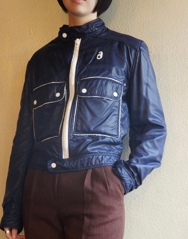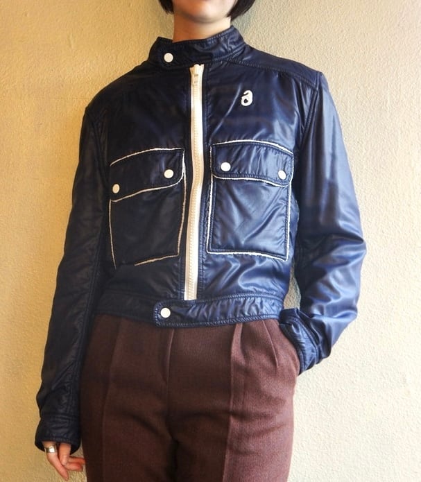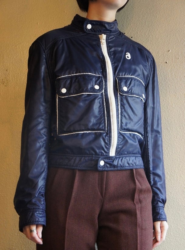ネイビーのナイロントセに白のパイピングがさわやかな クレージュ 70's Vintage ジャケット, レアな逸品!