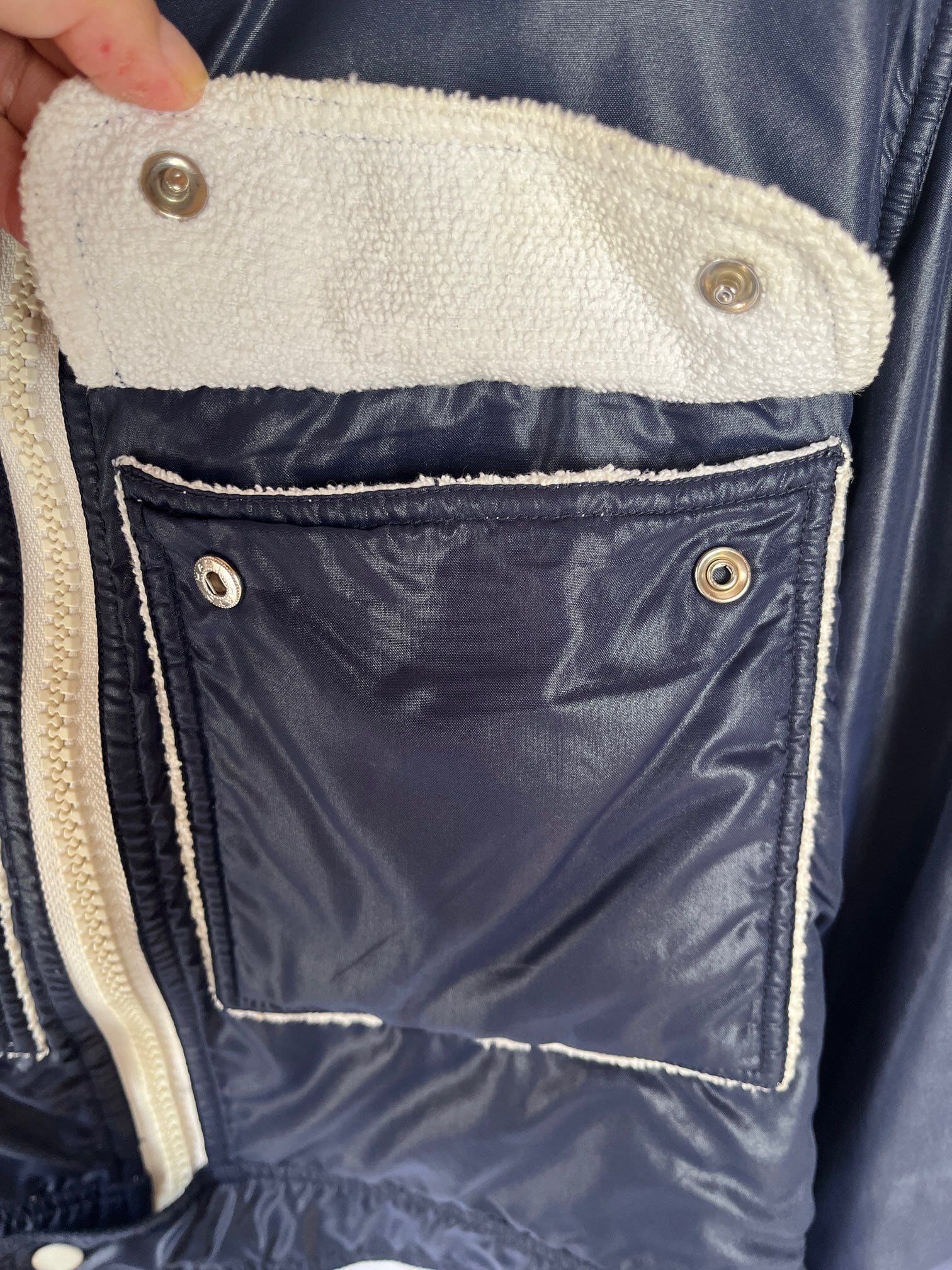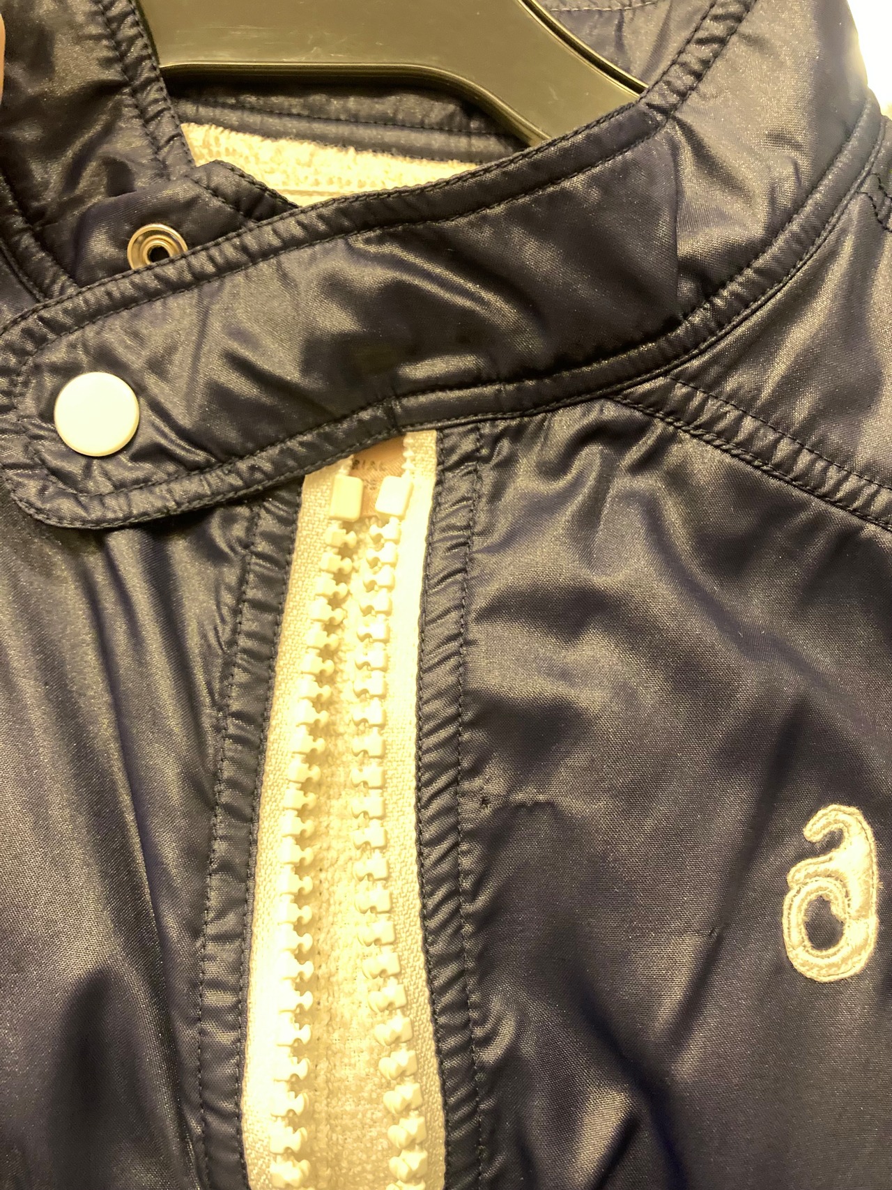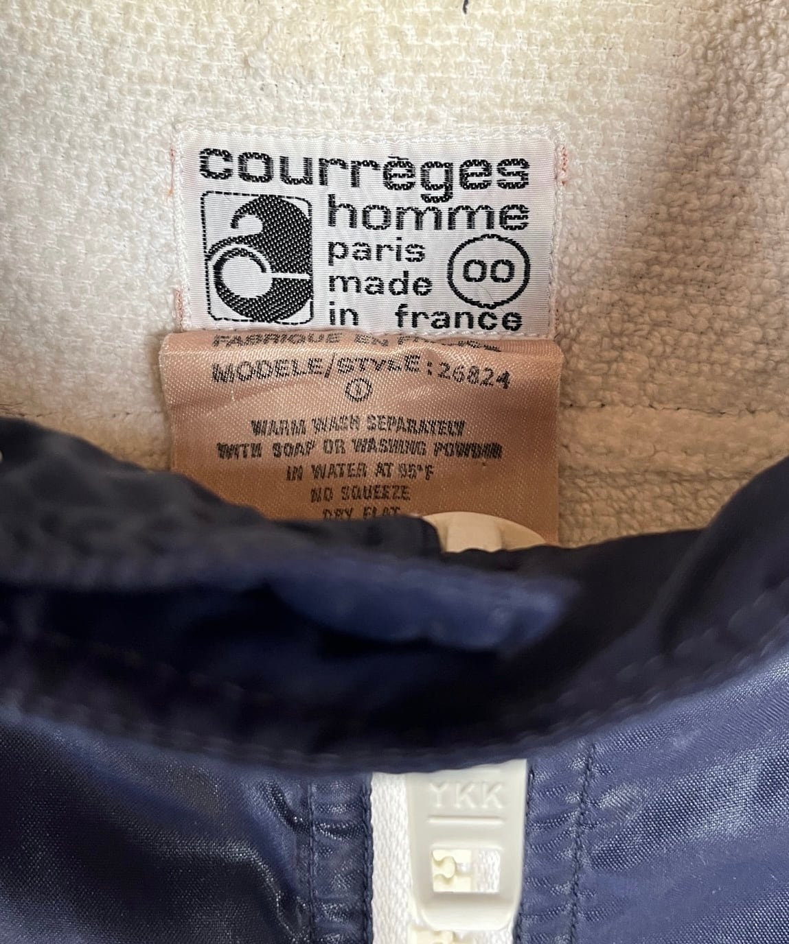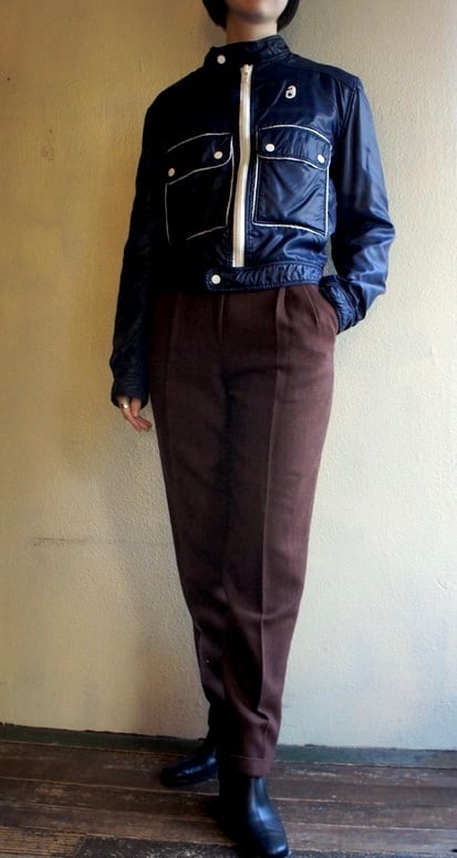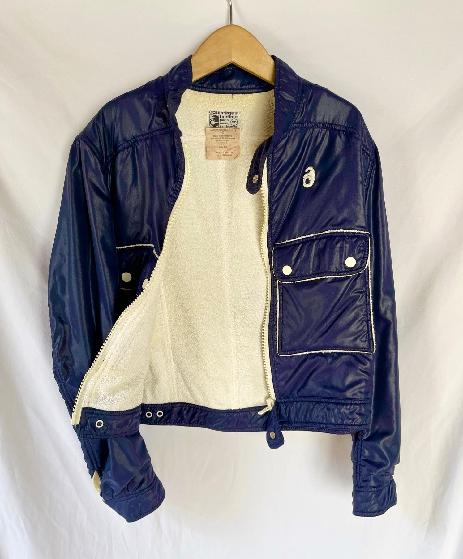 ネイビーのナイロントセに白のパイピングがさわやかな クレージュ 70's Vintage ジャケット, レアな逸品!