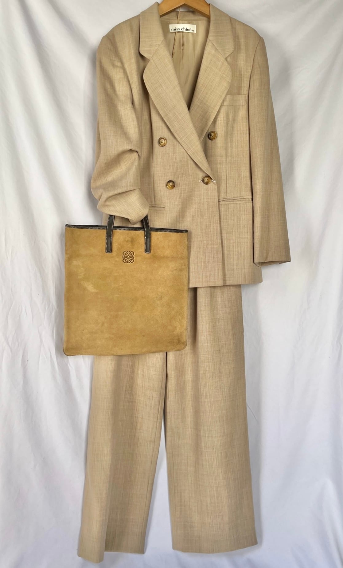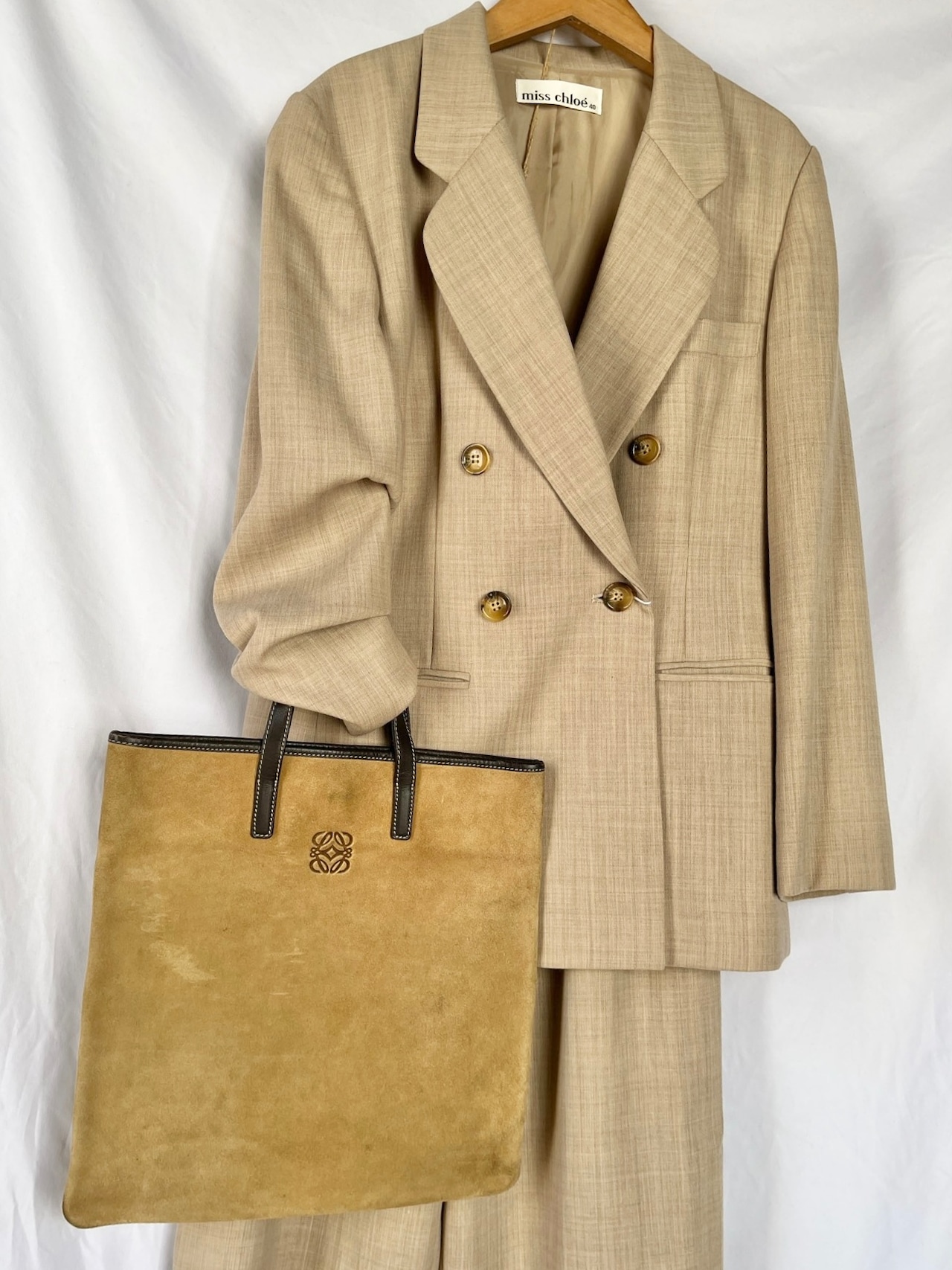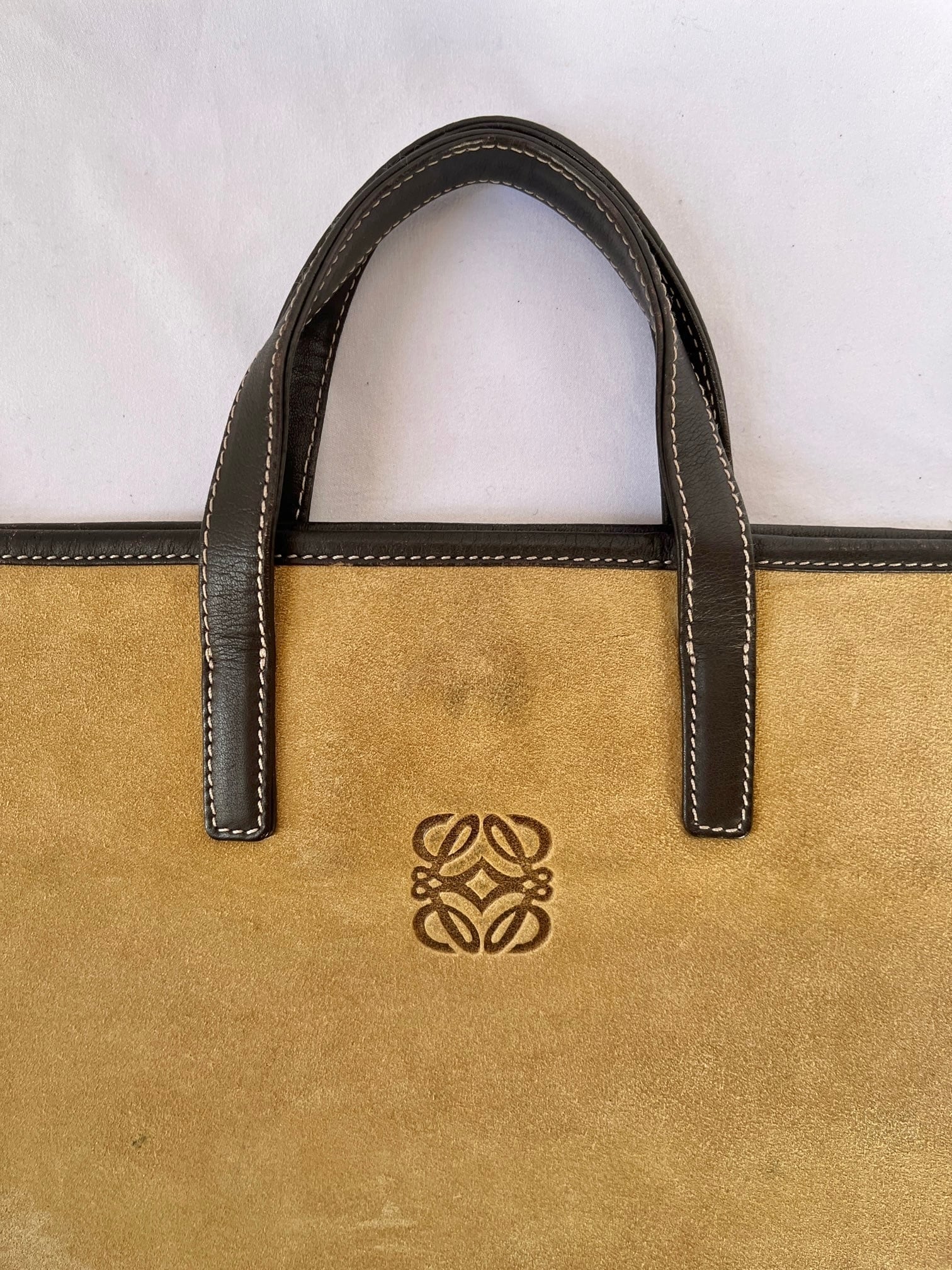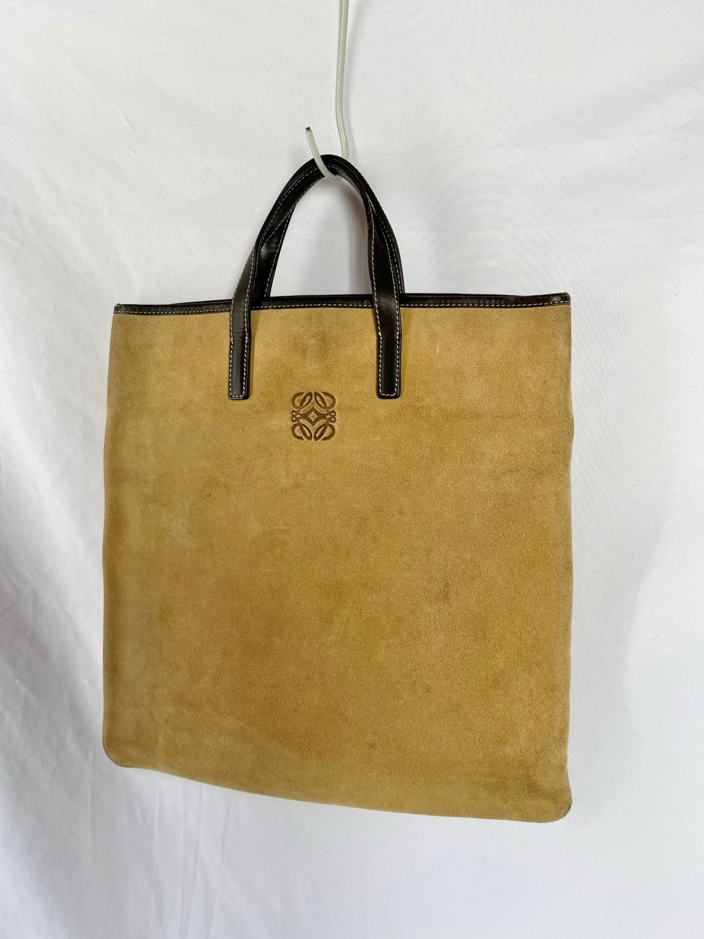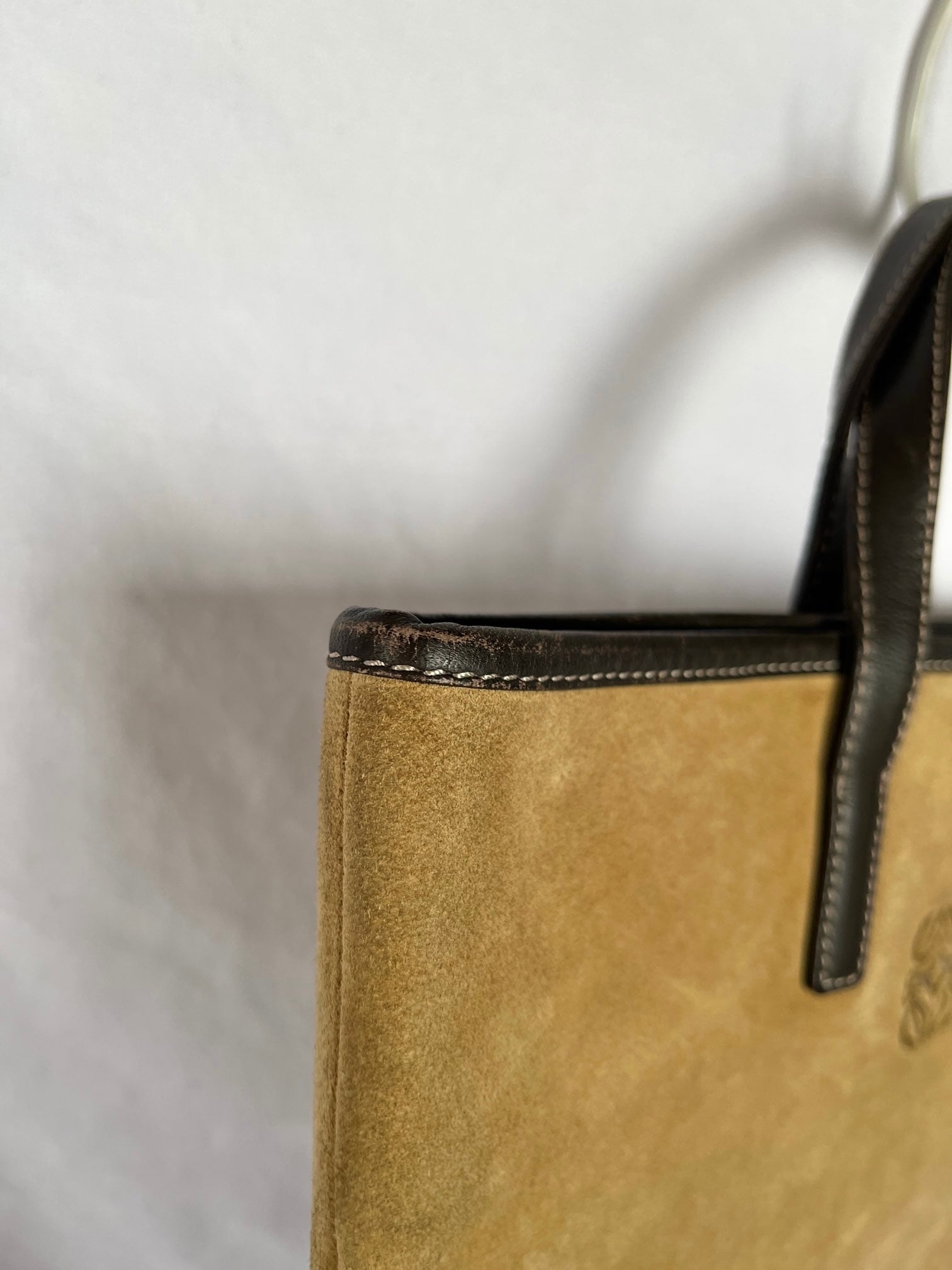 ベージュのスエード地にDk.BrownレザーのパイピングがLOEWEらしいVintageトートBag。