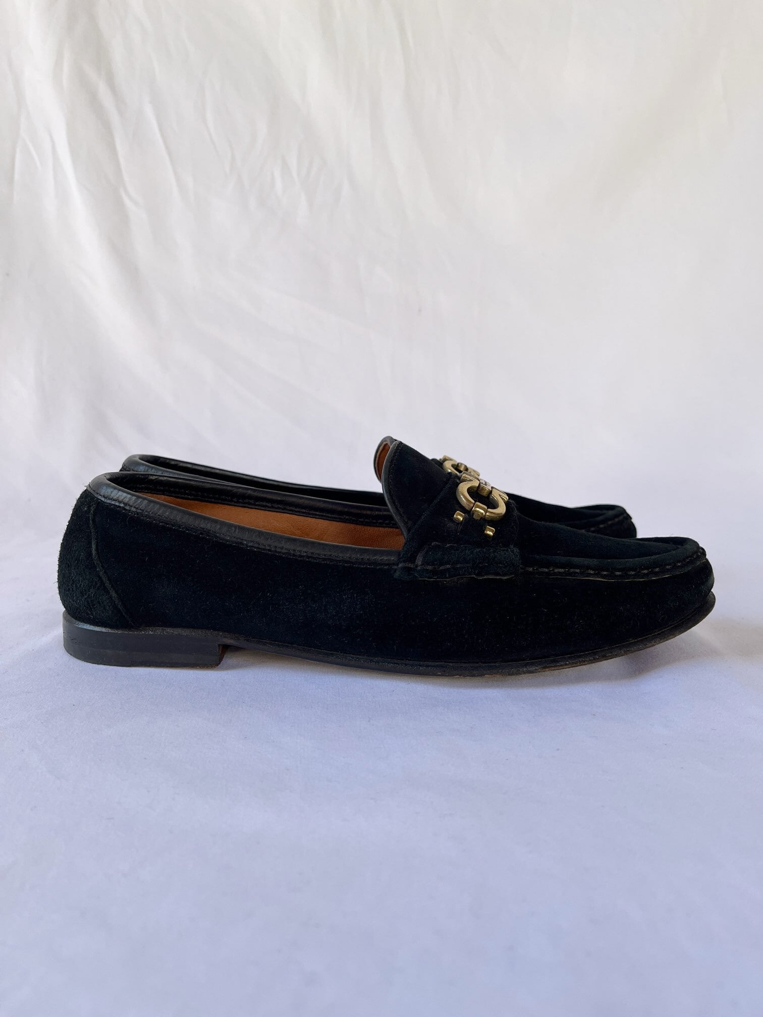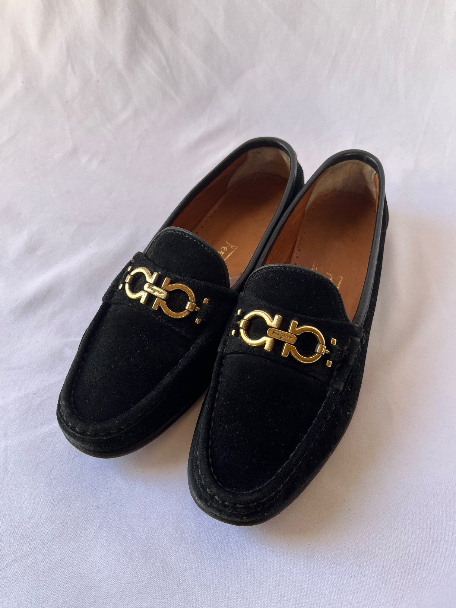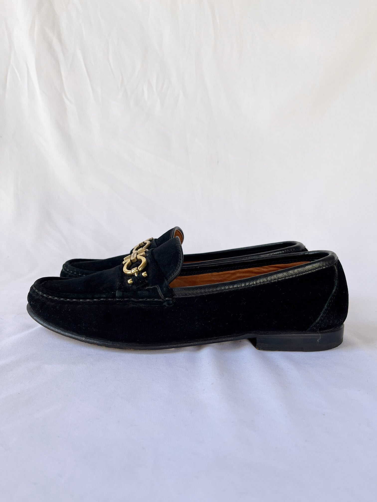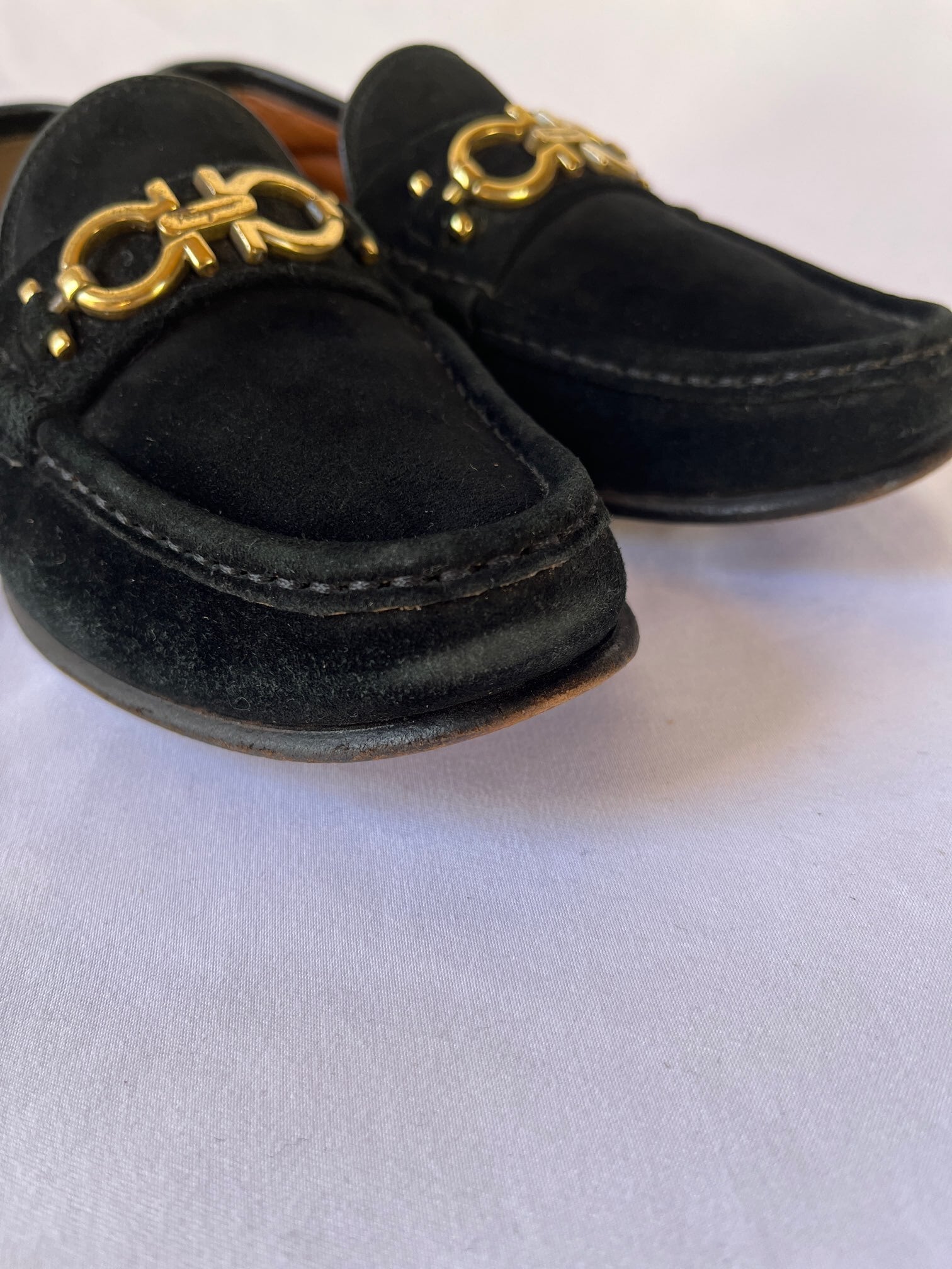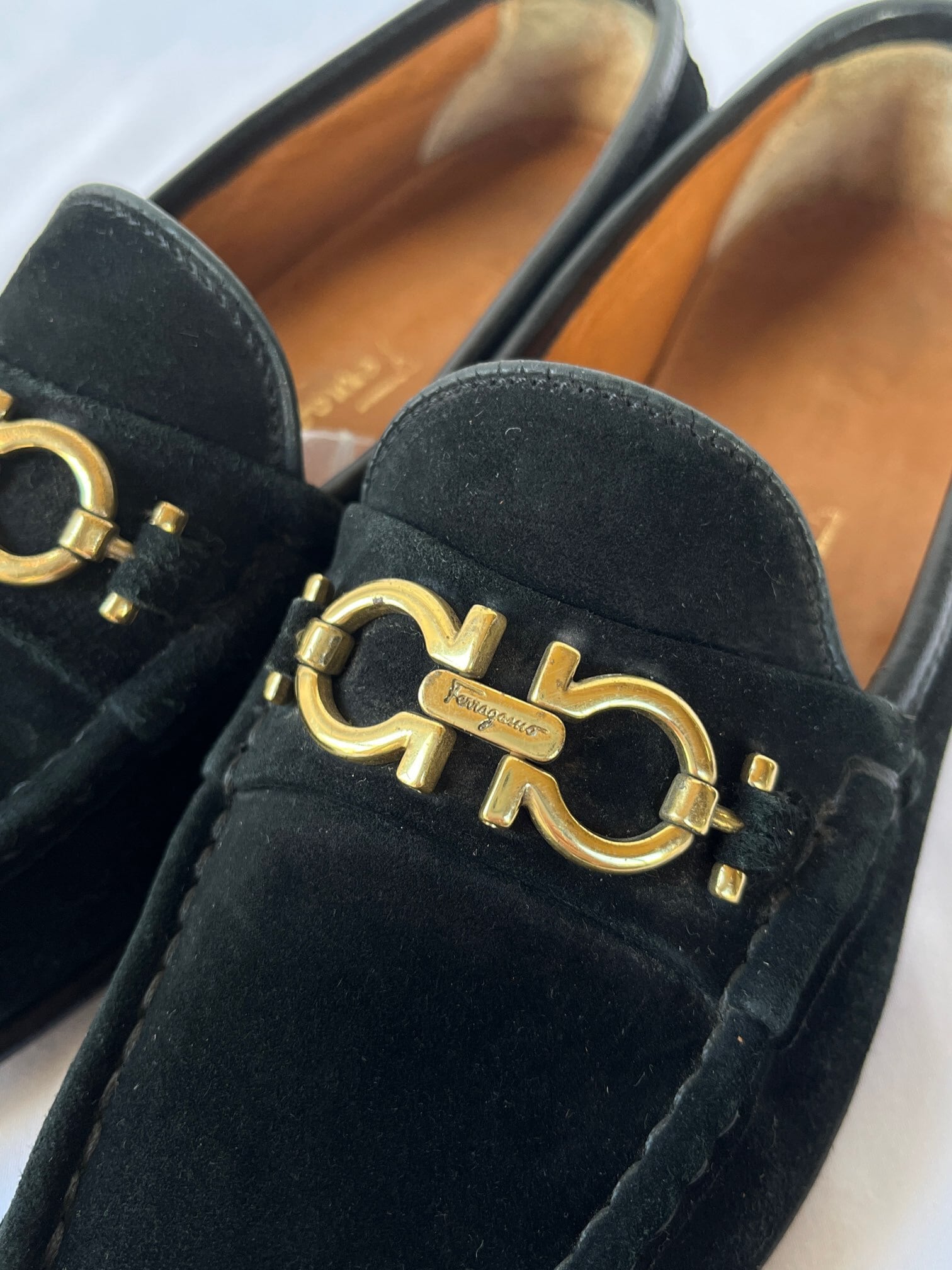 Ferragamo “Black Suede”Gold Gancini-Loafers-