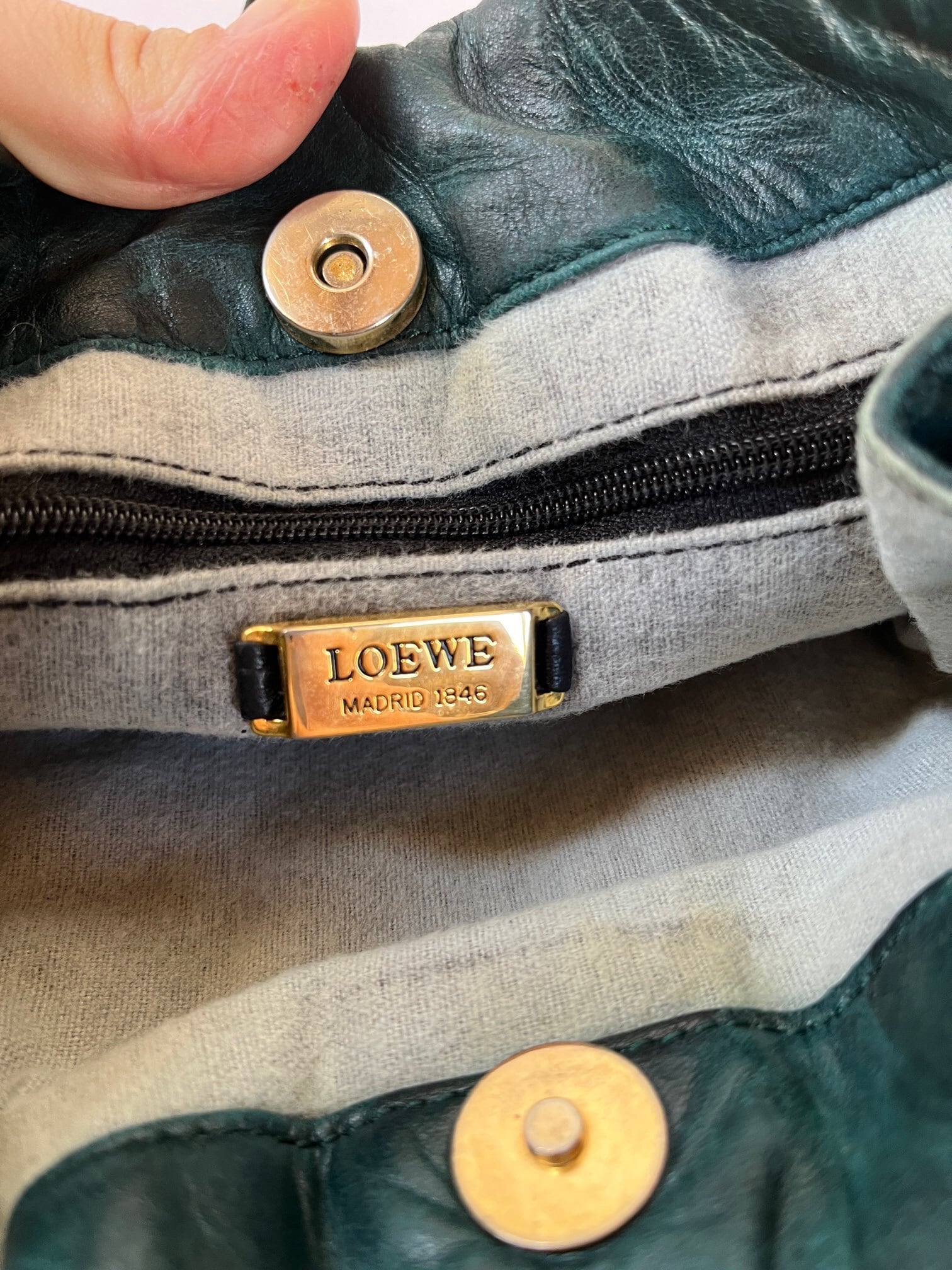 ビリジアングリーンカラーが美しいLOEWEのVintage ショルダーバッグ。