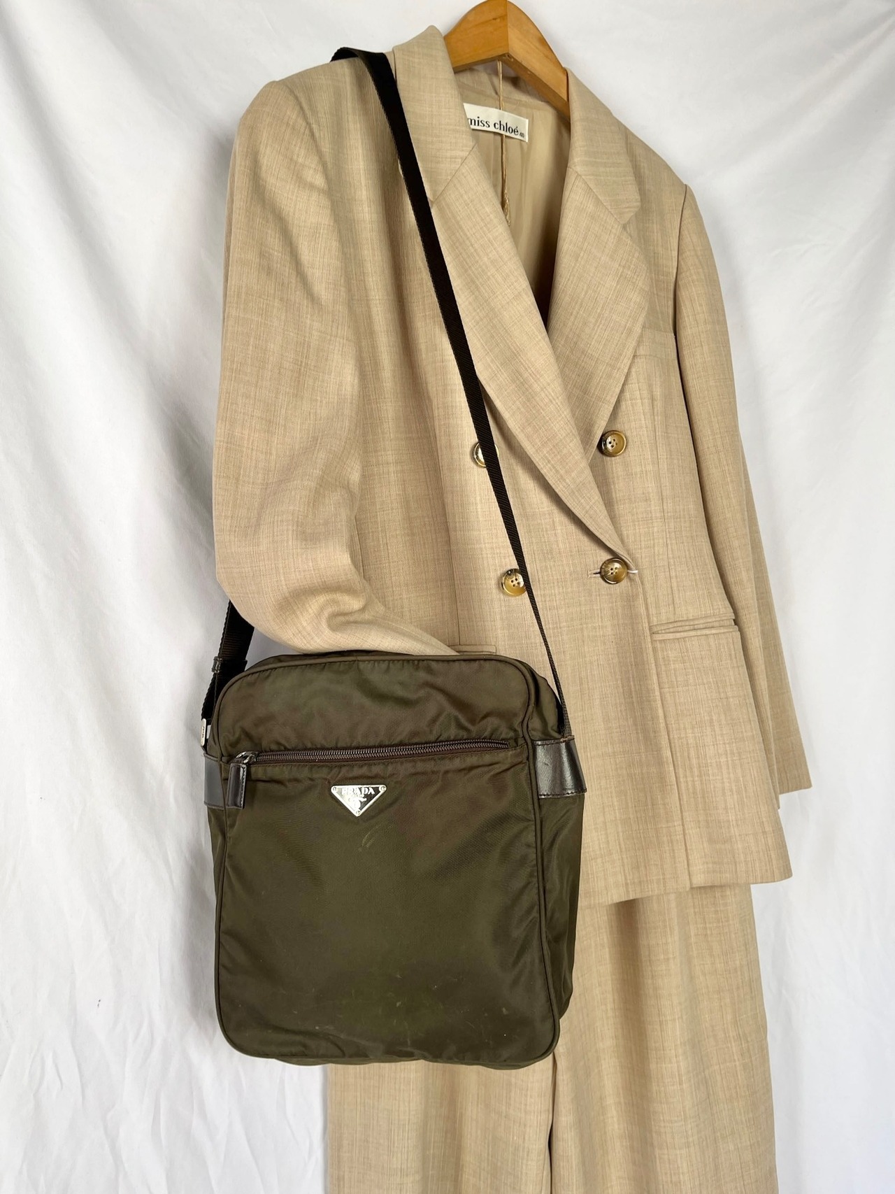 PRADA “Khaki Brown” Nylon Shoulder Bag