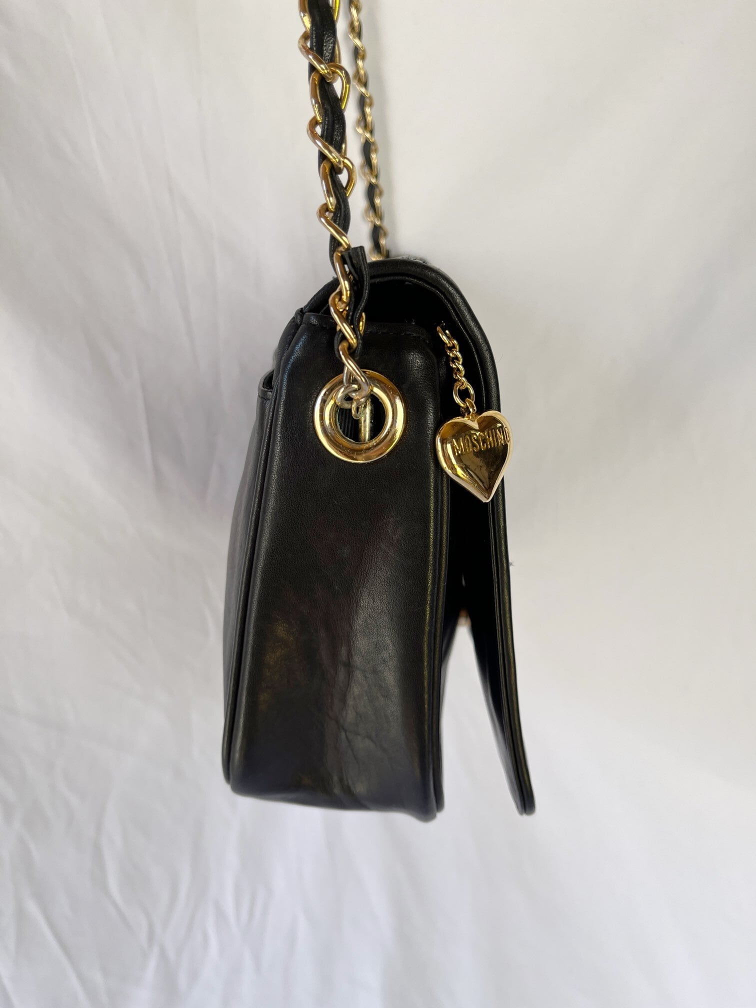 MOSCHINO “Black Leather” Heart Quilting Shoulder Bag