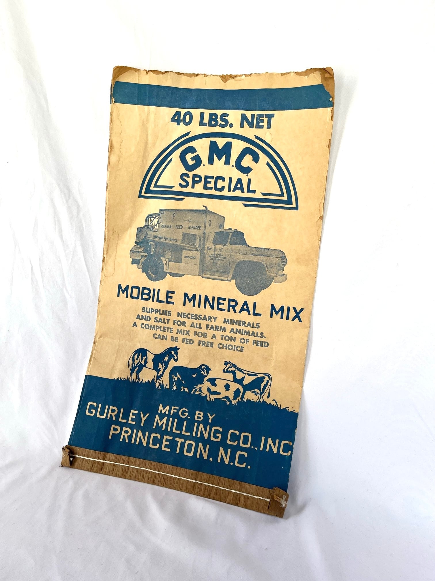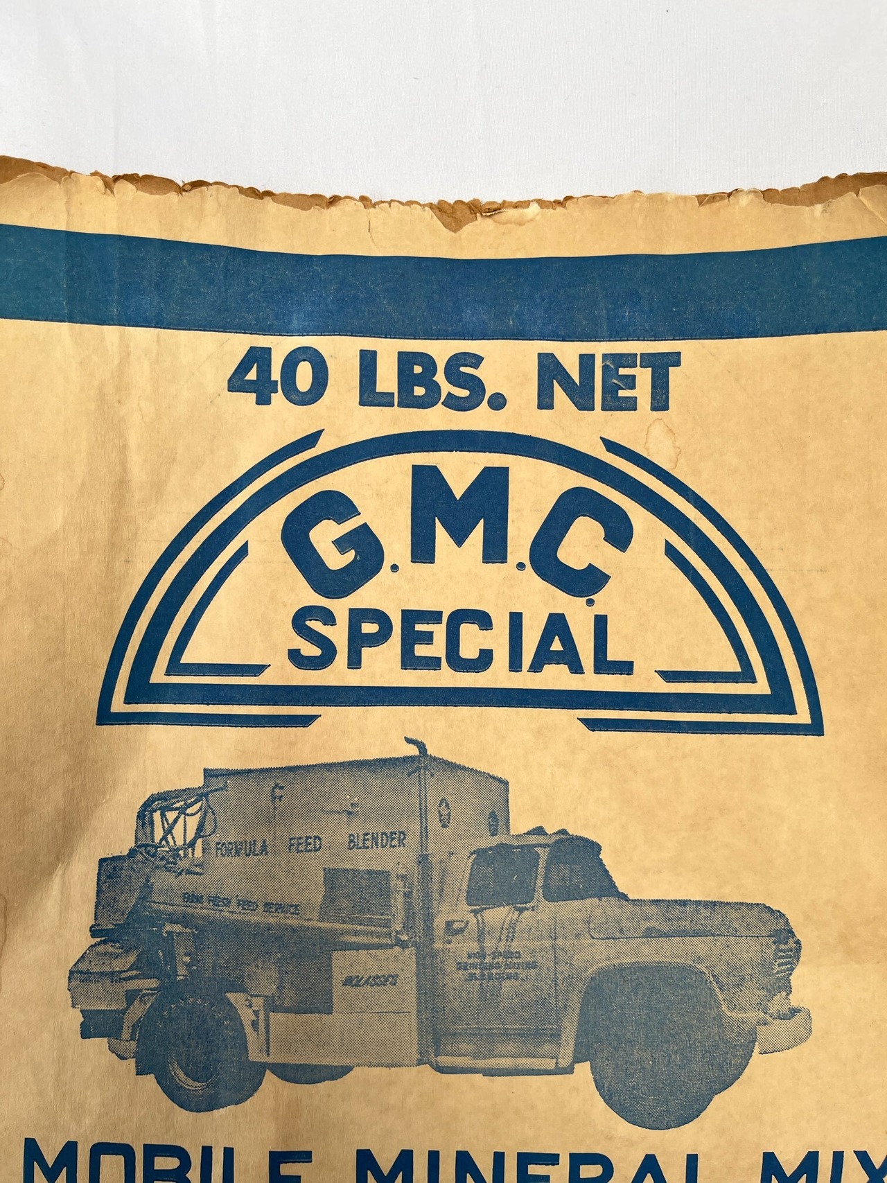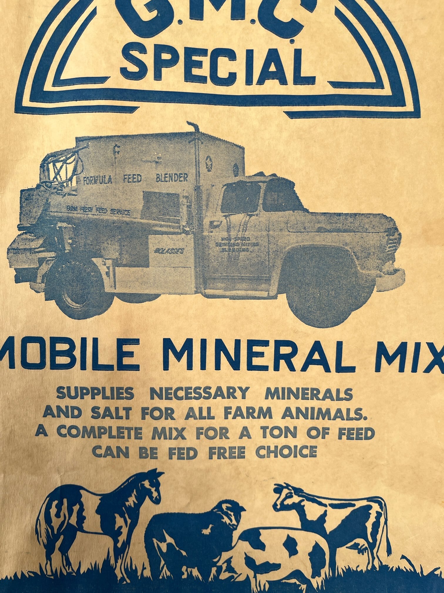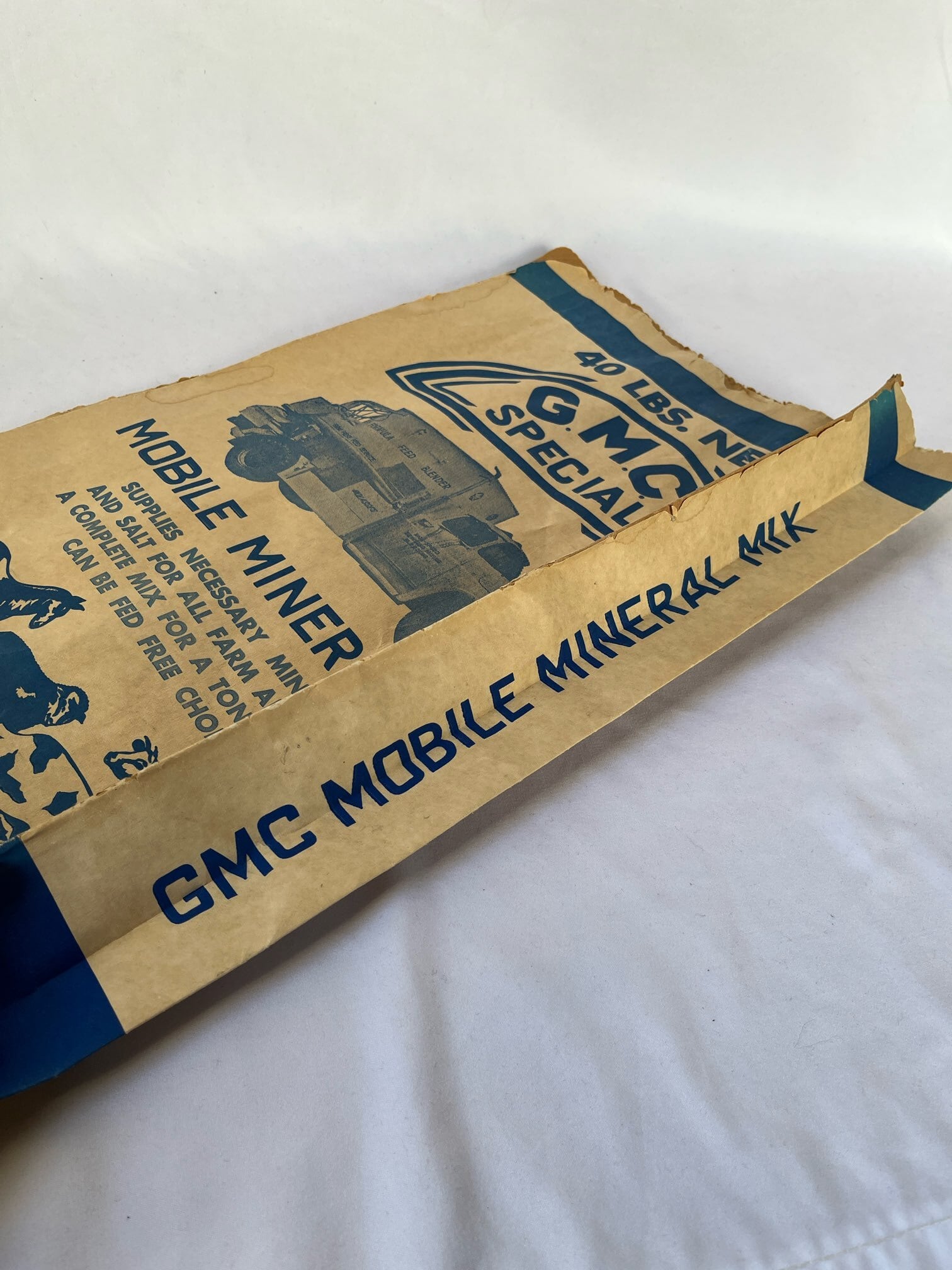 U.S.自動車メーカーのG.M.C社が作った動物用ミネラル飼料の袋です。Vintage感がたまらない配色。