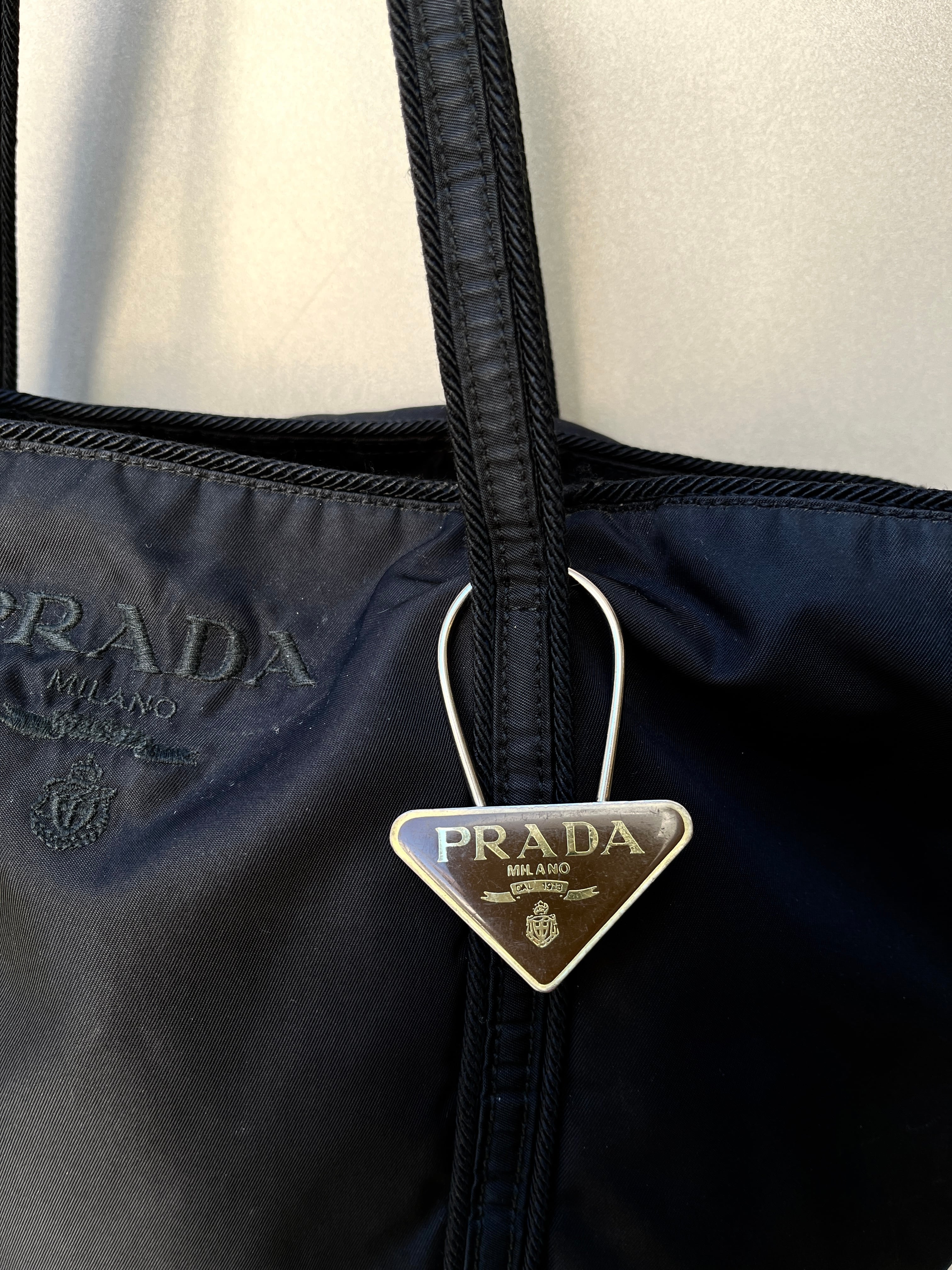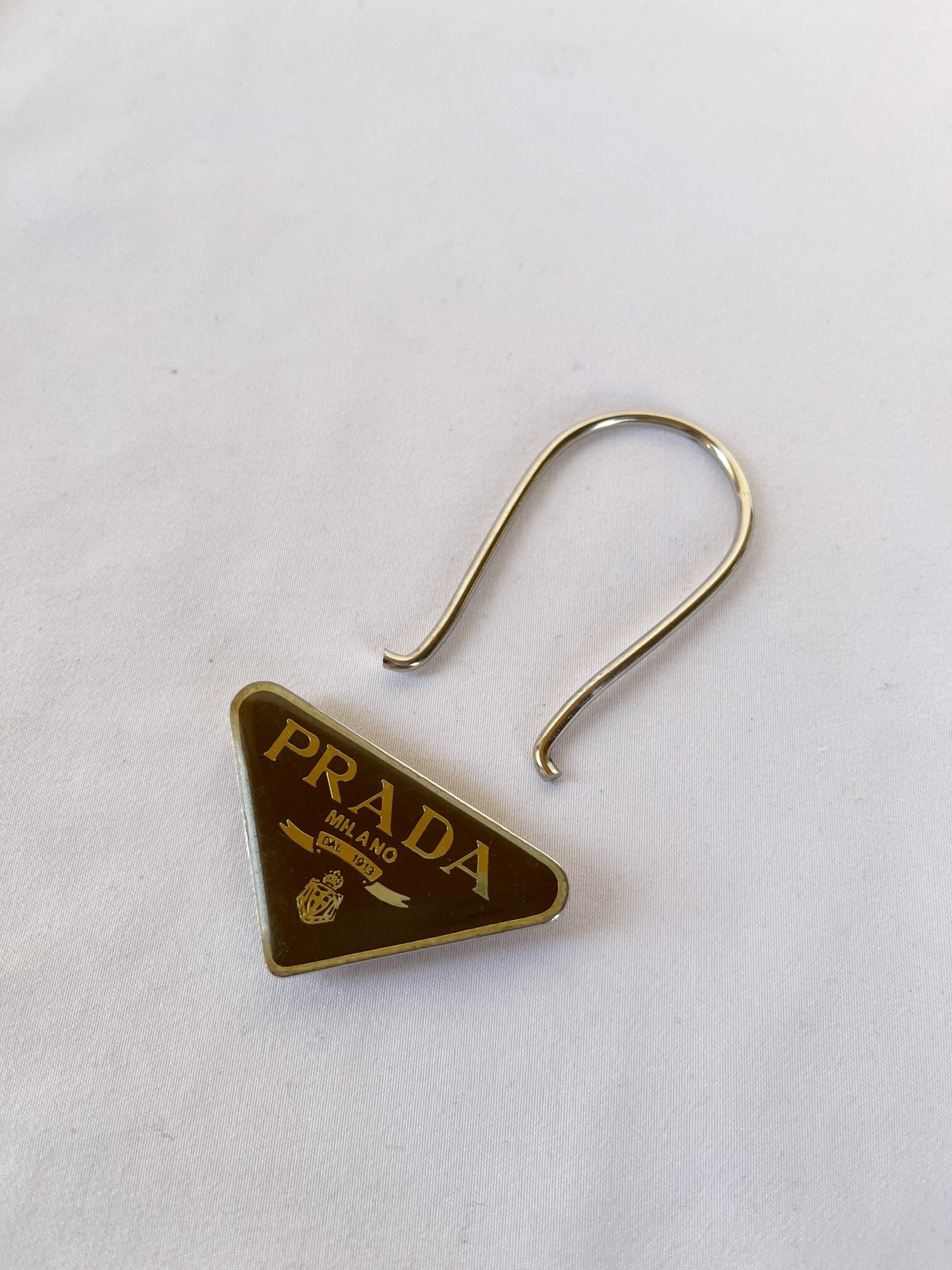 PRADA “Triangle Logo”Brown × silver Metal Key Charm