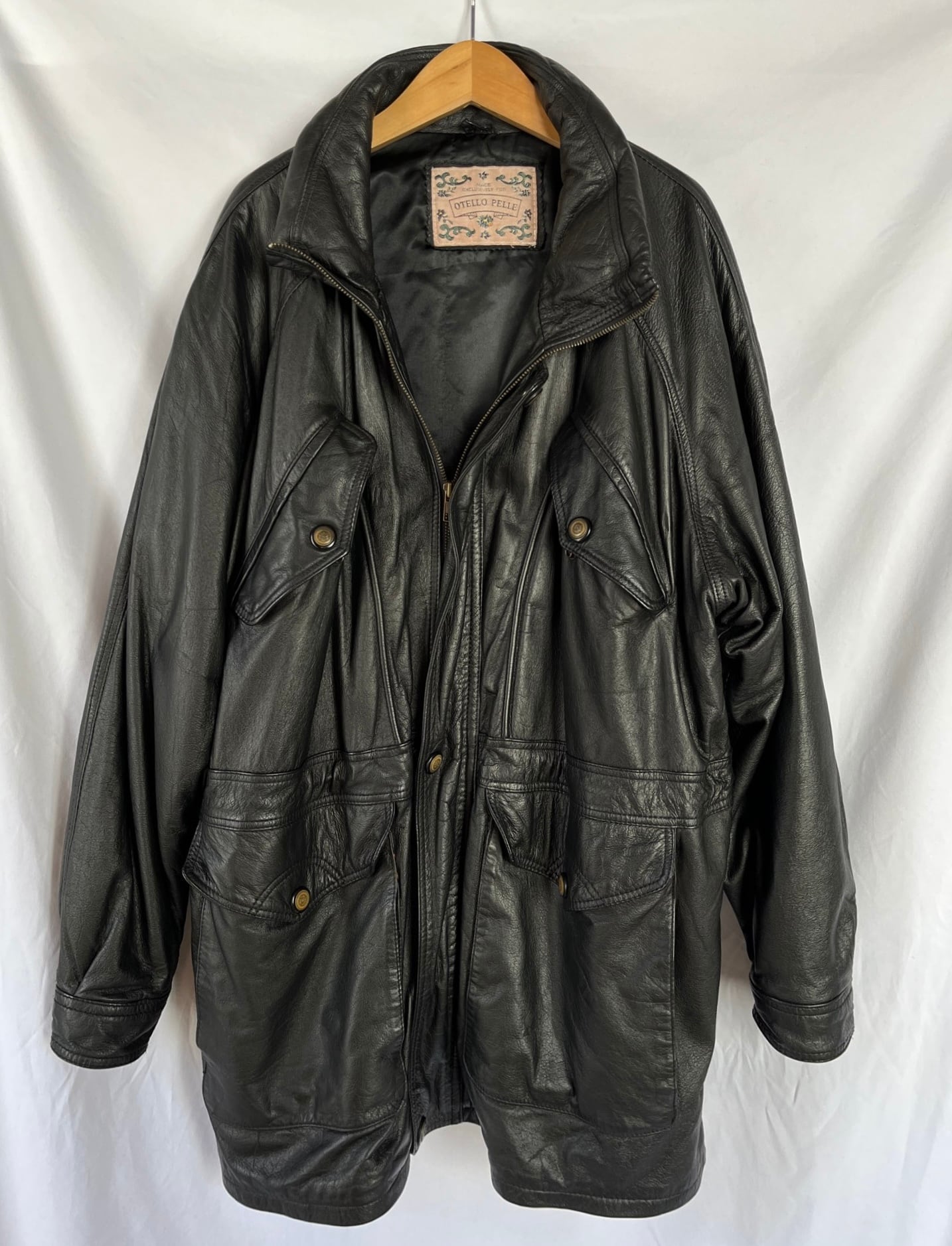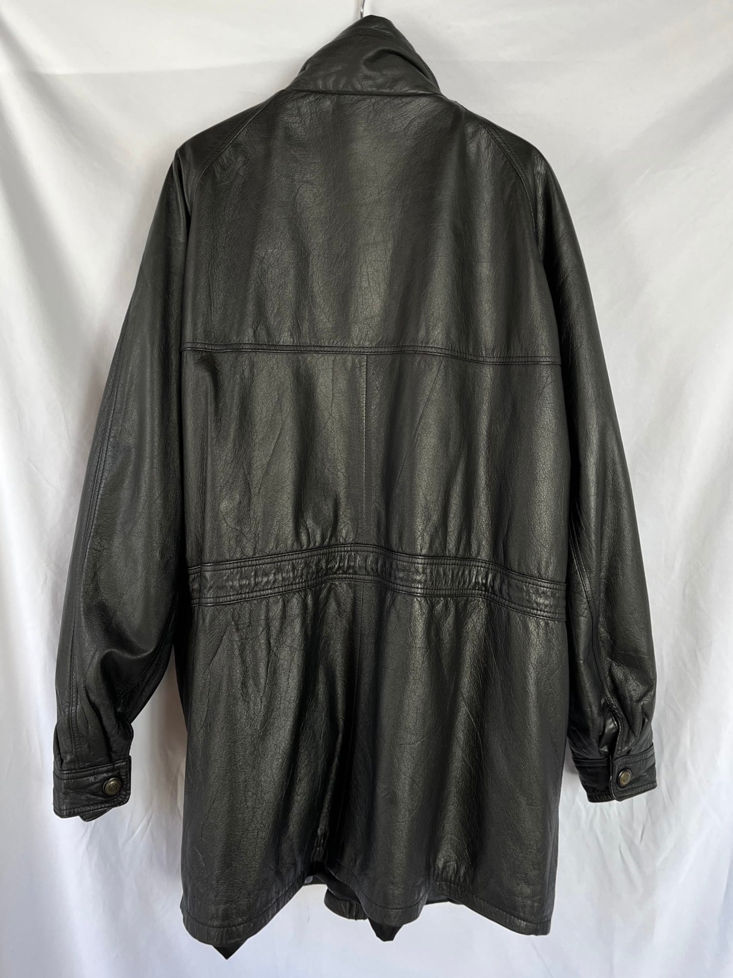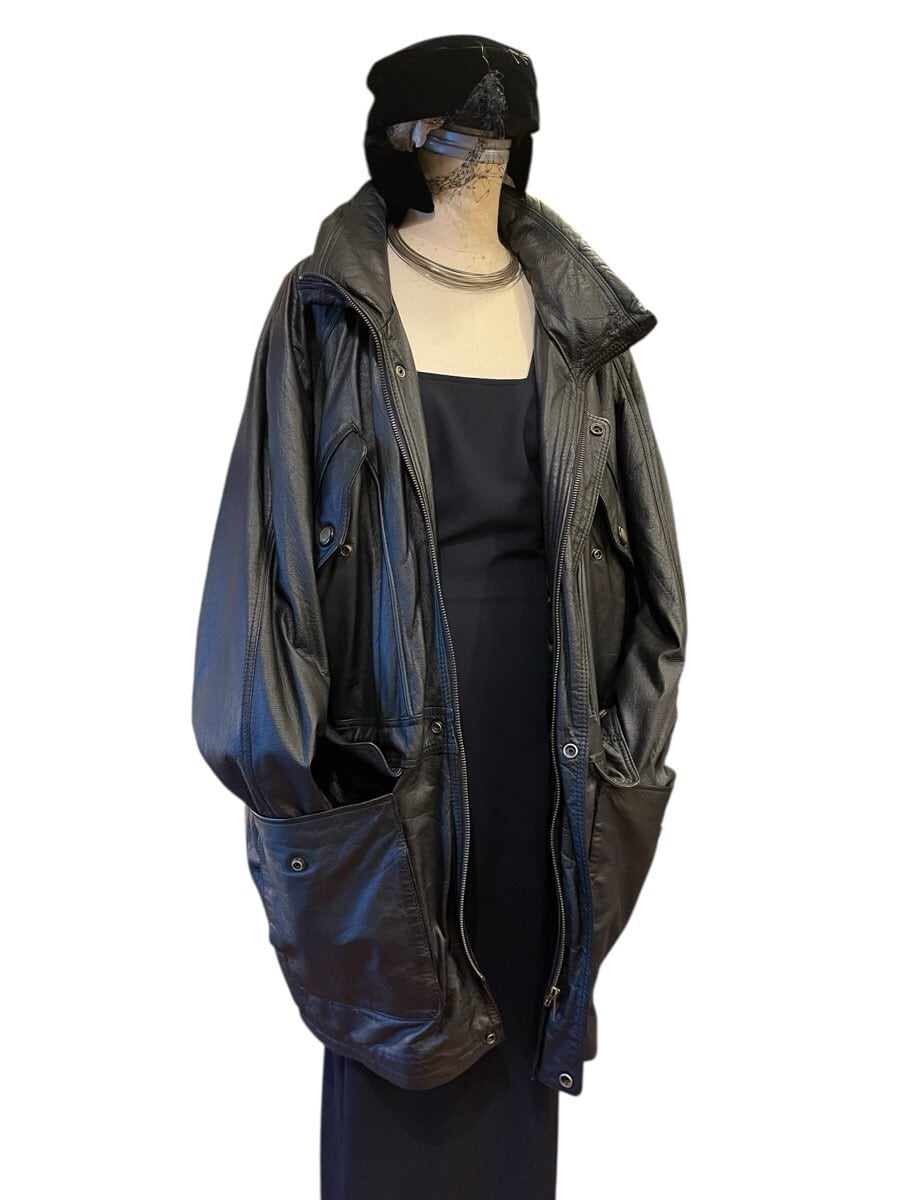 ハーフコートの丈感がマニッシュなU.S Vintageレザーコート,men’s.本革かつ中綿入りで抜群にあたたかい一枚。豊富なポケット数で機能性も◎☆マーク入りのボタンがアクセントに効いていて、ユニークさも光る一枚です。
