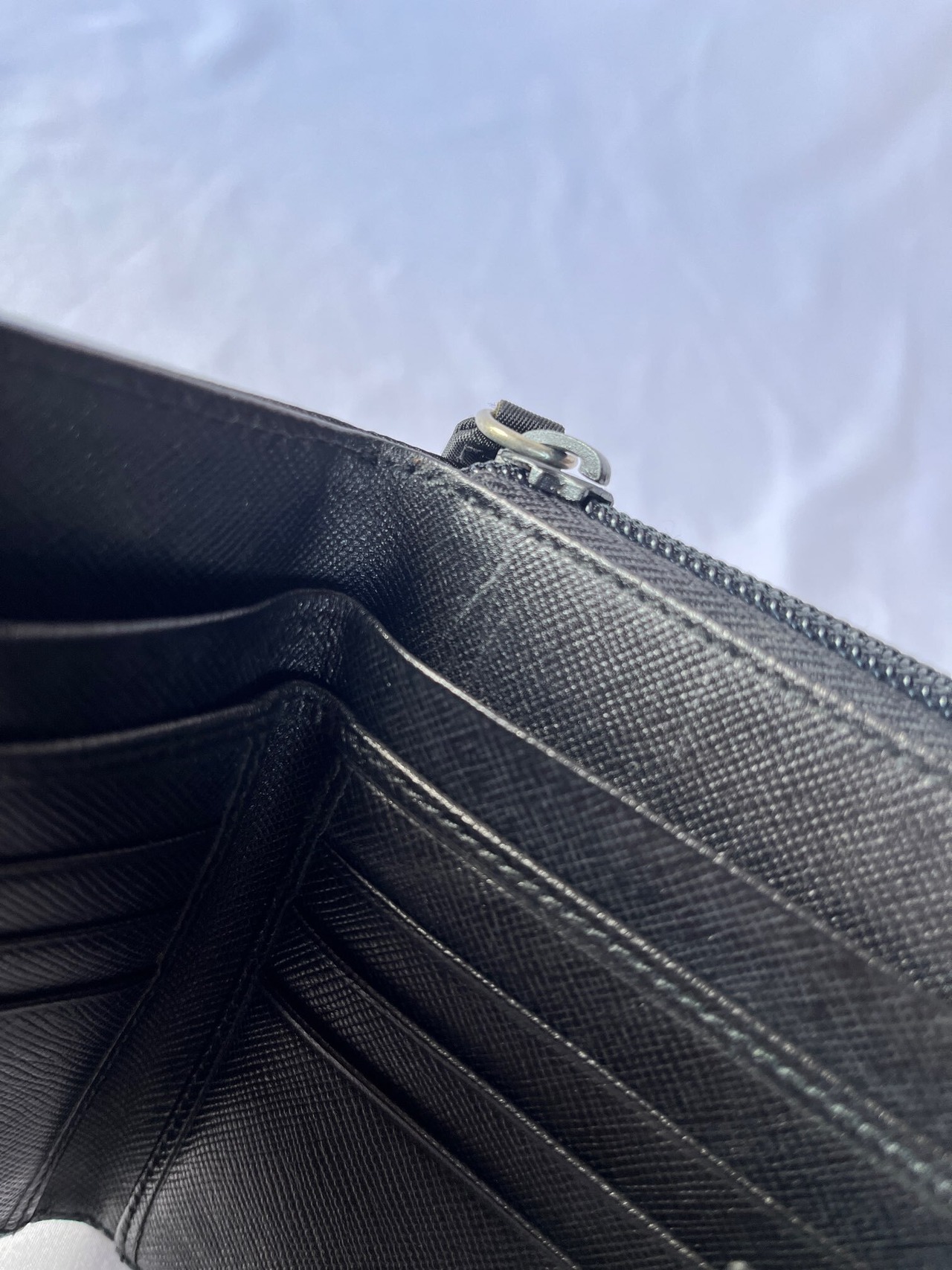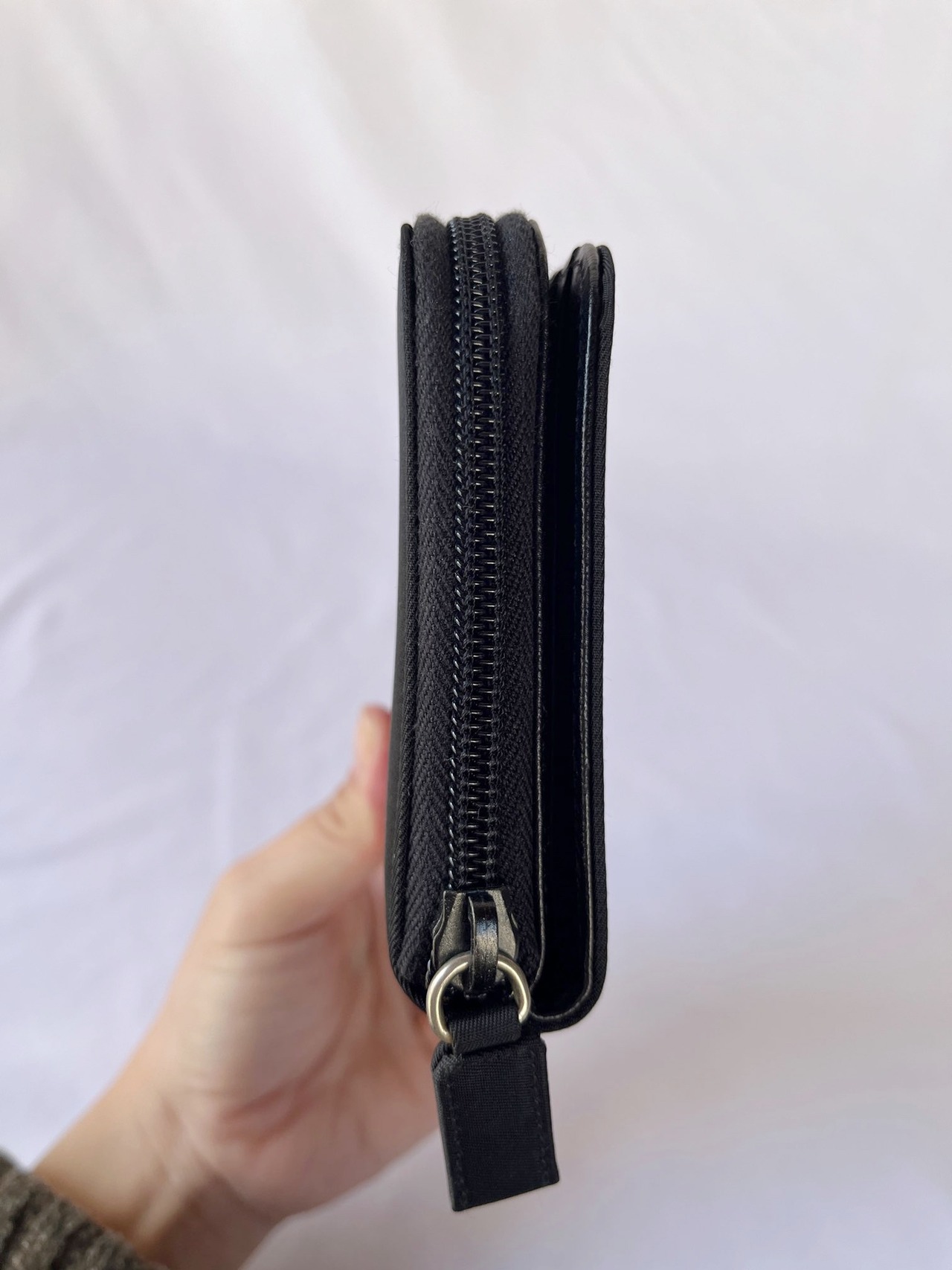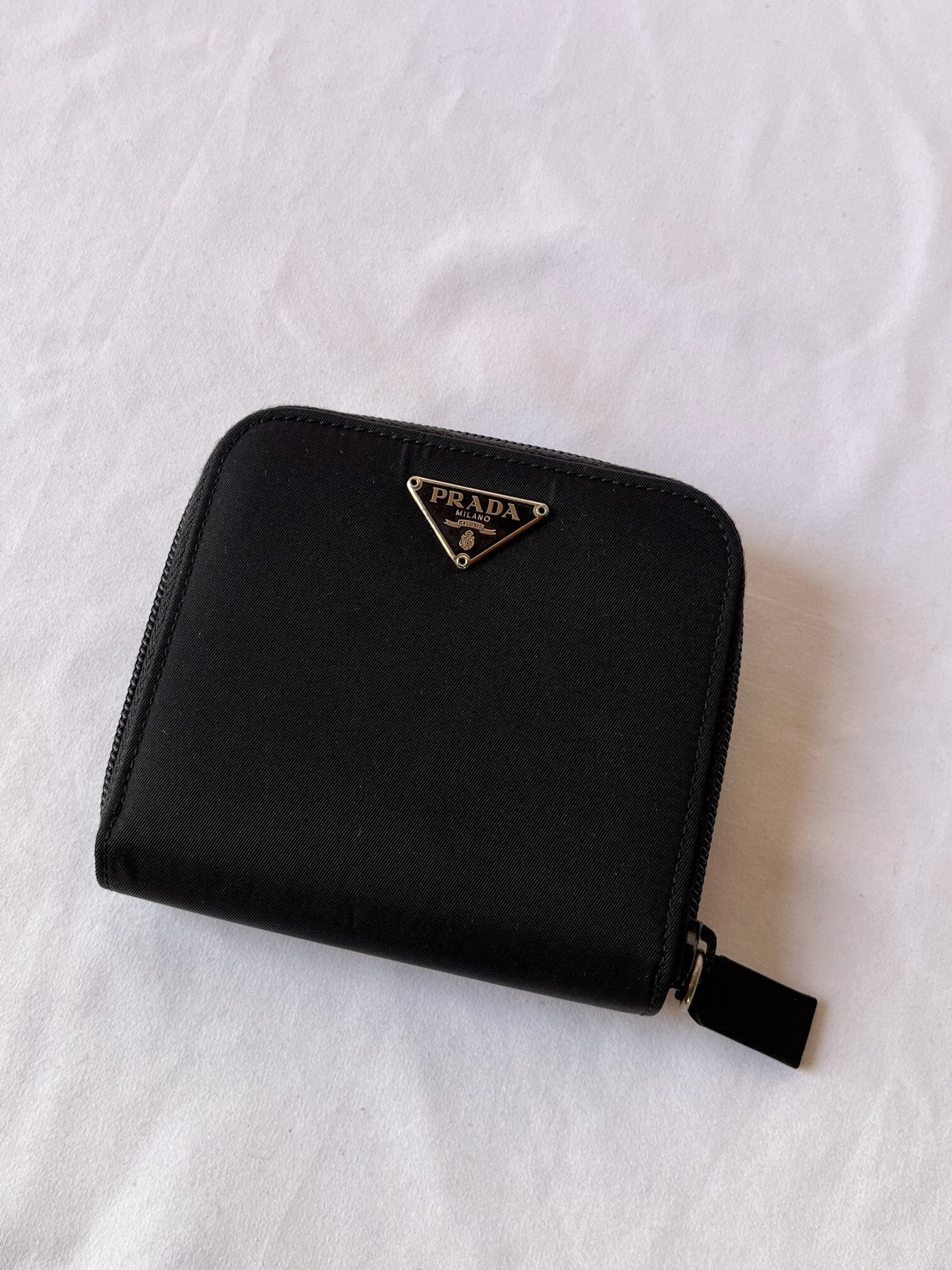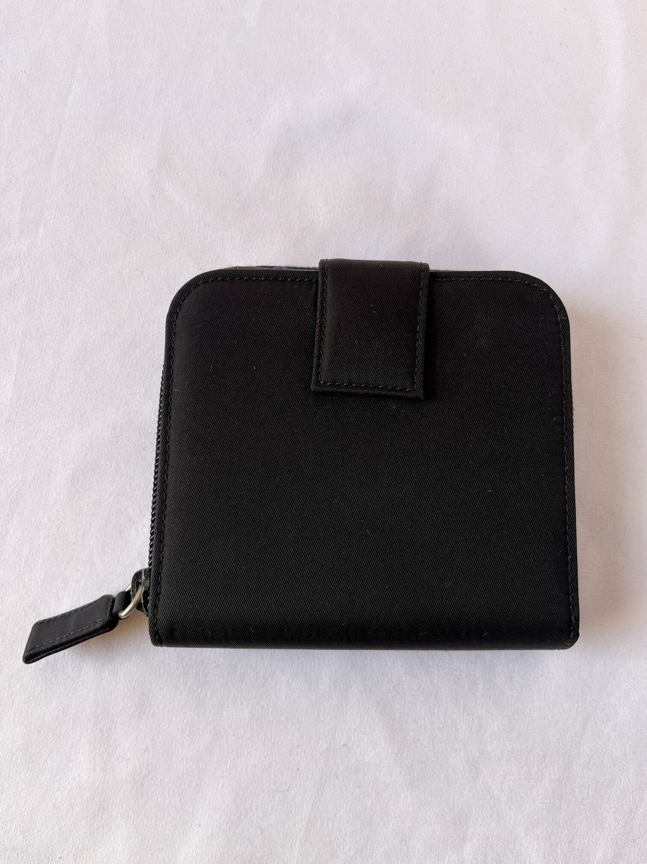 センターの三角ロゴが目をひくPPADAおりたたみ財布。ブラックのナイロン地がモードで洗味された 印影⭐︎コインポケットのZipがサイドまで開くので、中も見やすいつくりです。カードもたっぷり入り、機能的な一品です。箱付きなのでギフトにもオススメ!